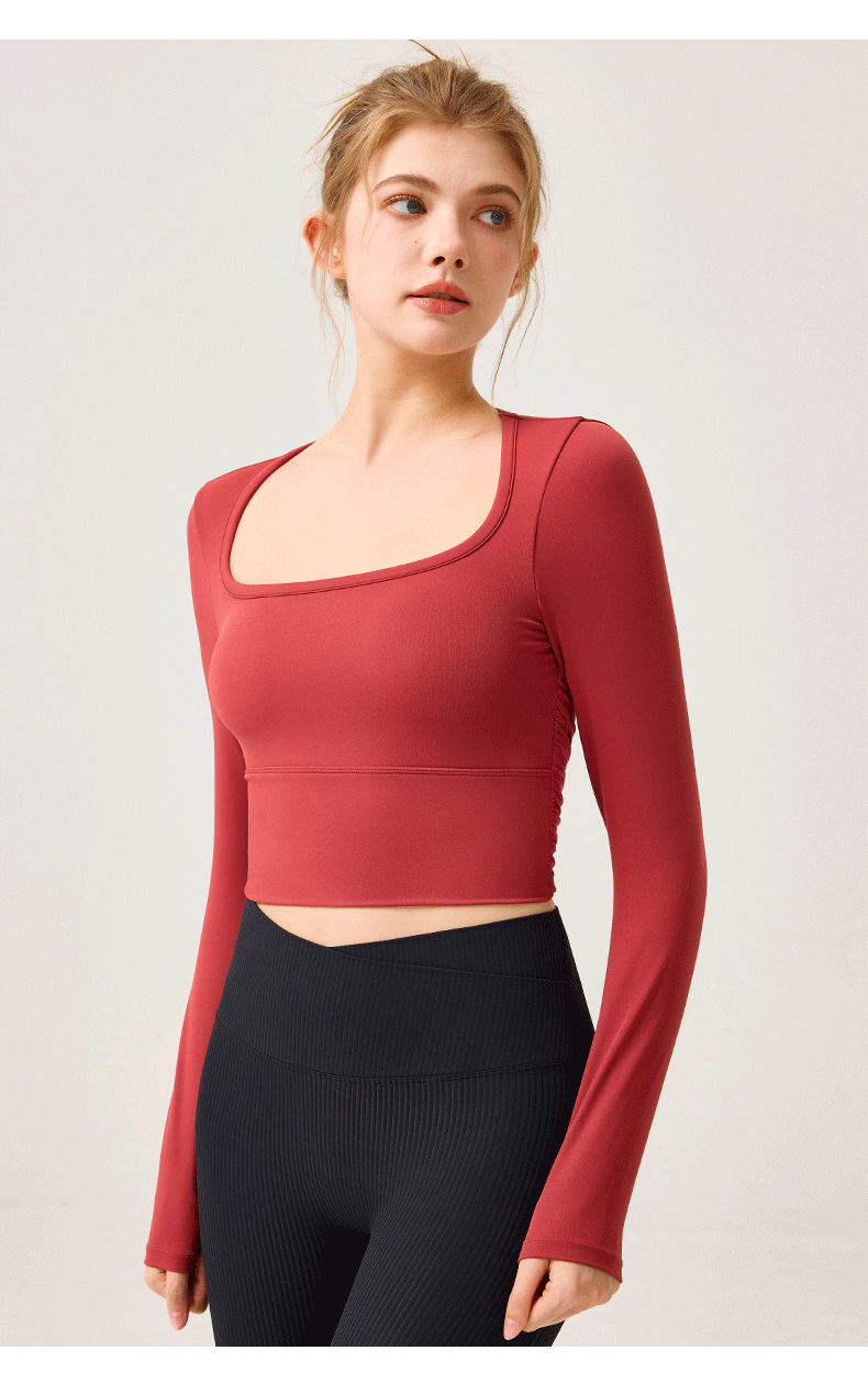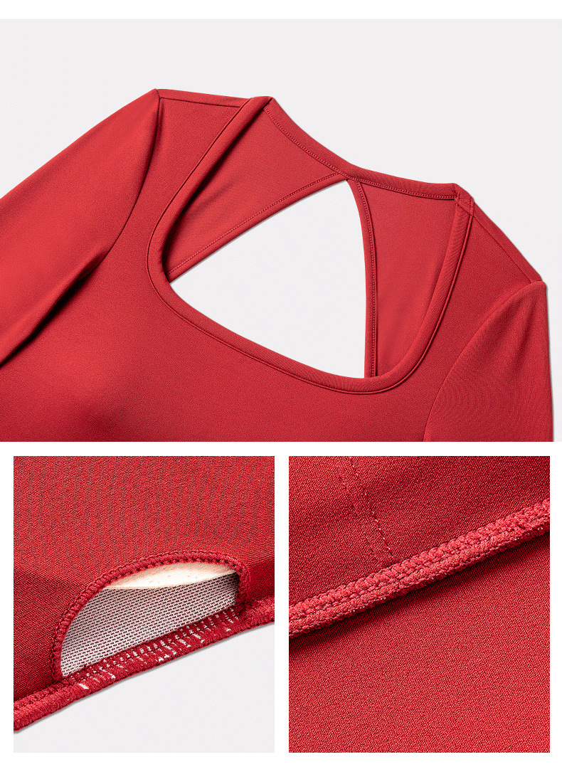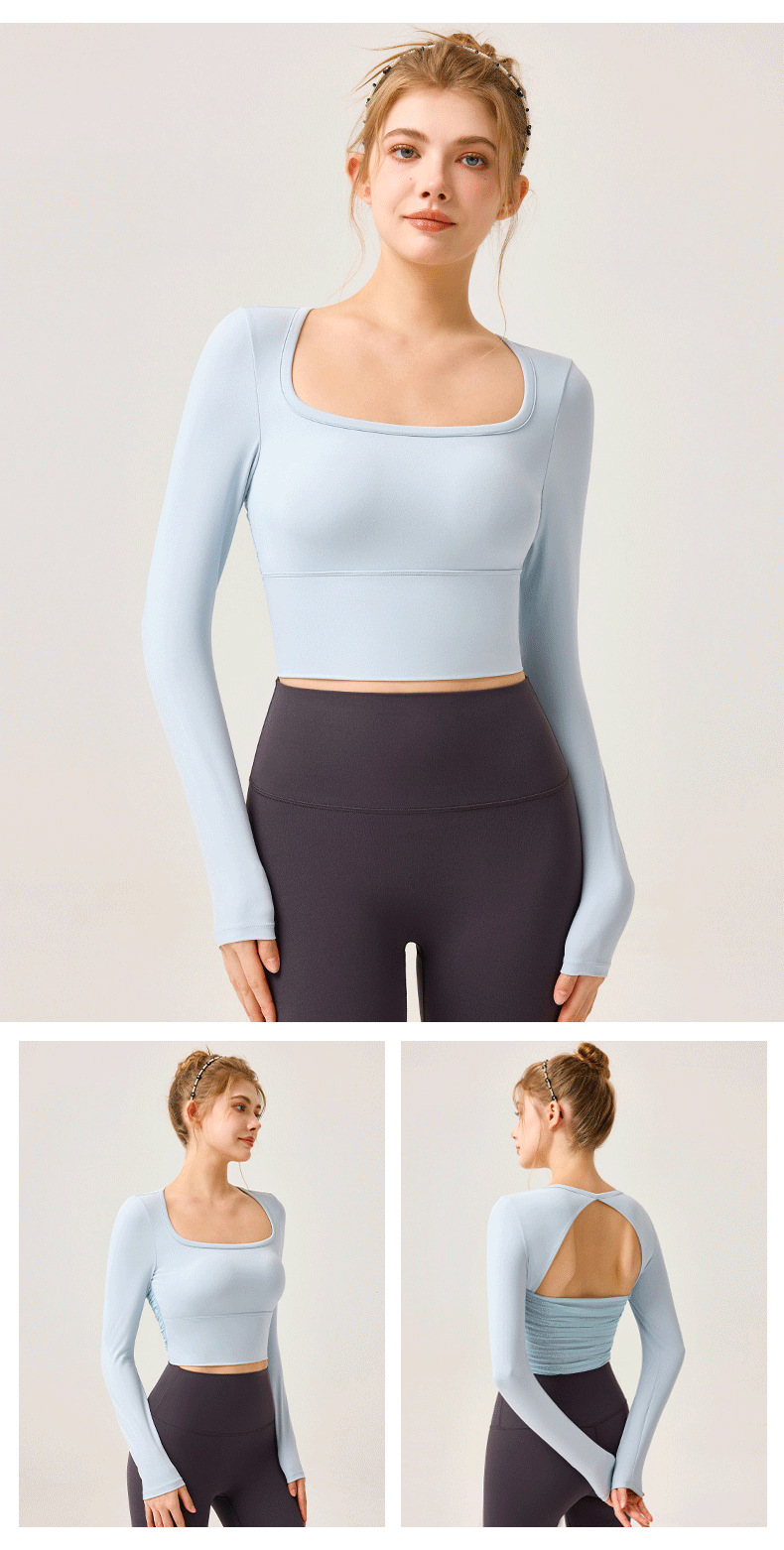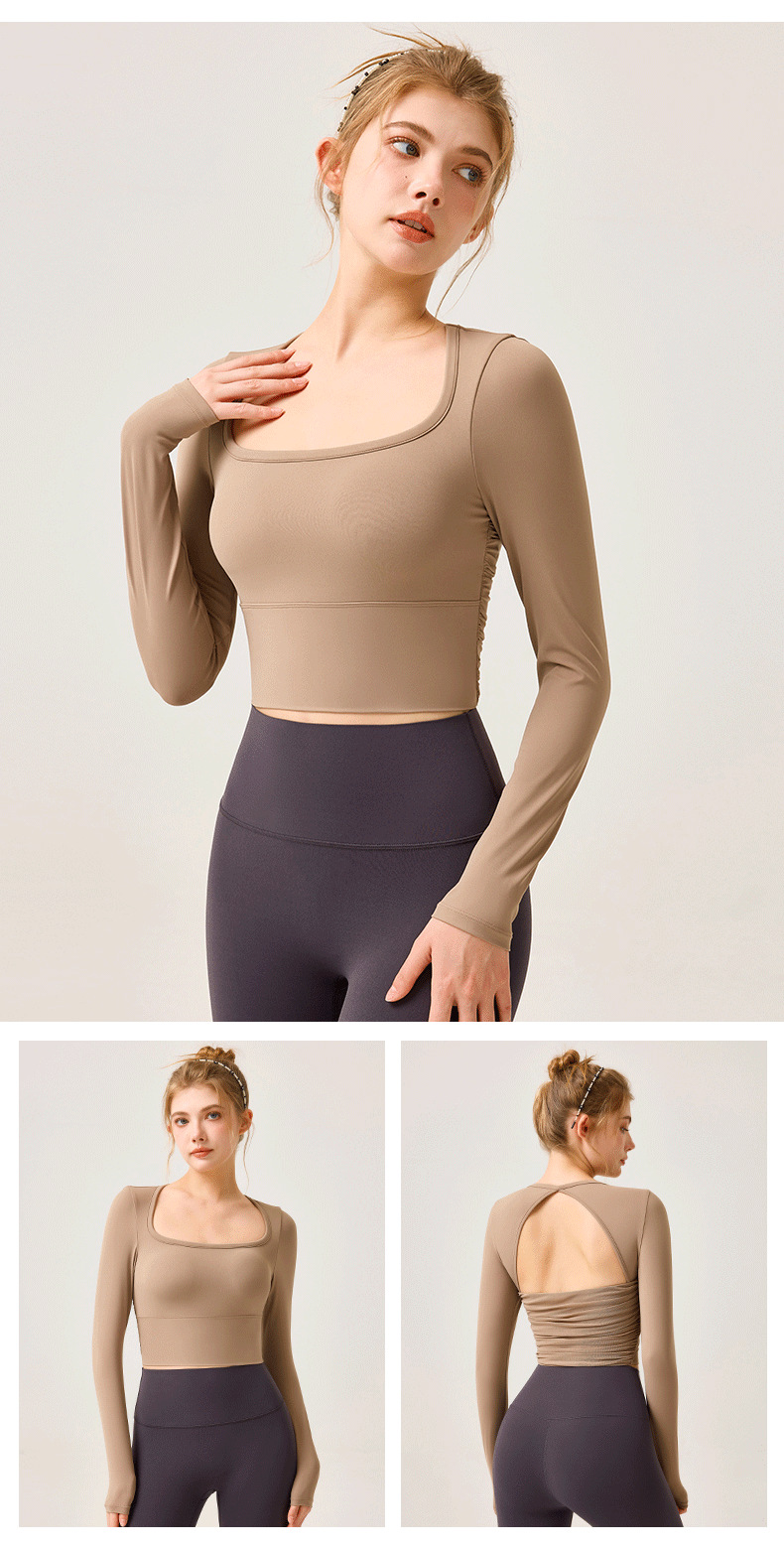 새로운 스포츠 긴팔 여성용 메쉬 속이 비치는 등 부분이 아름다운 탈부착 가능한 실내 요가복 전문 필라테스 피트니스 탑
