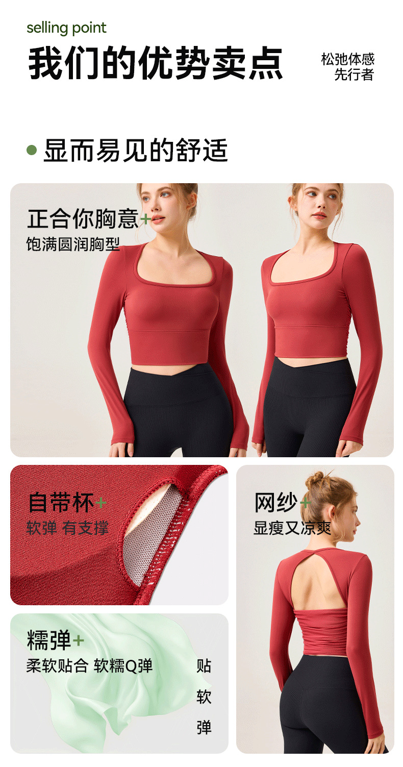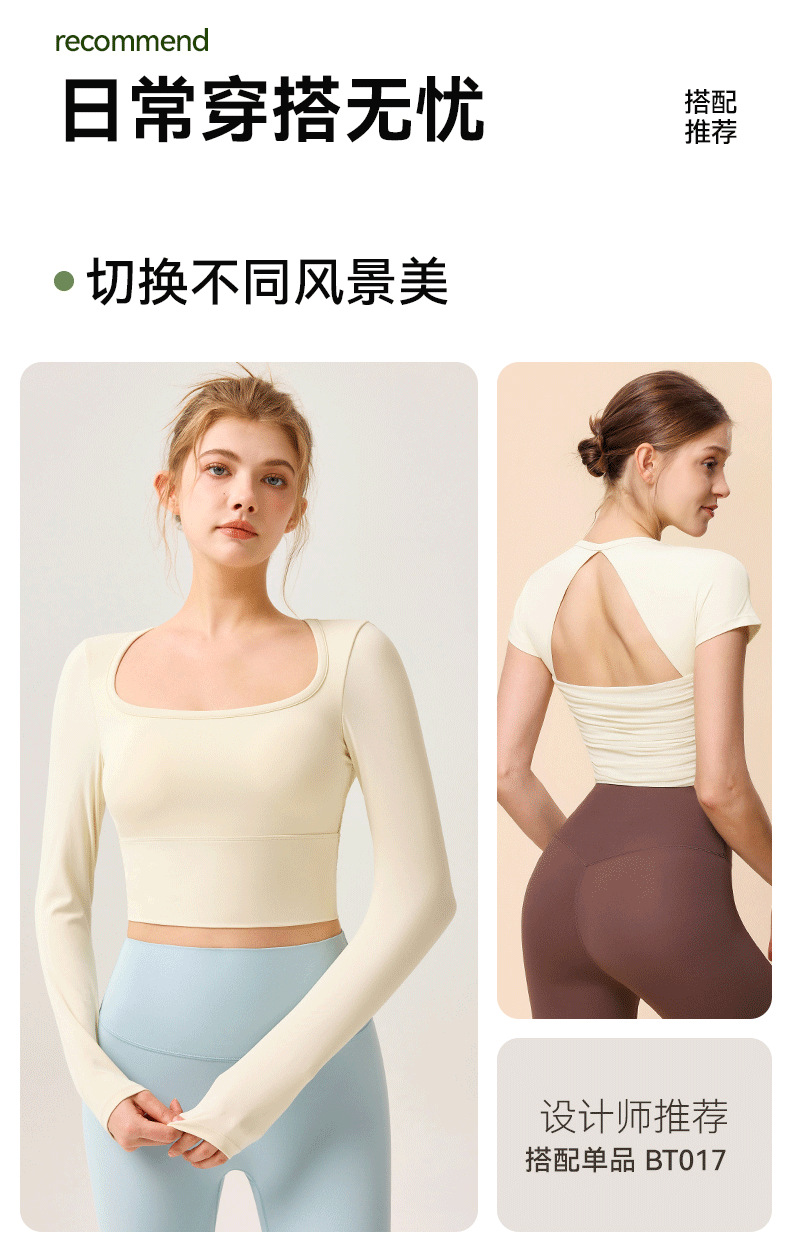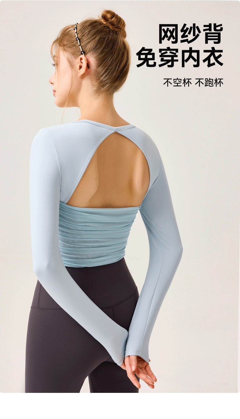 새로운 스포츠 긴팔 여성용 메쉬 속이 비치는 등 부분이 아름다운 탈부착 가능한 실내 요가복 전문 필라테스 피트니스 탑스토어 가기