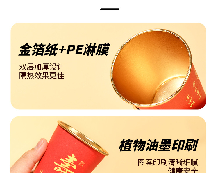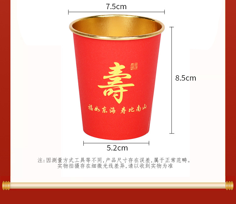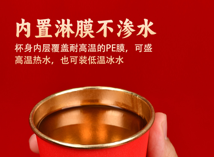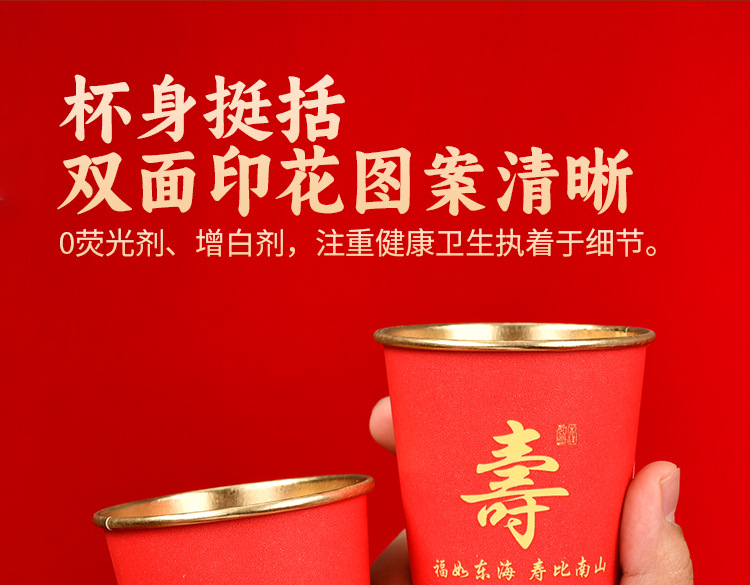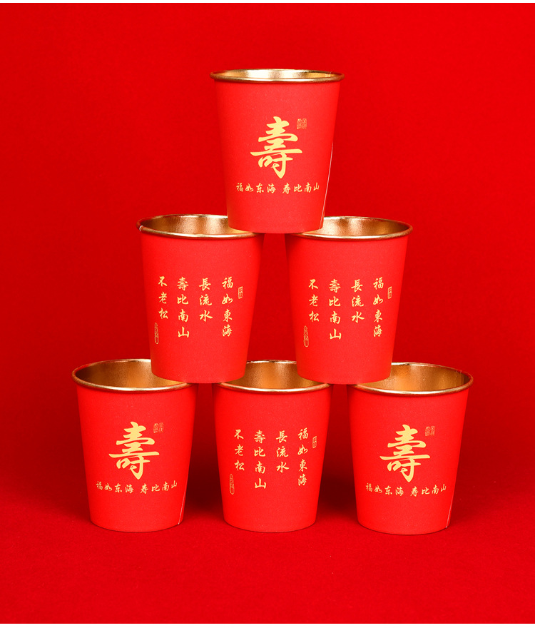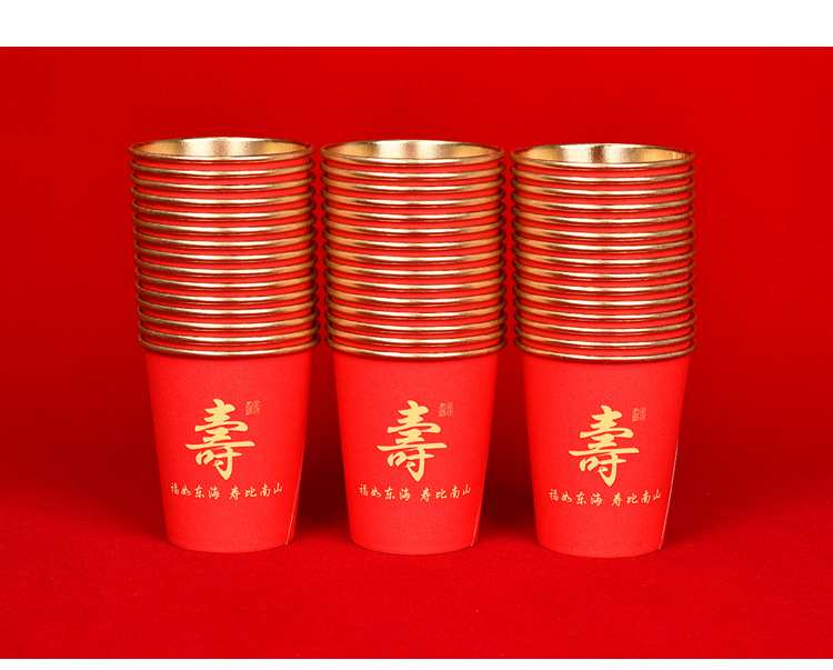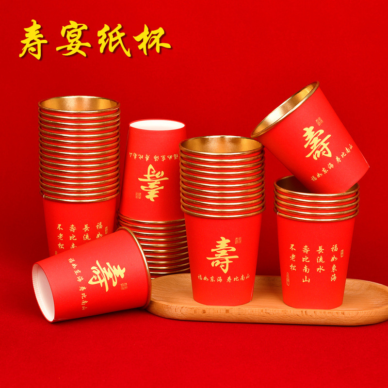 노인을 위한 생일을 위한 고급 금박 종이컵 250ml 두껍고 단단한 생일 가정 연회 빨간색 웨딩 컵 도매 가능