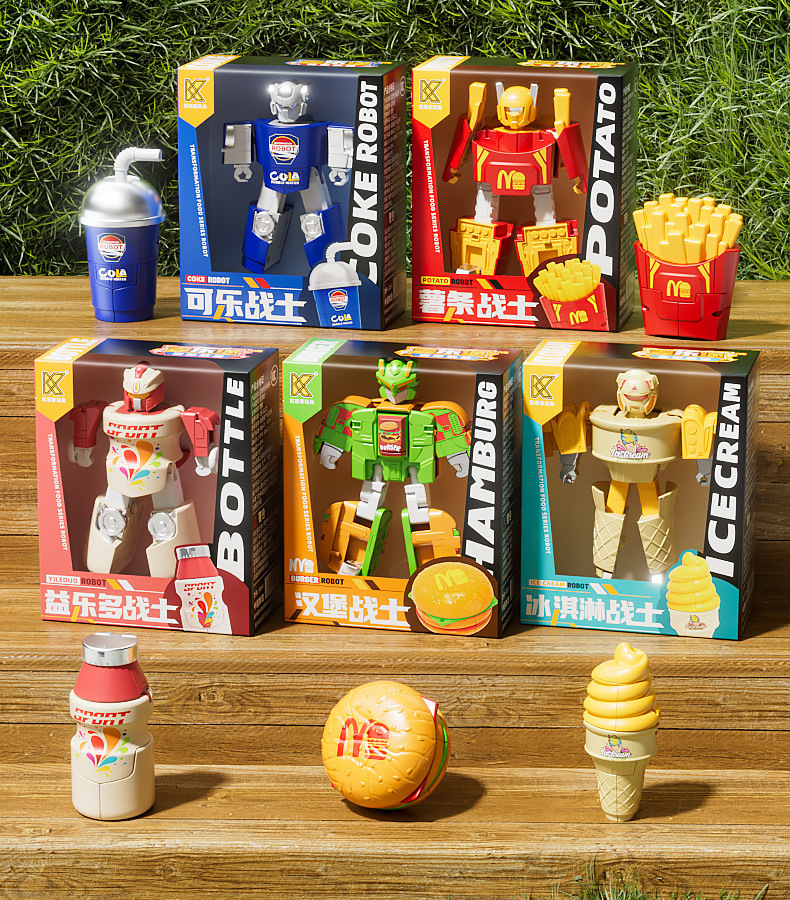 변형 로봇 버거 감자 튀김 음료 장난감 어린이 시뮬레이션 아이스크림 요구르트 메카 리그 모델 도매스토어 가기