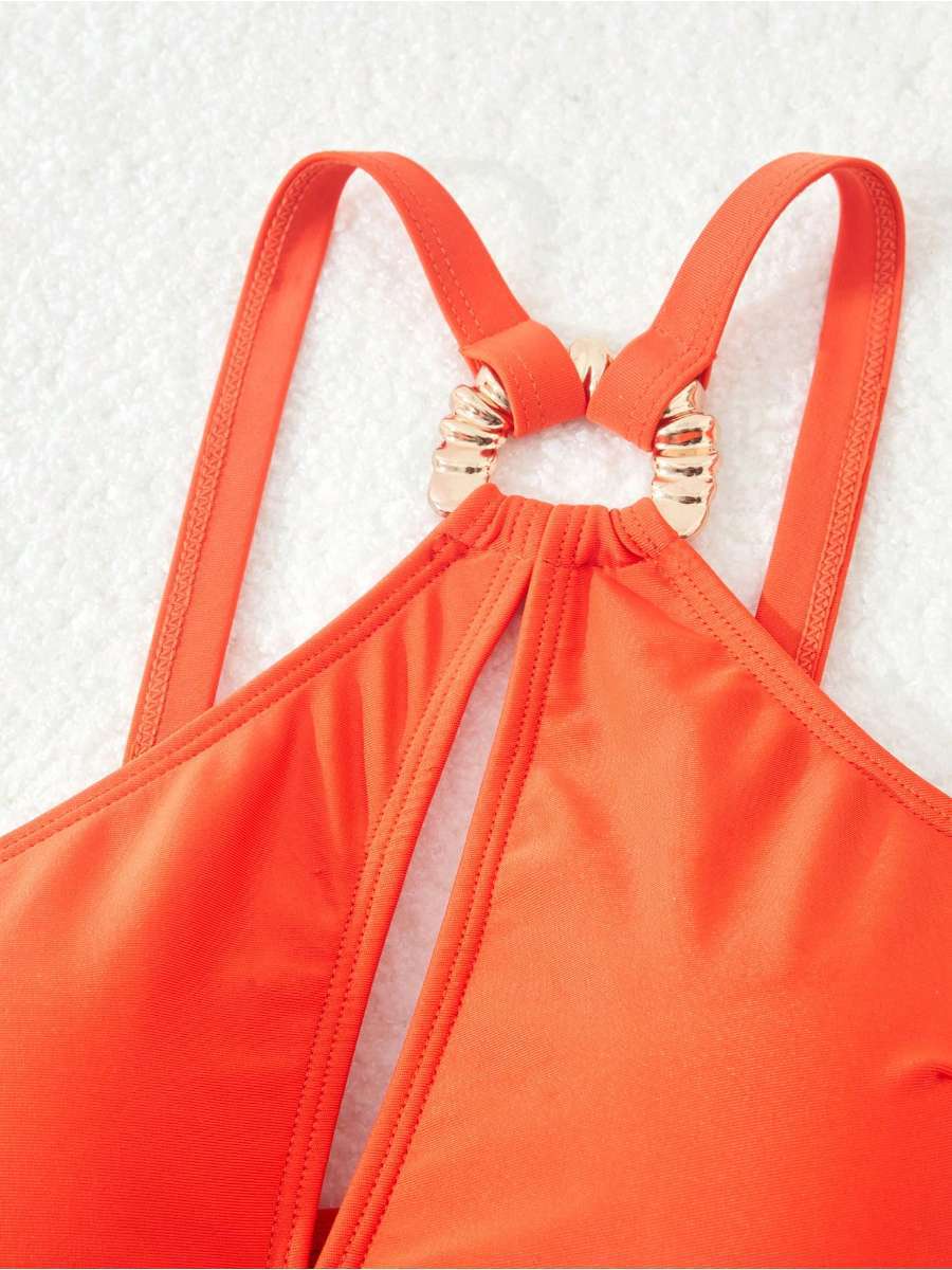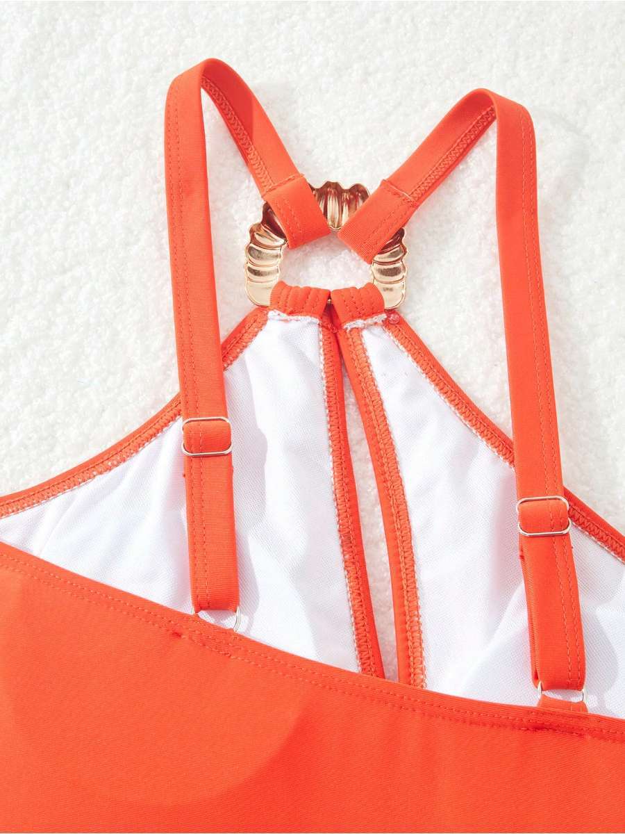 유럽과 미국의 원피스 수영복, 여성스러운 등이없는 솔리드 컬러 싱글 숄더 스트랩 중공 점프 슈트 Amazon 크로스 보더 여성용 수영복