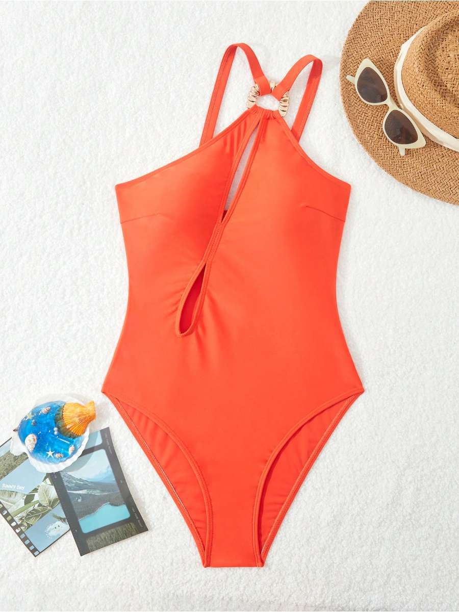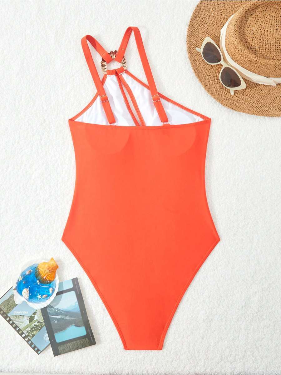 유럽과 미국의 원피스 수영복, 여성스러운 등이없는 솔리드 컬러 싱글 숄더 스트랩 중공 점프 슈트 Amazon 크로스 보더 여성용 수영복스토어 가기