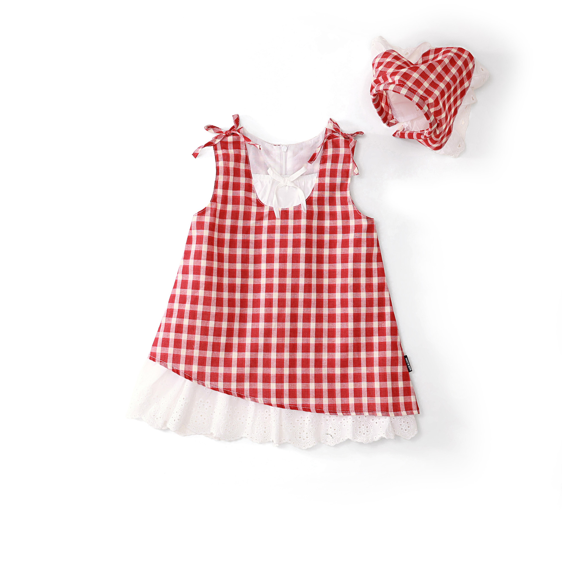 MDD 여자 여름 드레스 2025 아동 의류 한국 스타일 어린이 달콤한 얇은 스타일 격자 무늬 조끼 공주 드레스스토어 가기