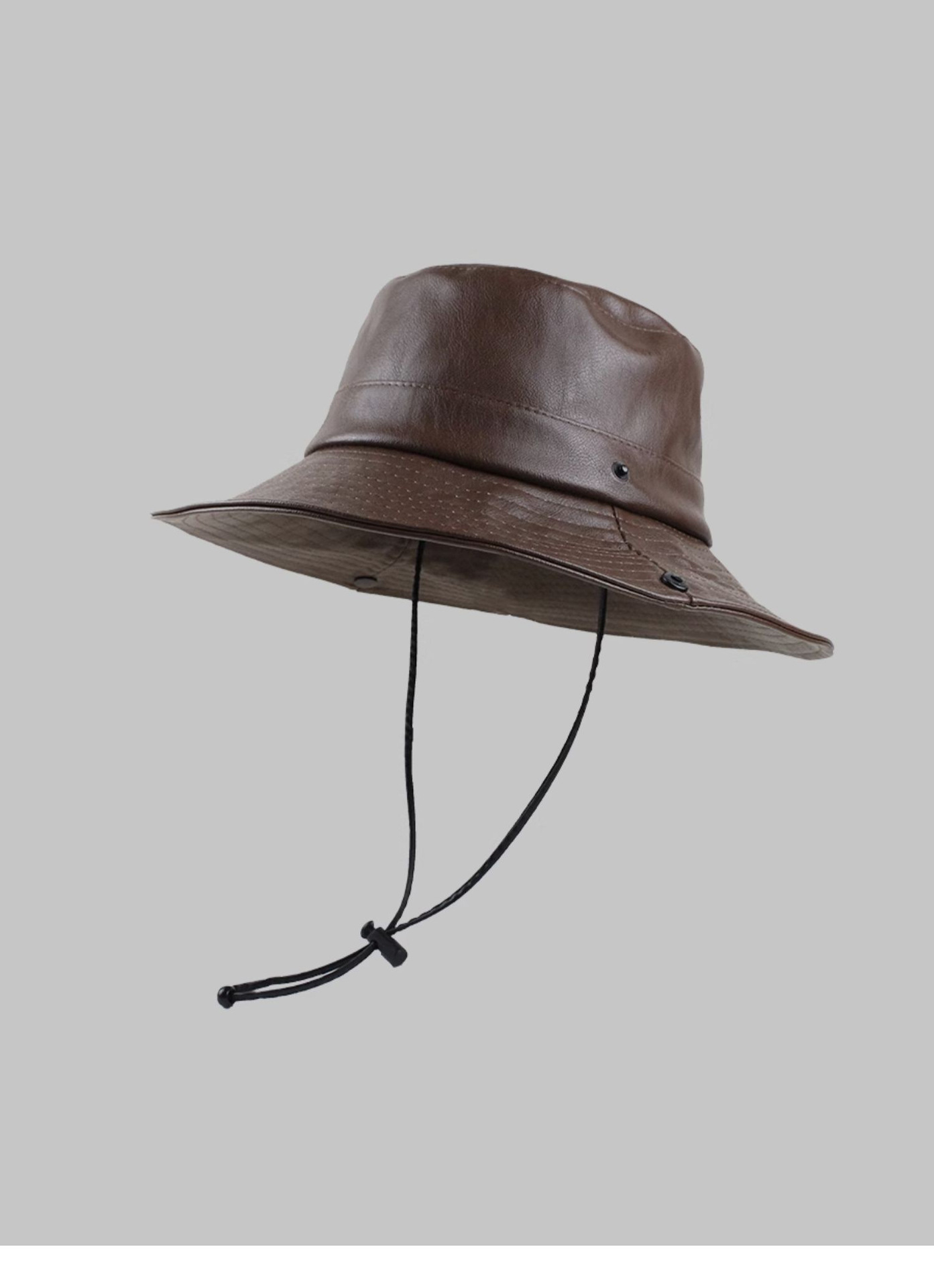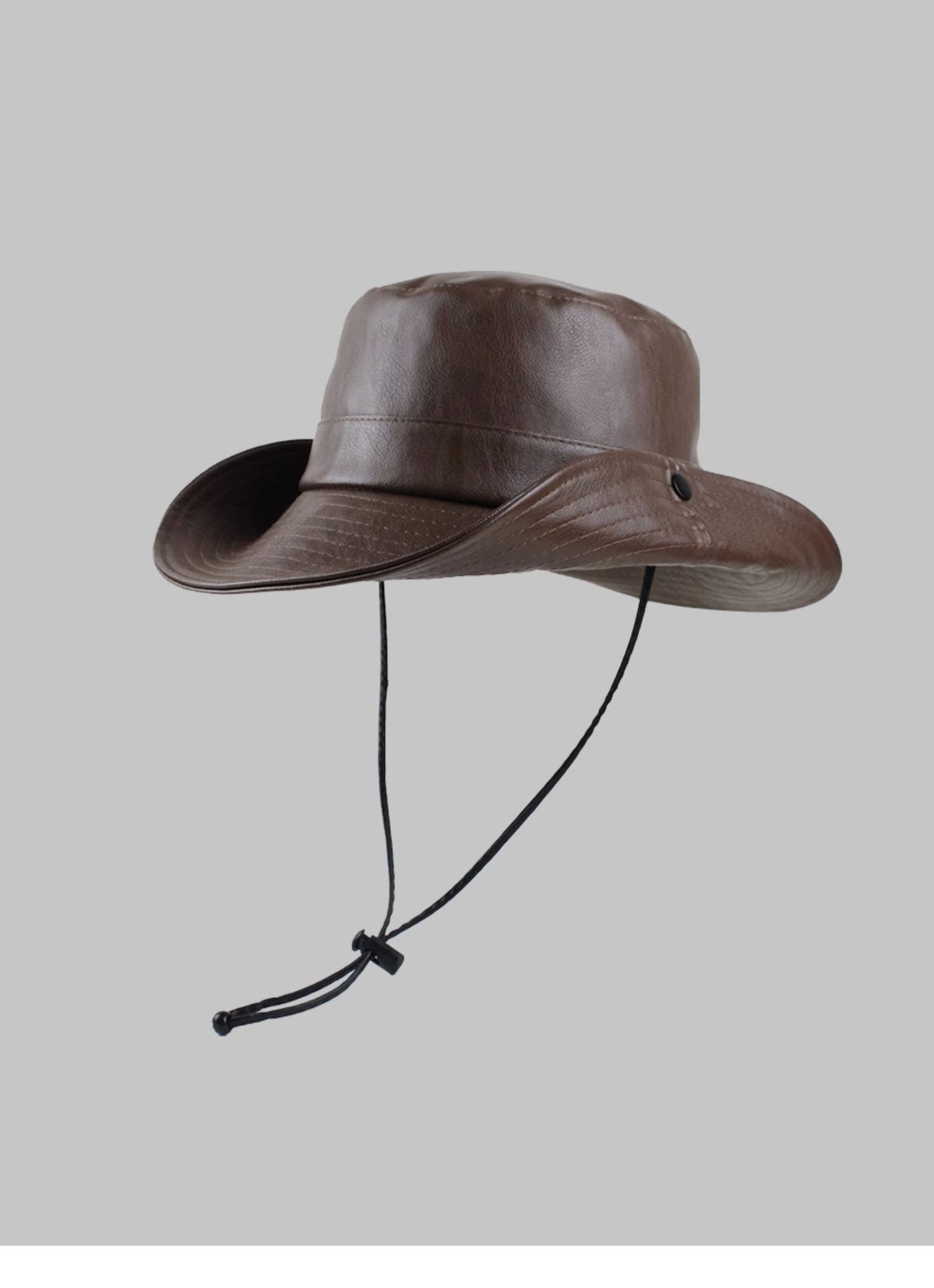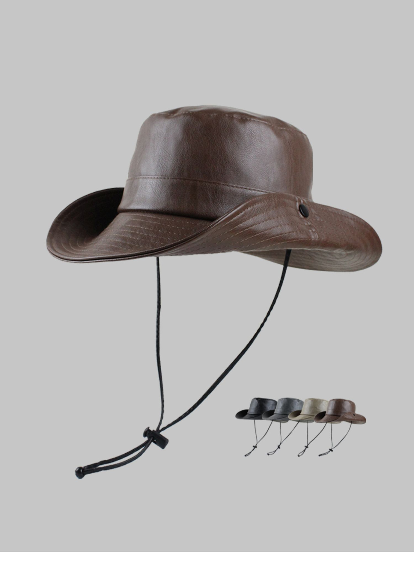 메일라드 레트로 브라운 하이킹 모자 가죽 모자 야외 캠핑 방풍 대형 챙 태양 모자 남성과 여성 하이킹 낚시 모자