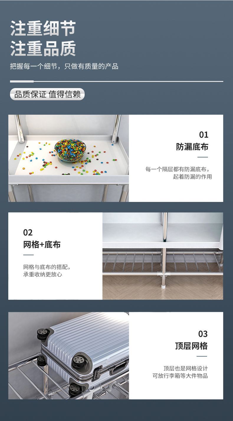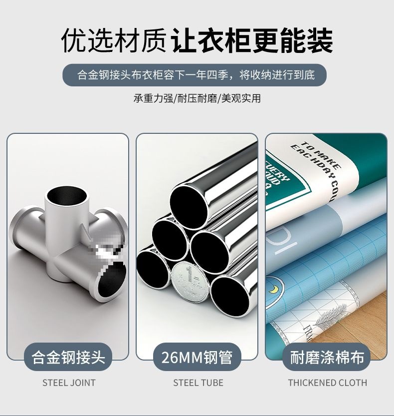 간단한 옷장, 튼튼하고 내구성이 뛰어난 가정용 침실 천 옷장, 전체 강철 프레임, 두껍고 두꺼운 조립 임대 주택 걸이 옷장스토어 가기