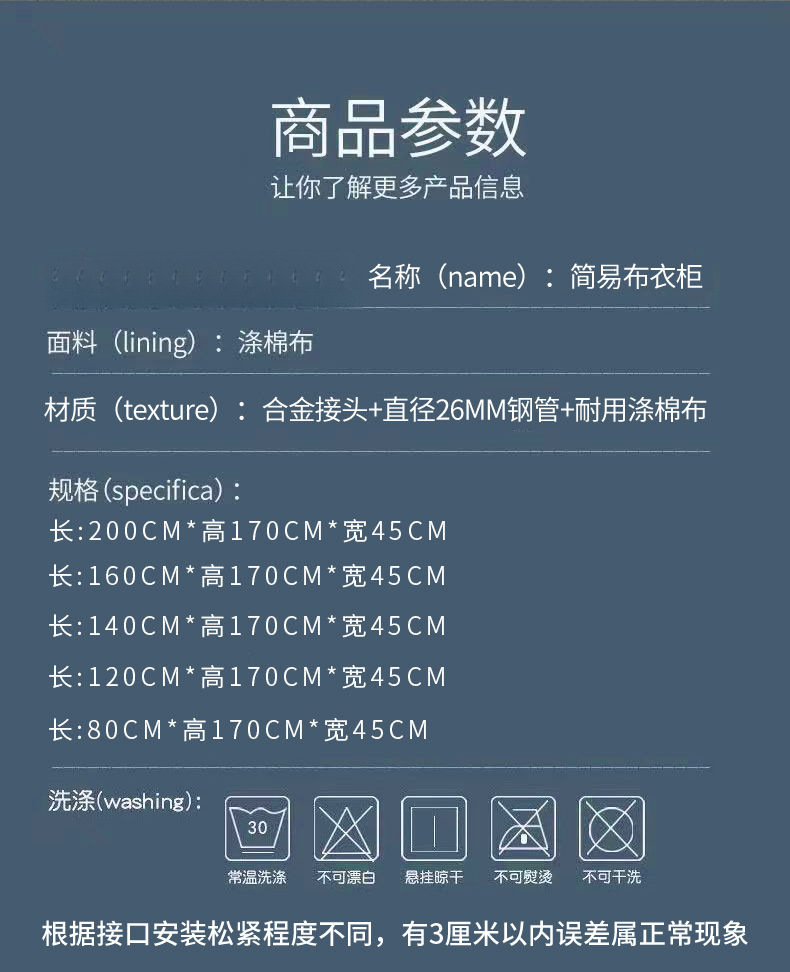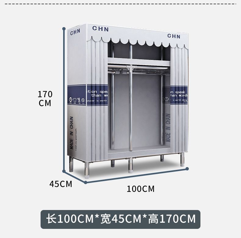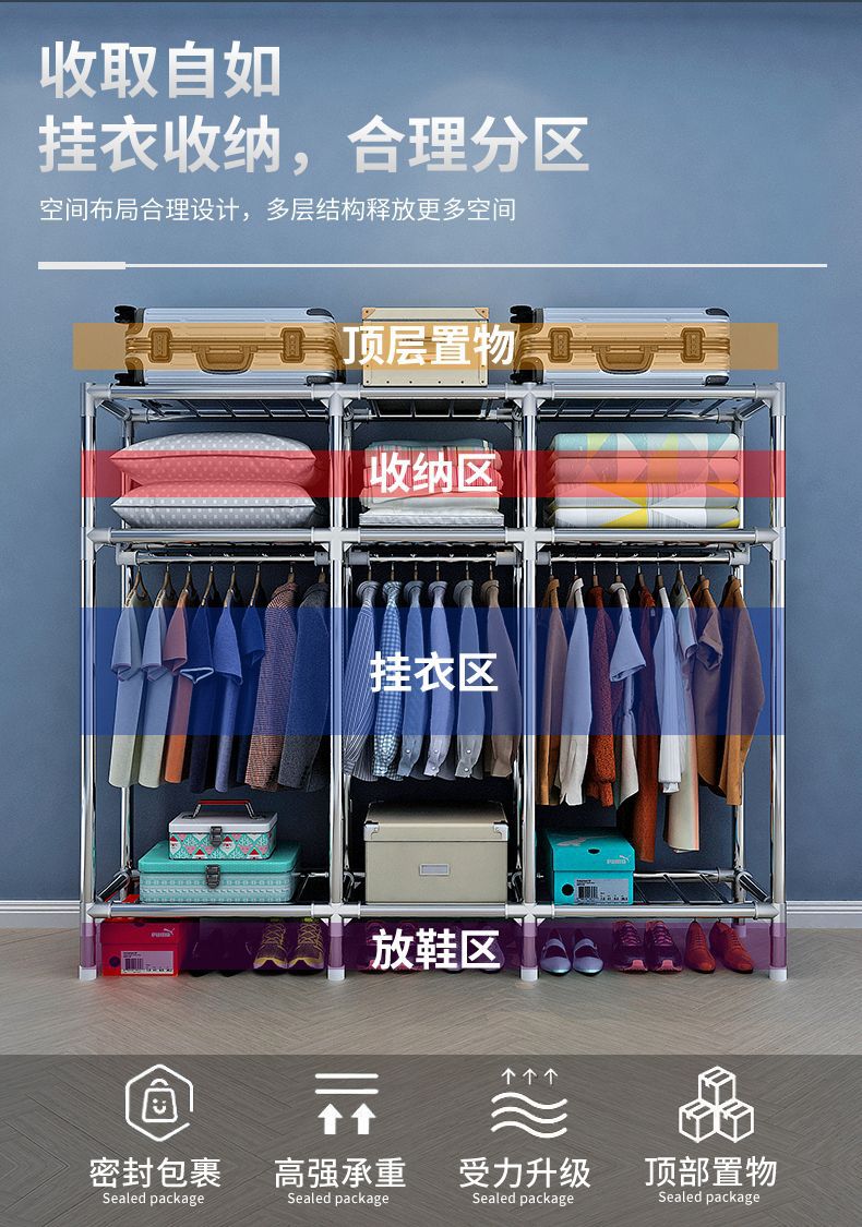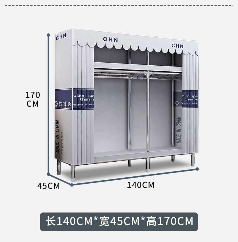 간단한 옷장, 튼튼하고 내구성이 뛰어난 가정용 침실 천 옷장, 전체 강철 프레임, 두껍고 두꺼운 조립 임대 주택 걸이 옷장
