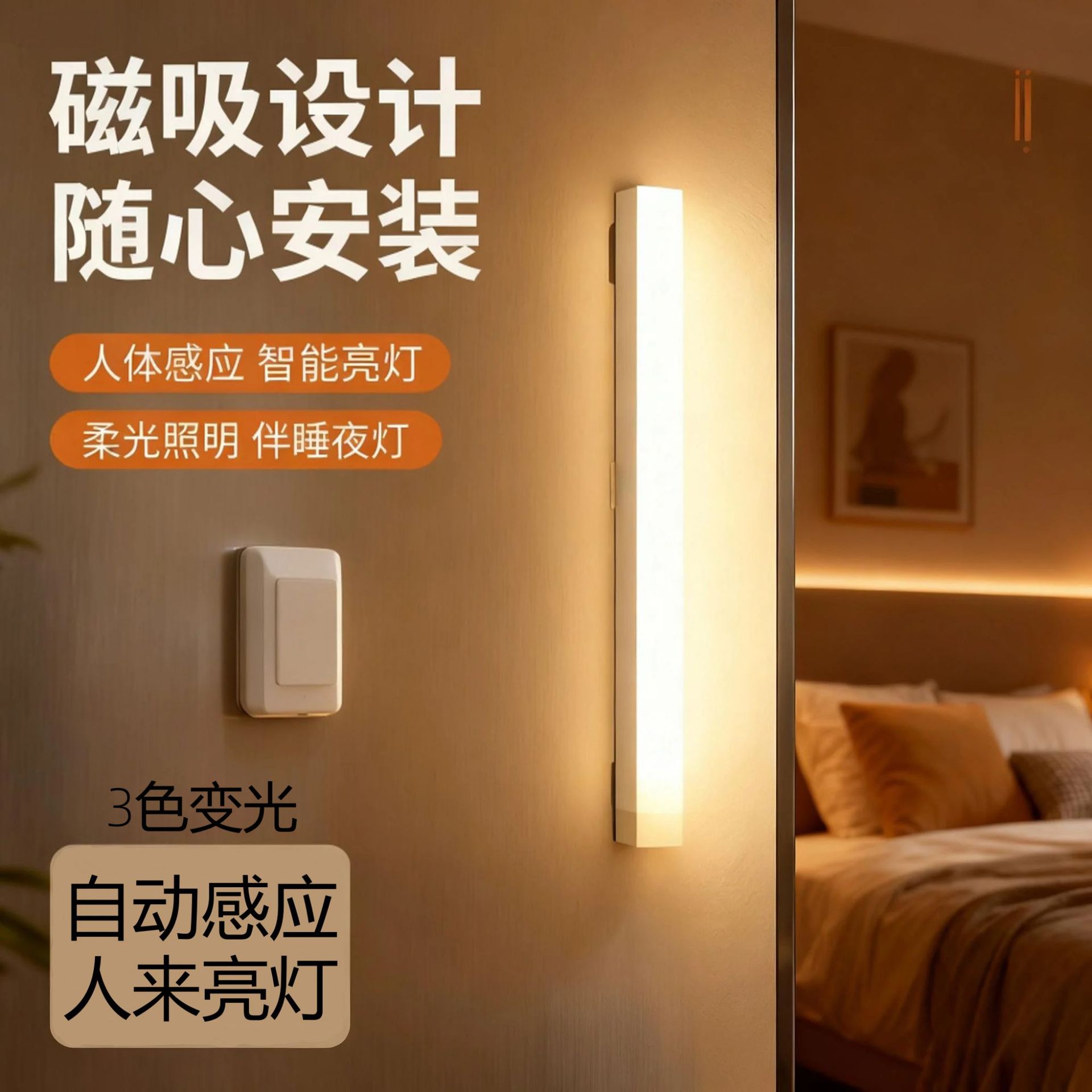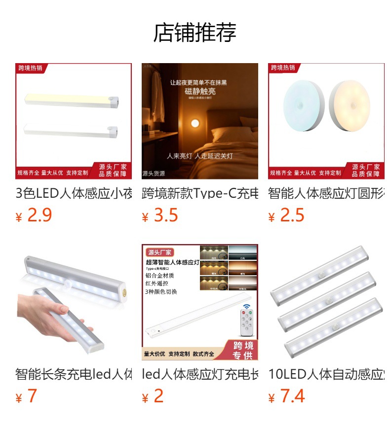 3색 LED 인체 유도 야간 조명 자기 충전식 와인 캐비닛 옷장 학생 기숙사 국경 간 스트립 조명 야간 조명스토어 가기