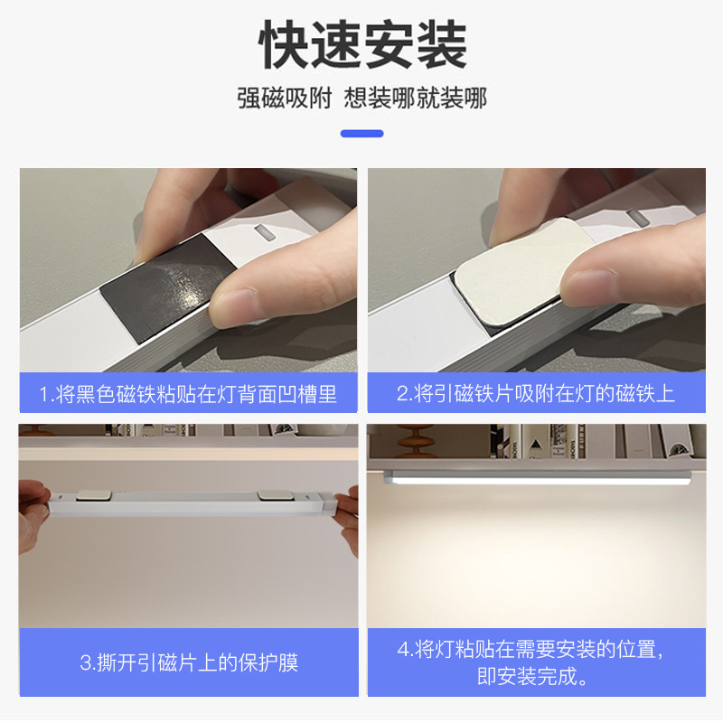 3색 LED 인체 유도 야간 조명 자기 충전식 와인 캐비닛 옷장 학생 기숙사 국경 간 스트립 조명 야간 조명