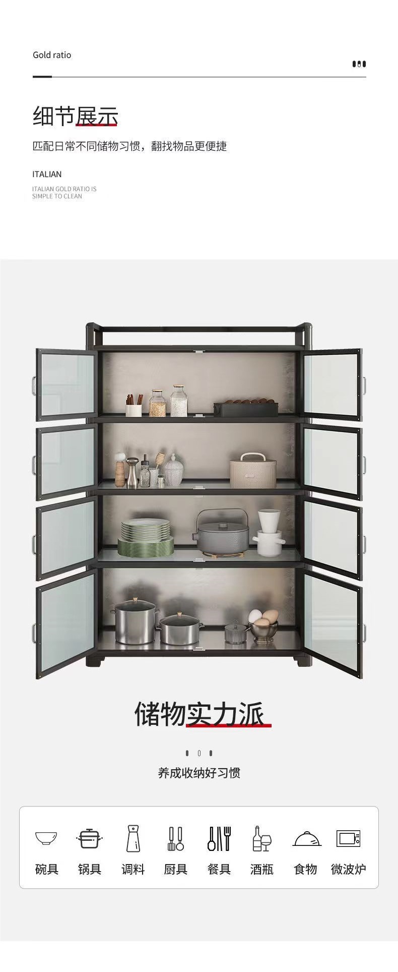 알루미늄 합금 사물함 찬장 주방 선반 바닥에서 천장까지 다층 저장 다기능 전자 레인지 찬장 캐비닛스토어 가기