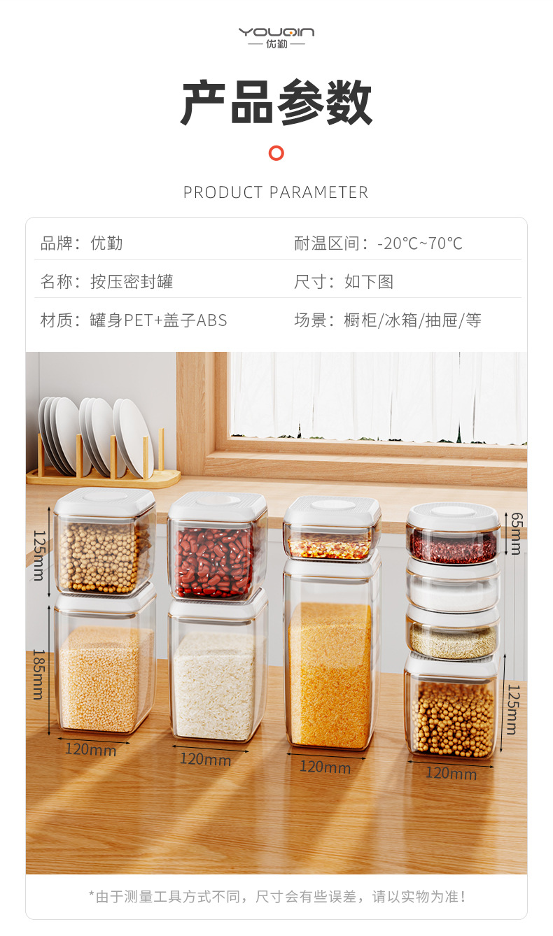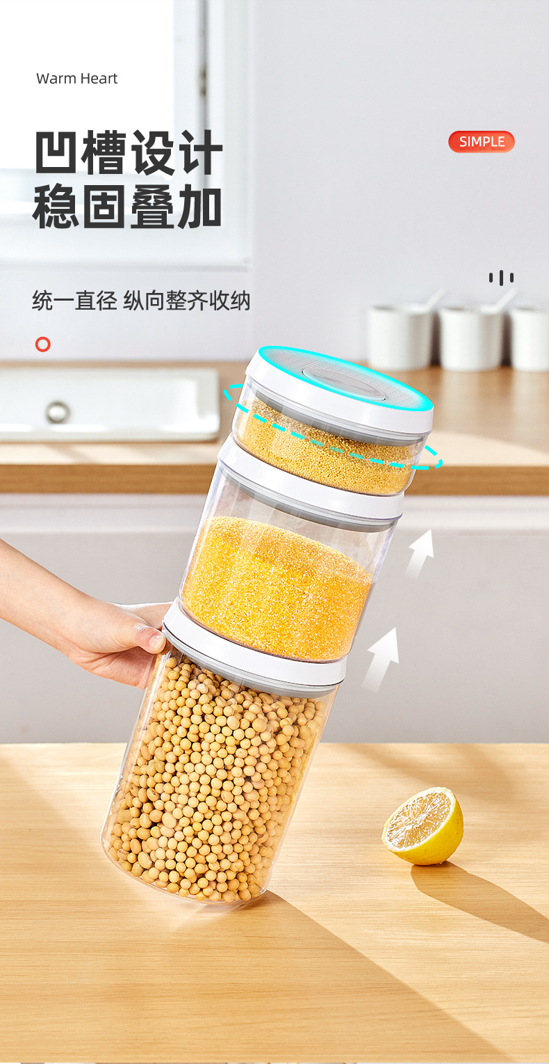 압착형 밀봉병, 곡물보관함, 밀가루 플라스틱병, 뚜껑이 있는 스낵보관병스토어 가기