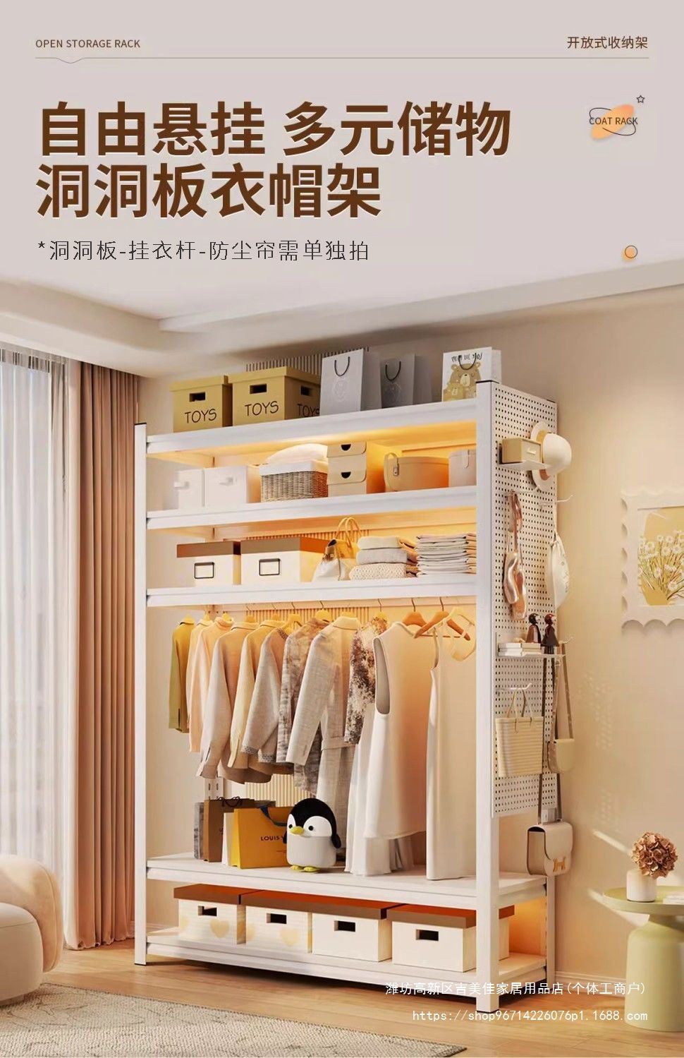 옷장 걸이 선반 방진 커튼 개방형 옷장 침실 간단한 코너 스틸 가정용 바닥에서 천장까지 다층 보관 랙