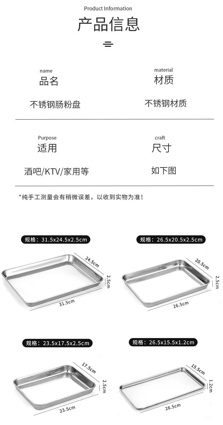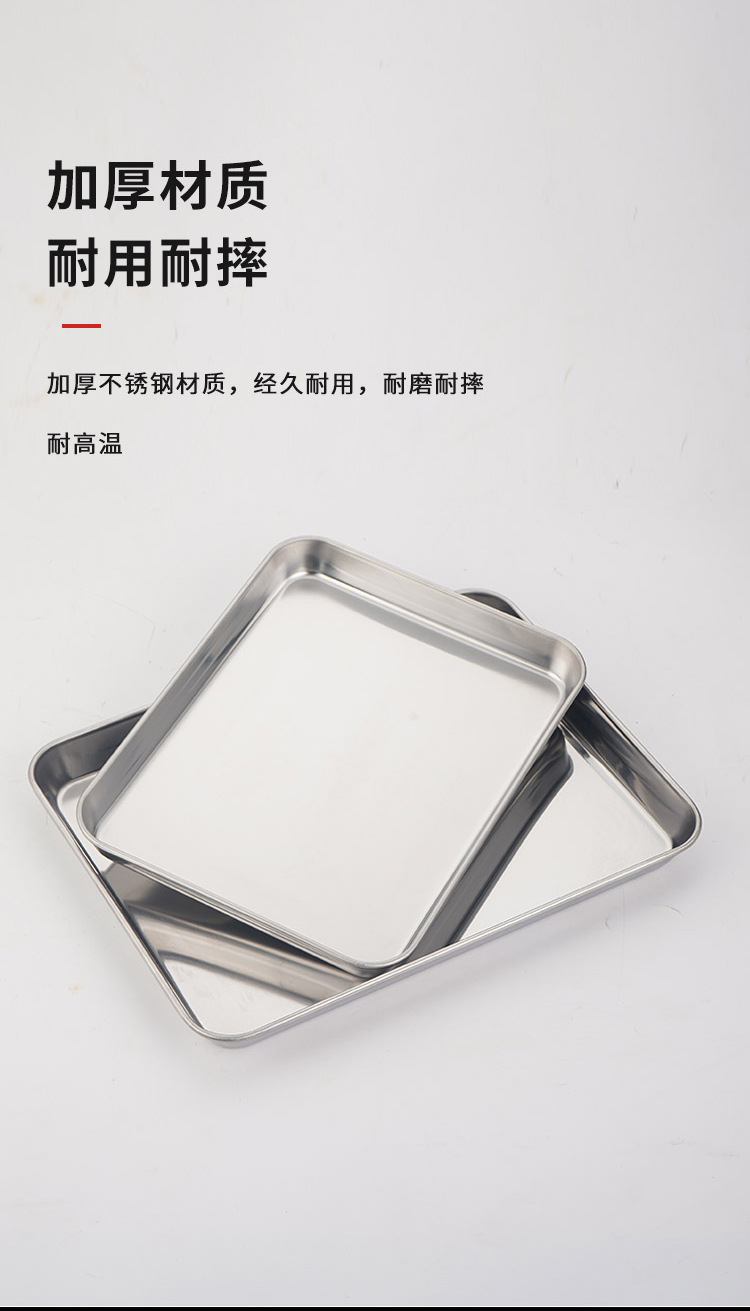 스테인레스 스틸 사각 접시 도매 직사각형 평면 바닥 바베큐 트레이 레스토랑 예비 접시 트레이 도매