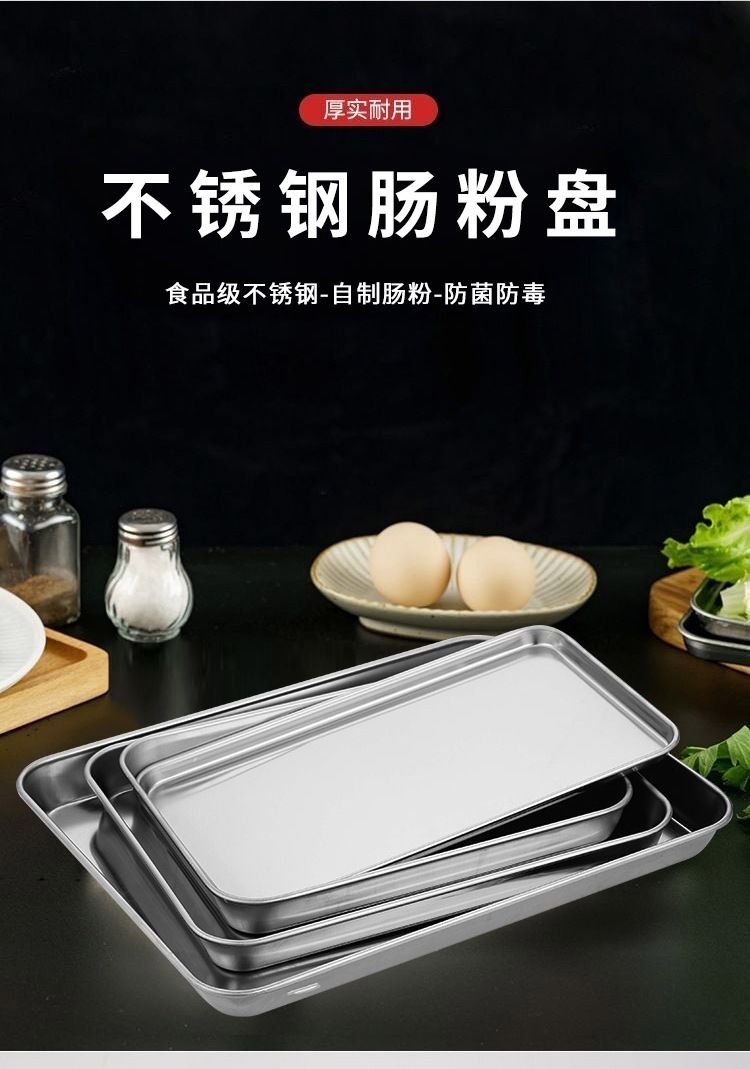 스테인레스 스틸 사각 접시 도매 직사각형 평면 바닥 바베큐 트레이 레스토랑 예비 접시 트레이 도매스토어 가기