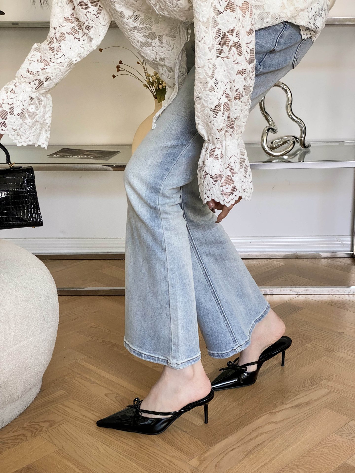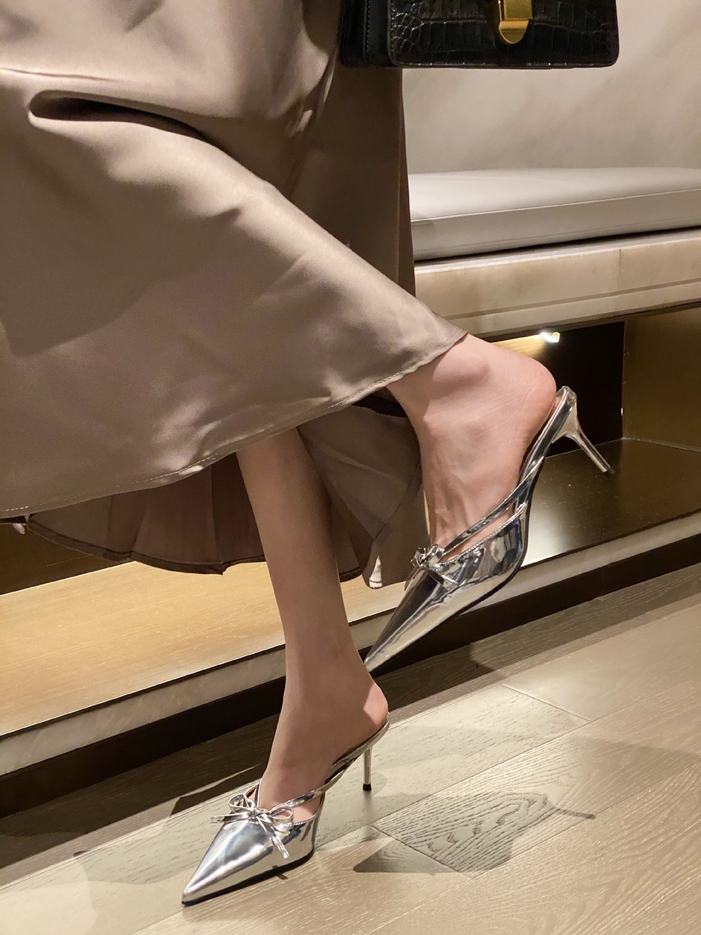 2025 여성용 프렌치 발가락 샌들 봄 여름 신상품 라인스톤 백 빈 스틸레토 힐 우아한 레이디 포인티드 토 하이힐