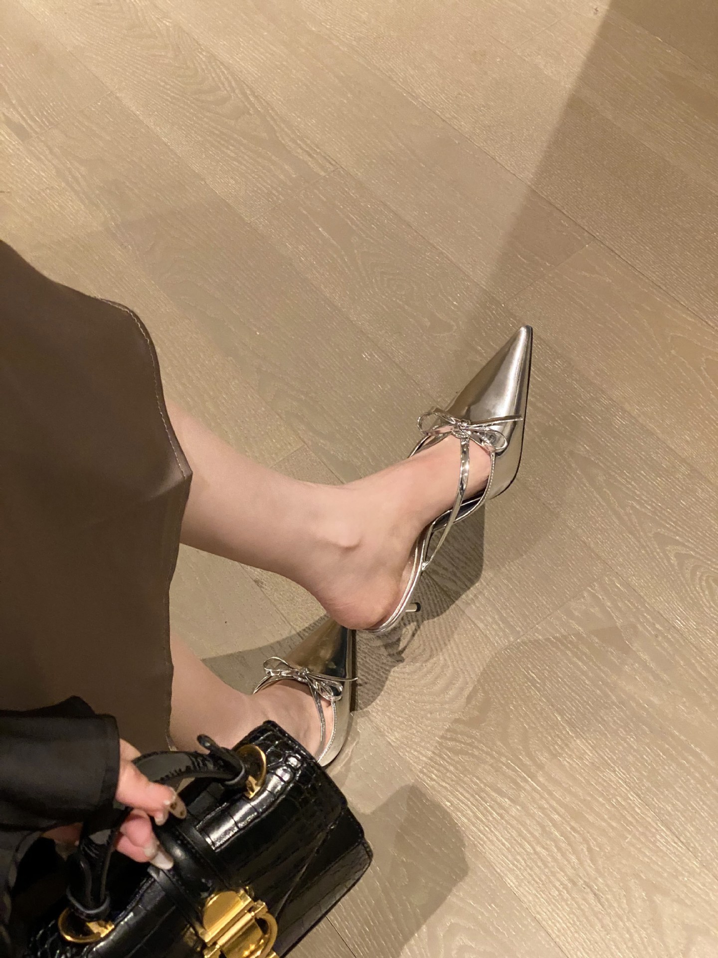 2025 여성용 프렌치 발가락 샌들 봄 여름 신상품 라인스톤 백 빈 스틸레토 힐 우아한 레이디 포인티드 토 하이힐스토어 가기