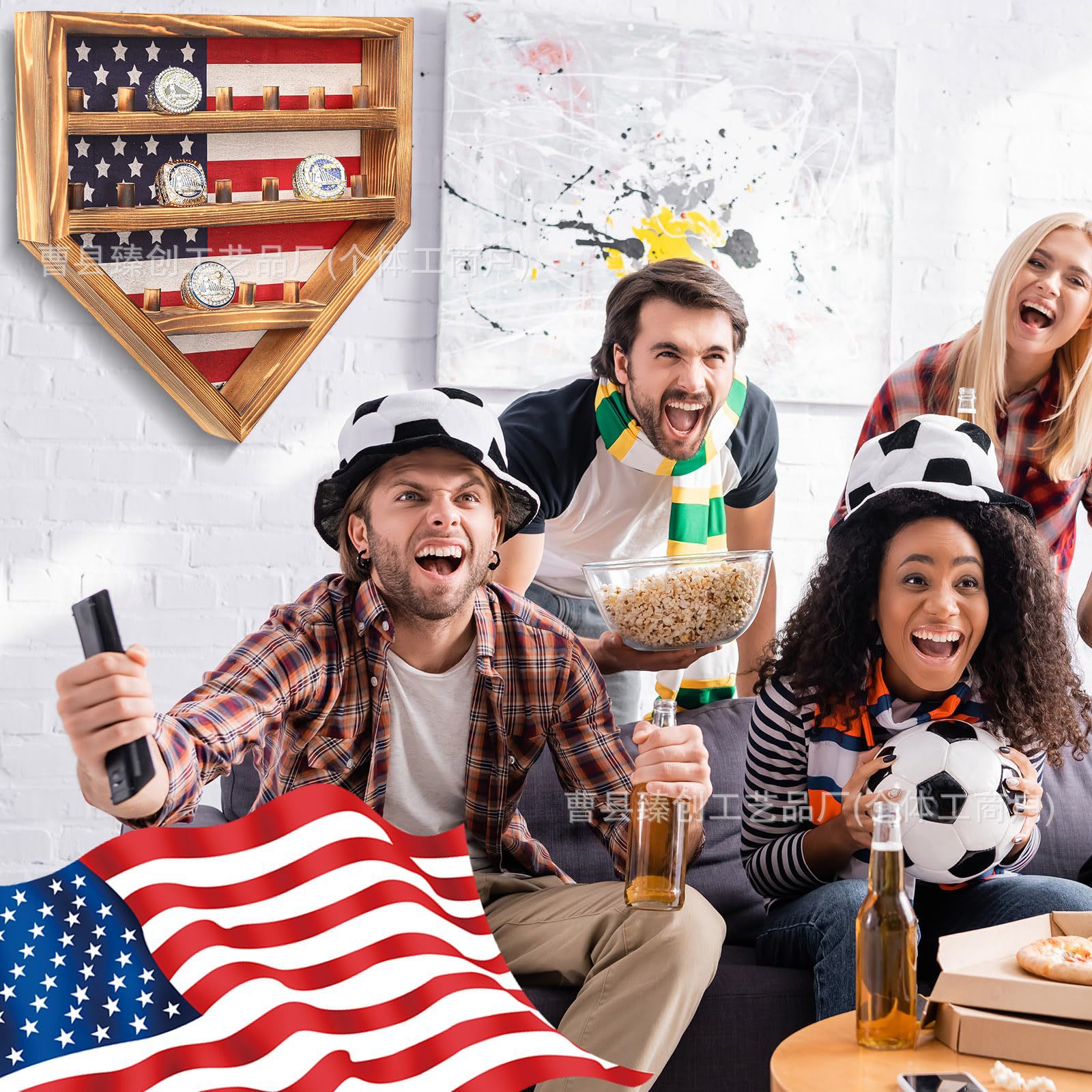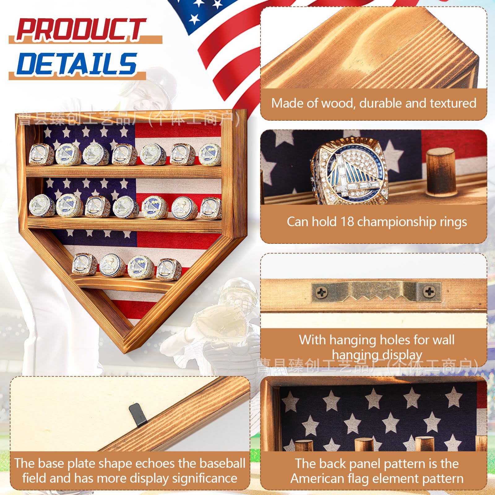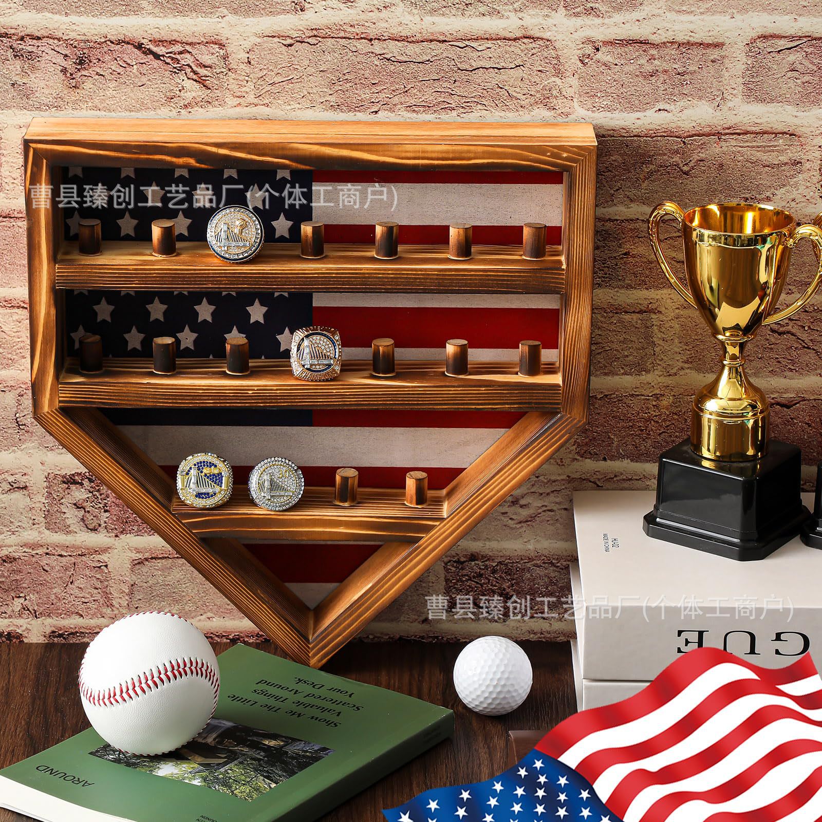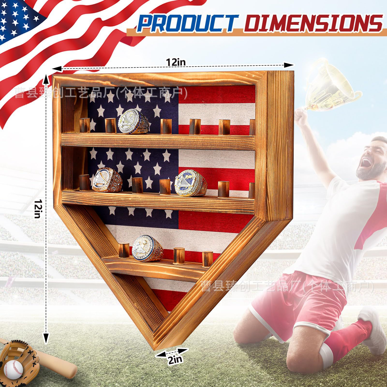 단단한 나무 벽 스토리지 랙 챔피언십 반지 디스플레이 랙 벽걸이 형 다기능 스토리지 랙 쥬얼리 야구 반지 랙