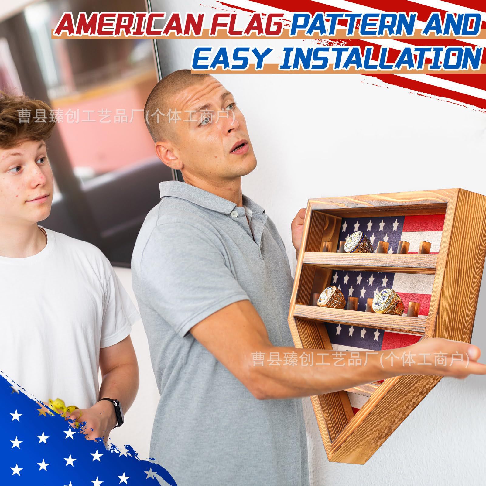 단단한 나무 벽 스토리지 랙 챔피언십 반지 디스플레이 랙 벽걸이 형 다기능 스토리지 랙 쥬얼리 야구 반지 랙스토어 가기