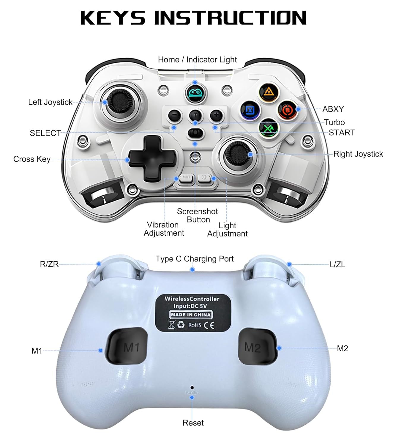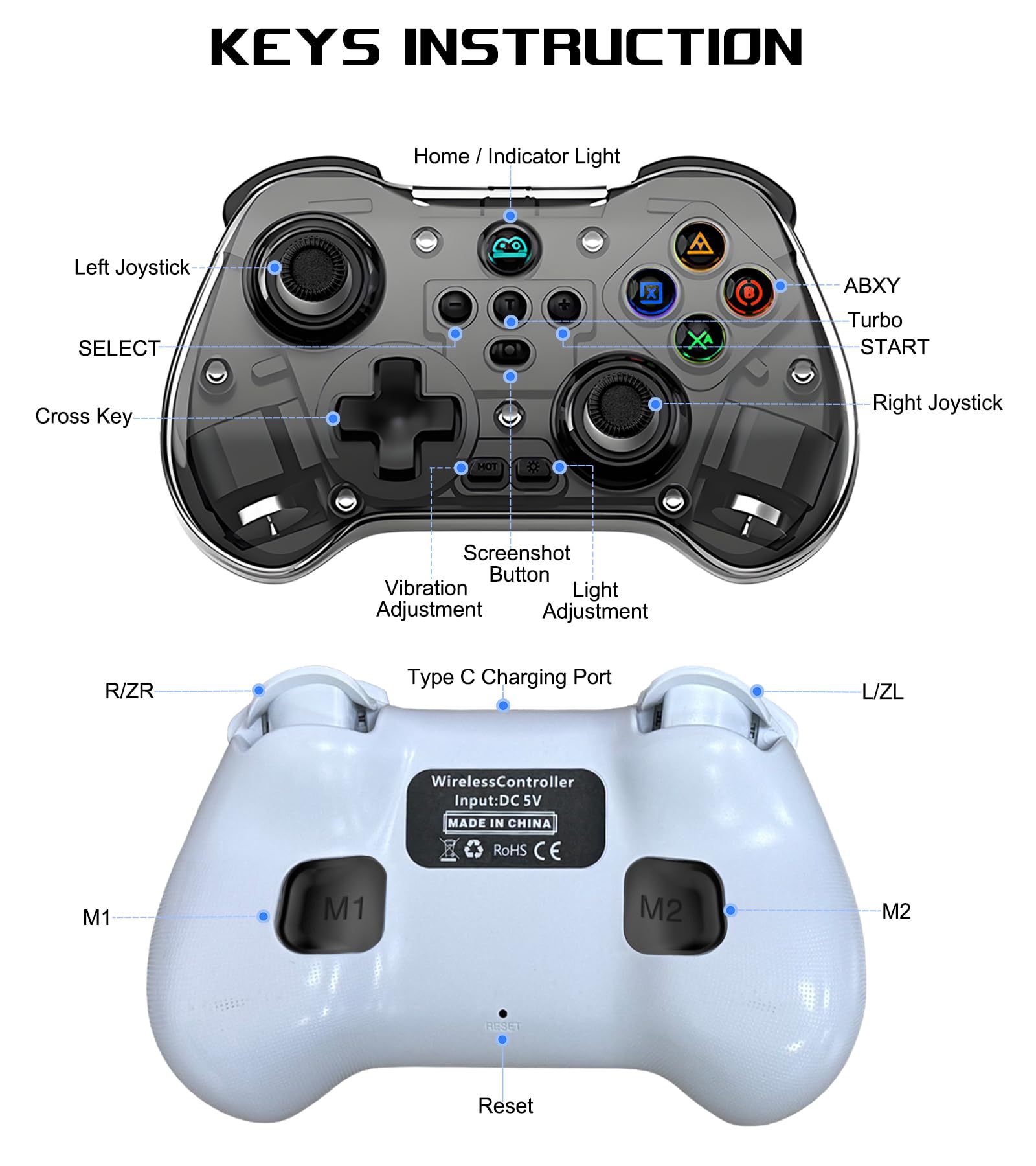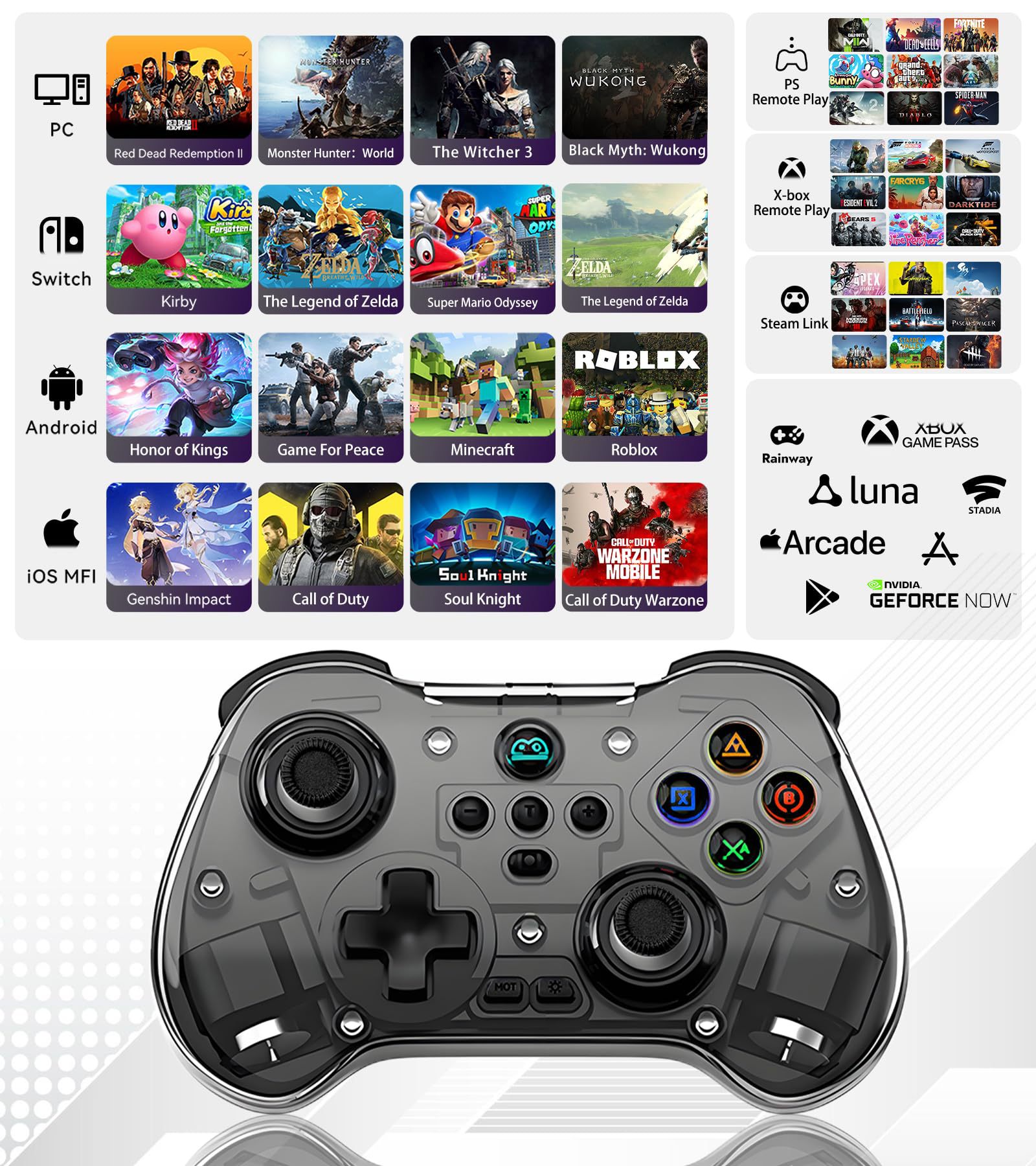Multi Platform Compatibility: Z01X wireless game controller support bluetooth wireless direct connection: iPhone/iPad/Macbook/Android phone/Samsung Galaxy/Huawei/One Plus/TCL/oppo/motorola/Vivo /asus/tablet/PC/Nintendo Switch/Switch OLED/Switch Lite/Steam Deck. No key mapping, no need to jailbreak your phone, you can play directly after connecting Bluetooth successfully