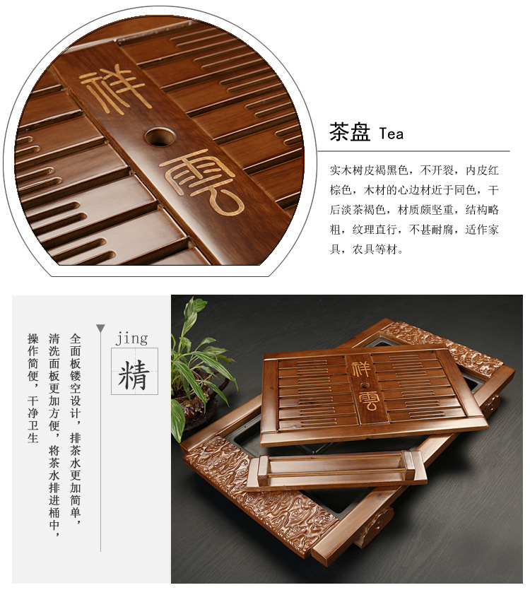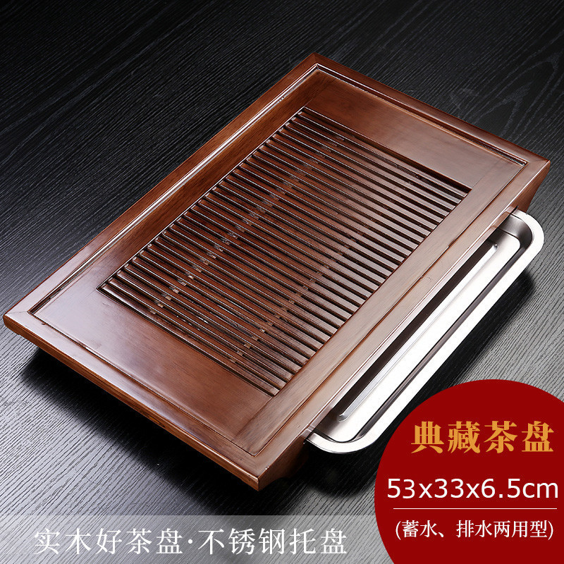 단단한 나무 차 트레이 세트 가정용 차 트레이 가정용 쿵푸 차 세트 배수 저장 단일 트레이 차 트레이가있는 차 테이블