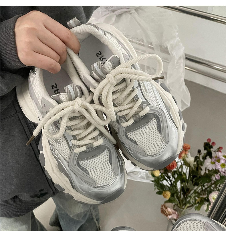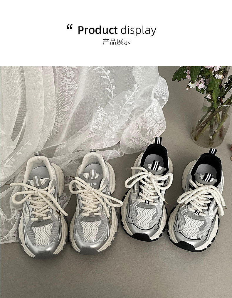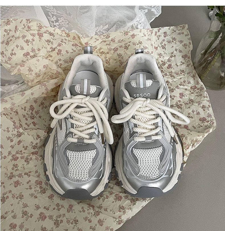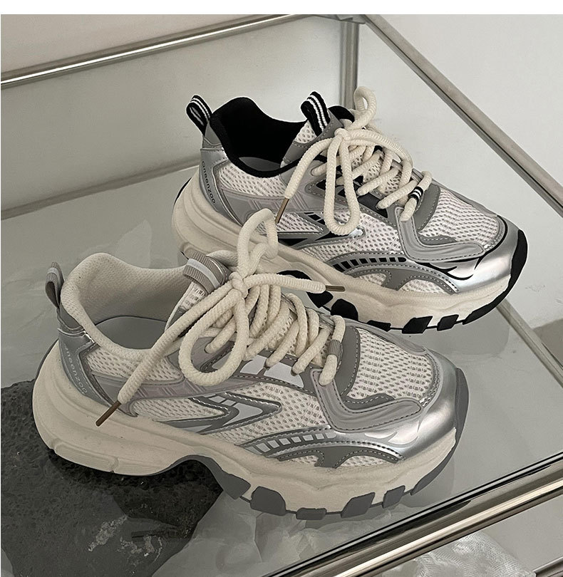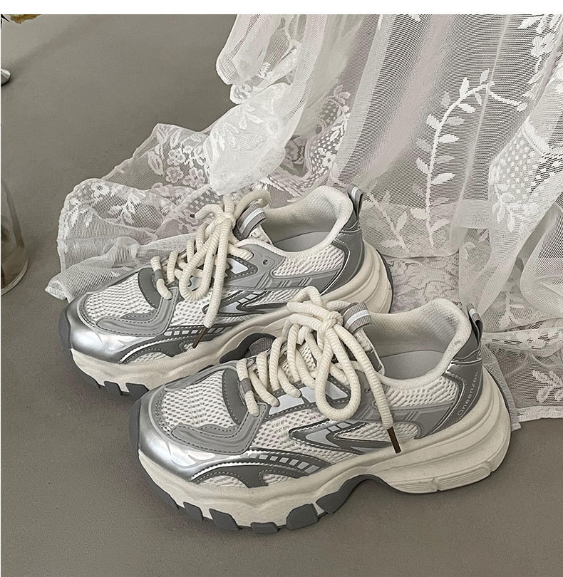 여성을 위한 흰색 스트리트 스타일 작은 두꺼운 밑창 아빠 신발 2025 새로운 여름 메쉬 경량 스포츠 신발스토어 가기