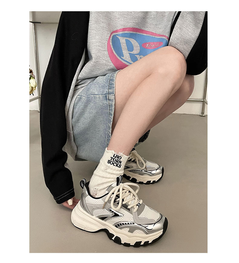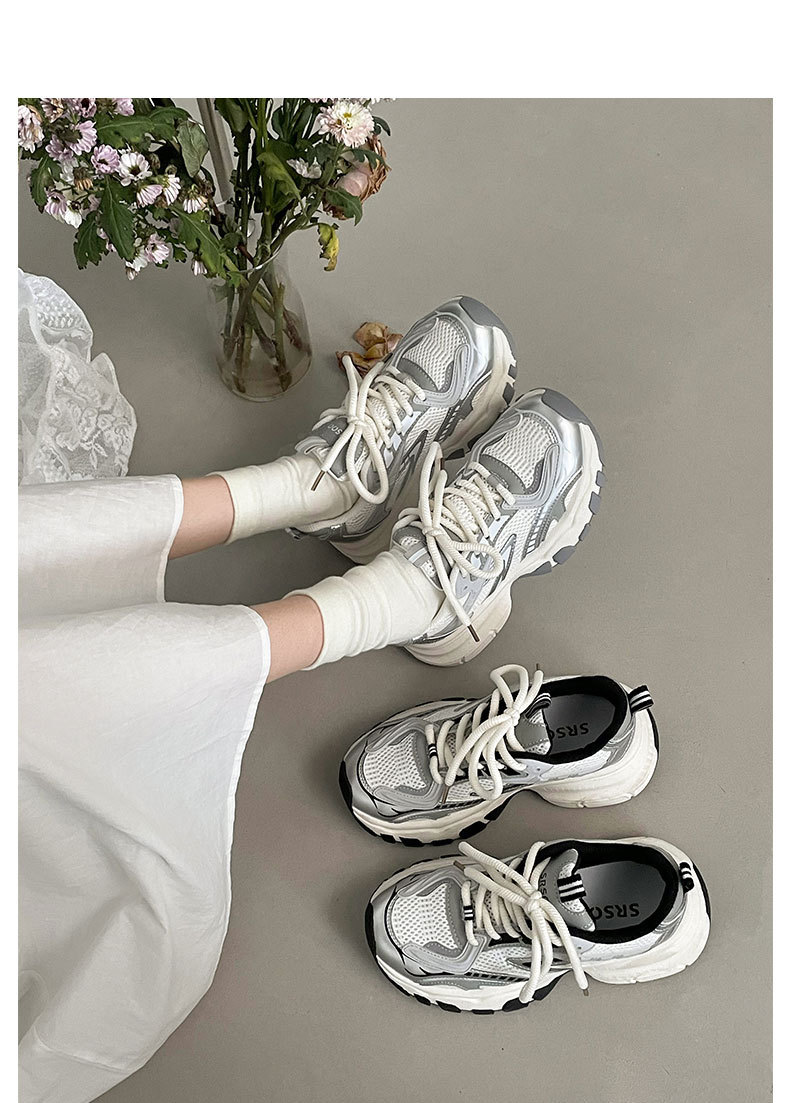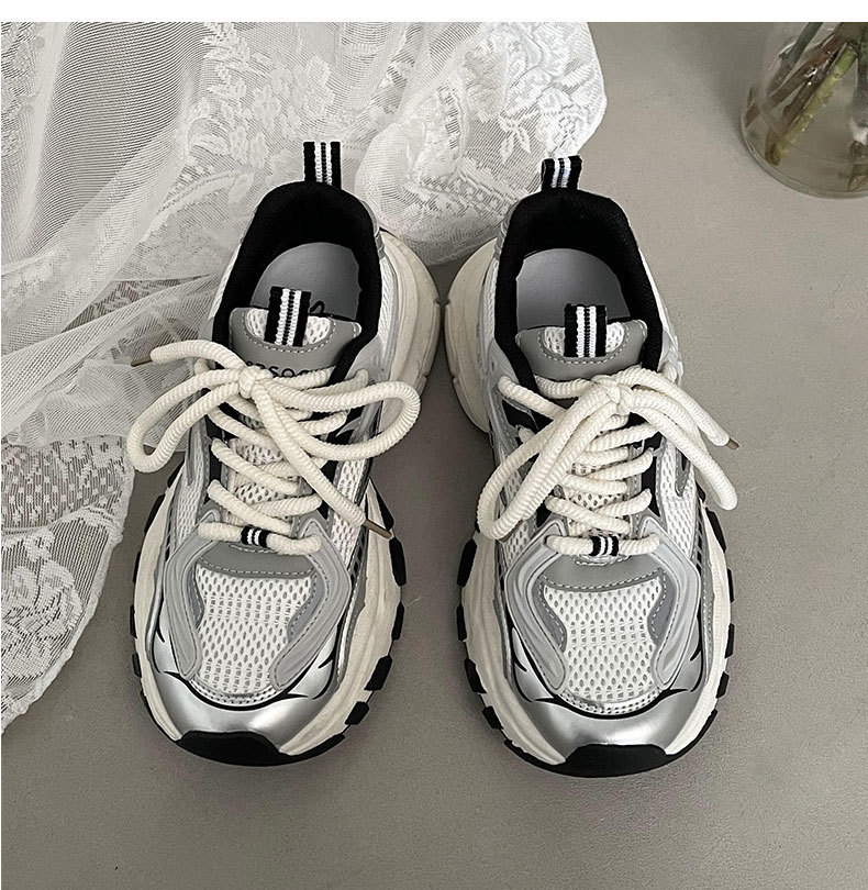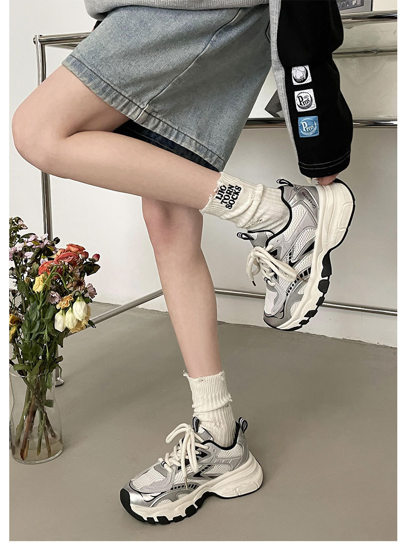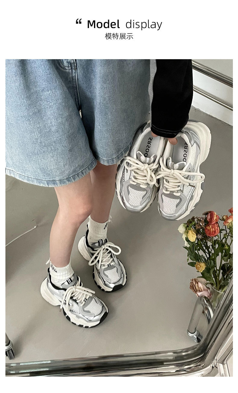 여성을 위한 흰색 스트리트 스타일 작은 두꺼운 밑창 아빠 신발 2025 새로운 여름 메쉬 경량 스포츠 신발스토어 가기