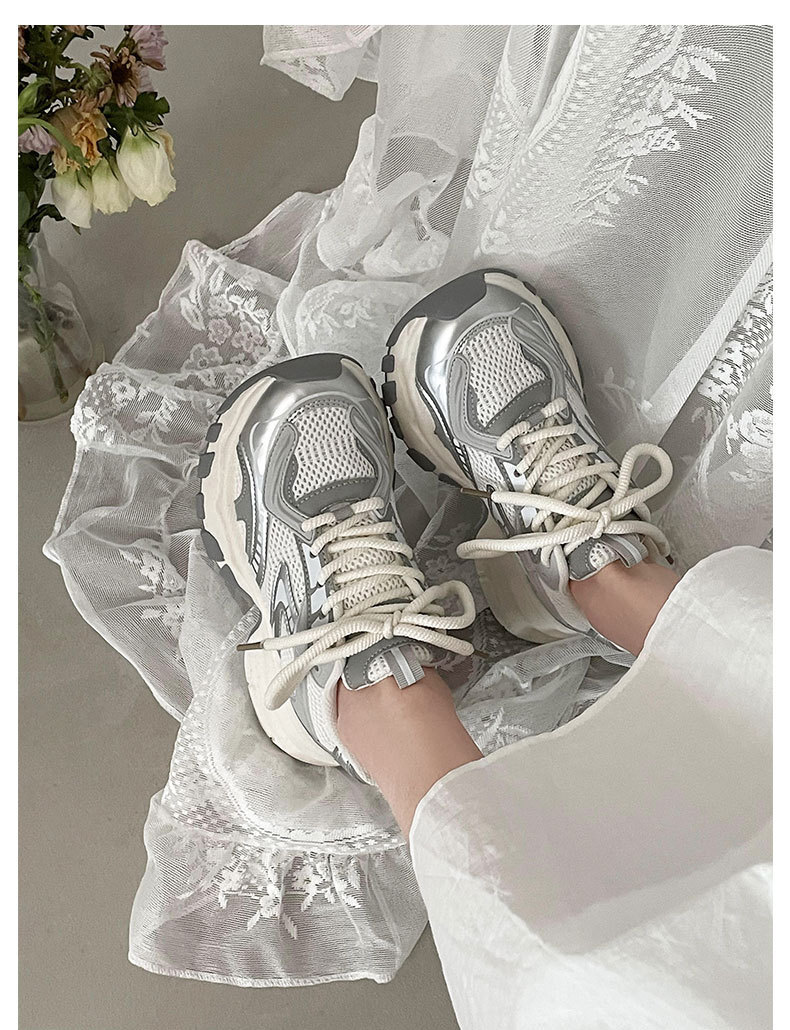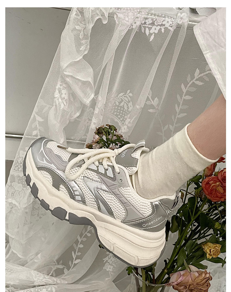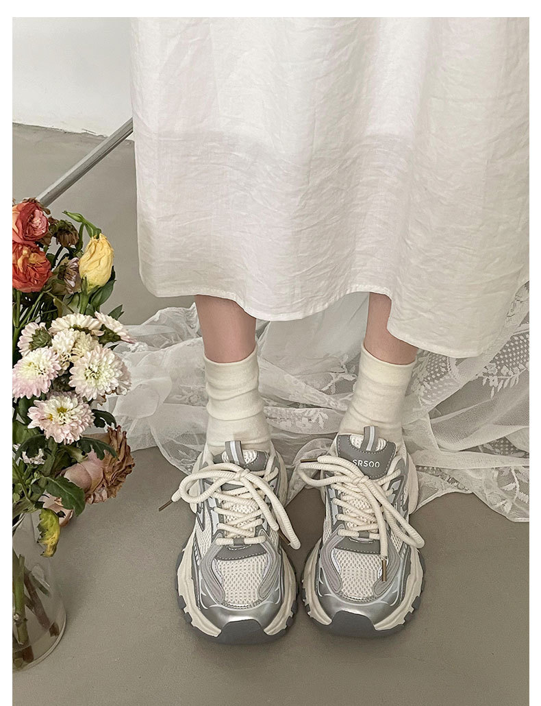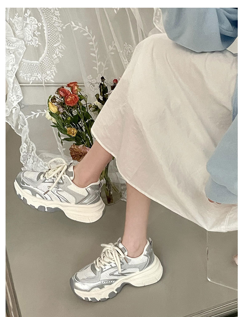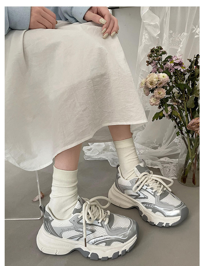 여성을 위한 흰색 스트리트 스타일 작은 두꺼운 밑창 아빠 신발 2025 새로운 여름 메쉬 경량 스포츠 신발