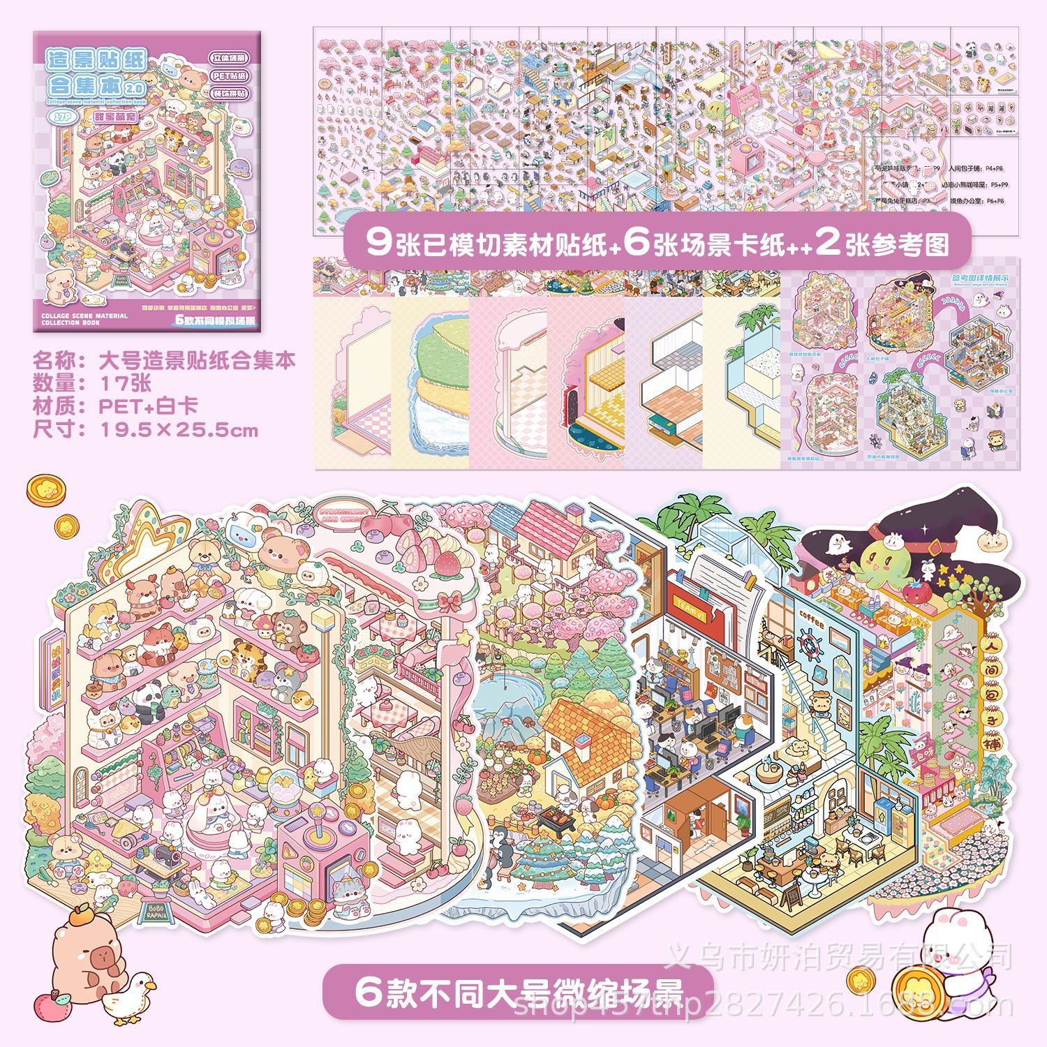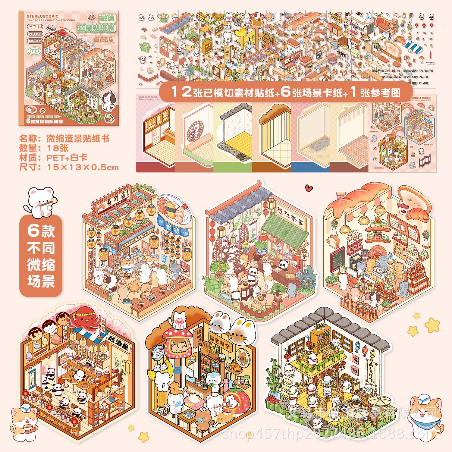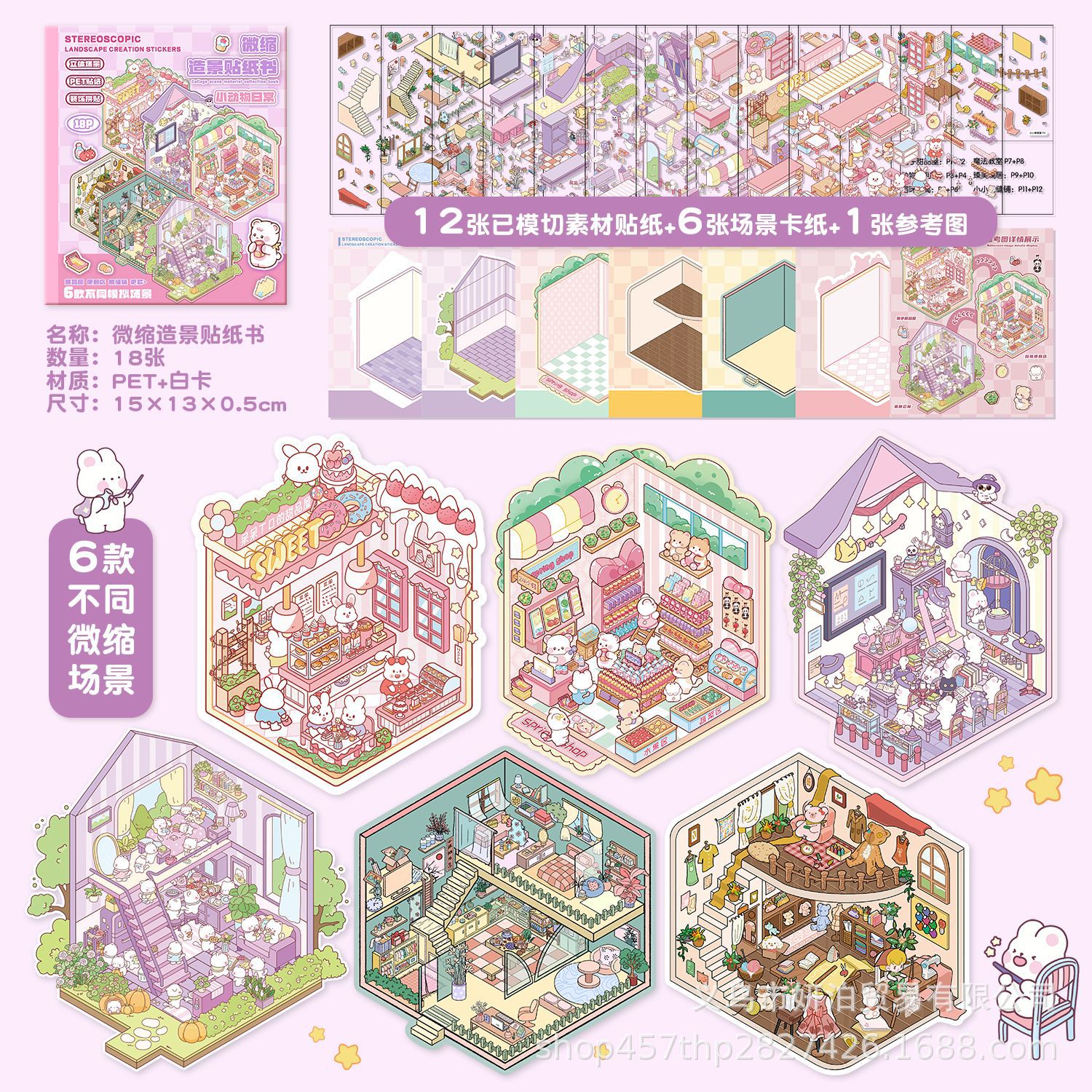 미니어처 조경 스티커 캐빈 교육 어린이 핸드북 3차원 DIY 장난감 컬렉션 계정 3D 장면 스티커스토어 가기