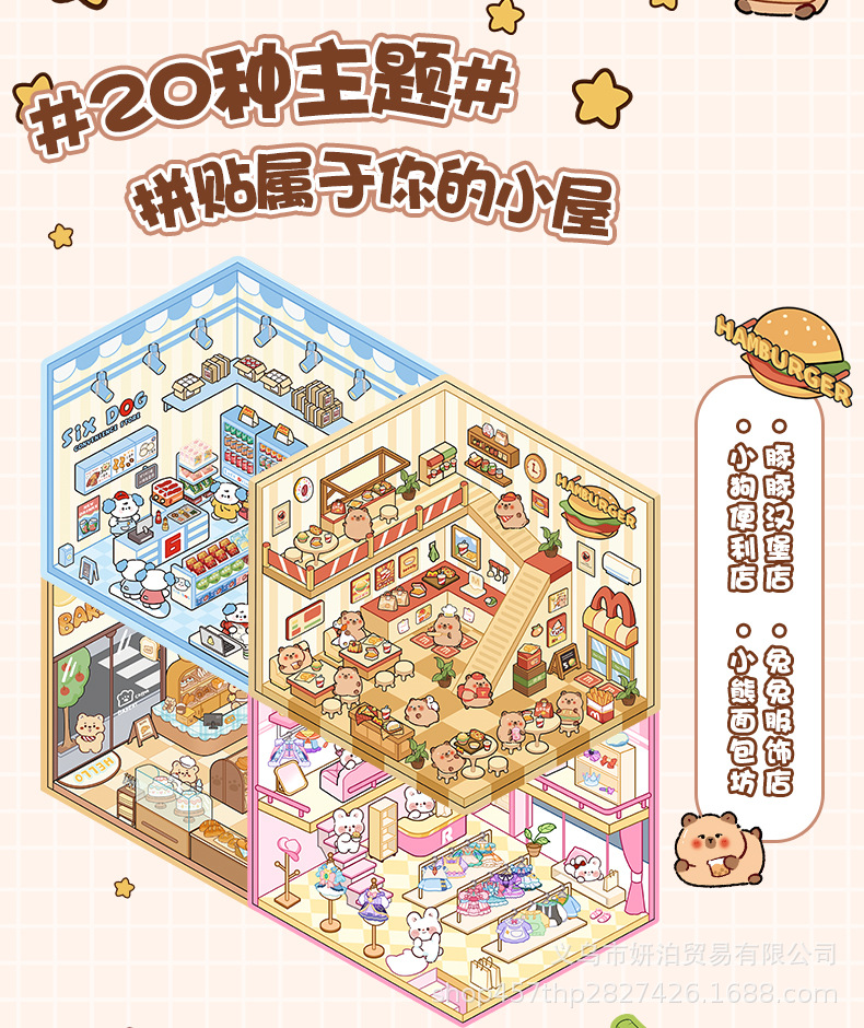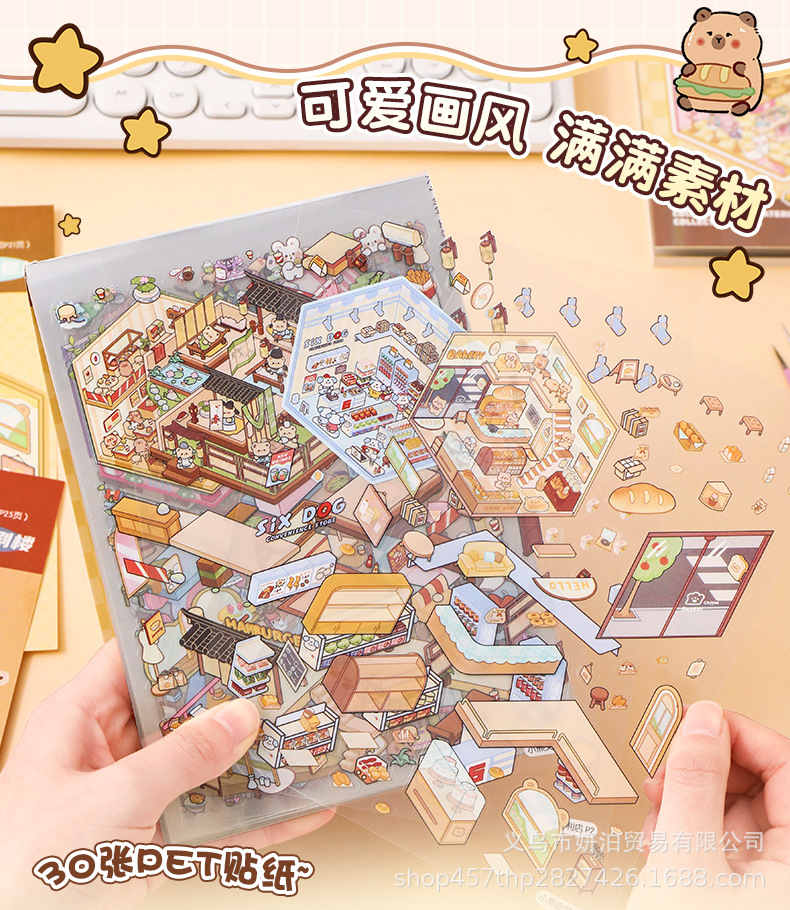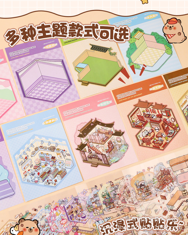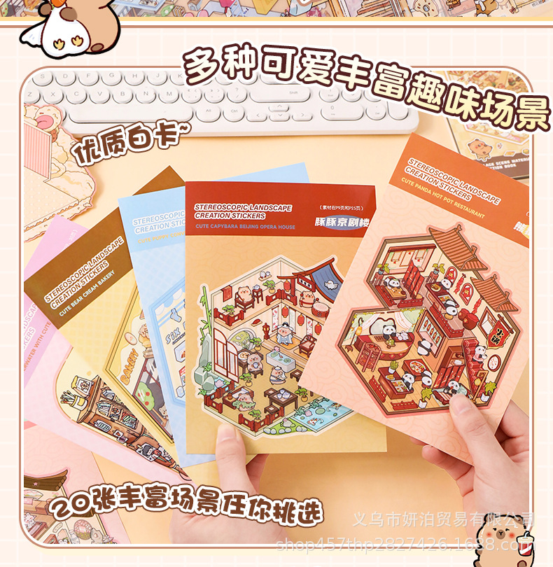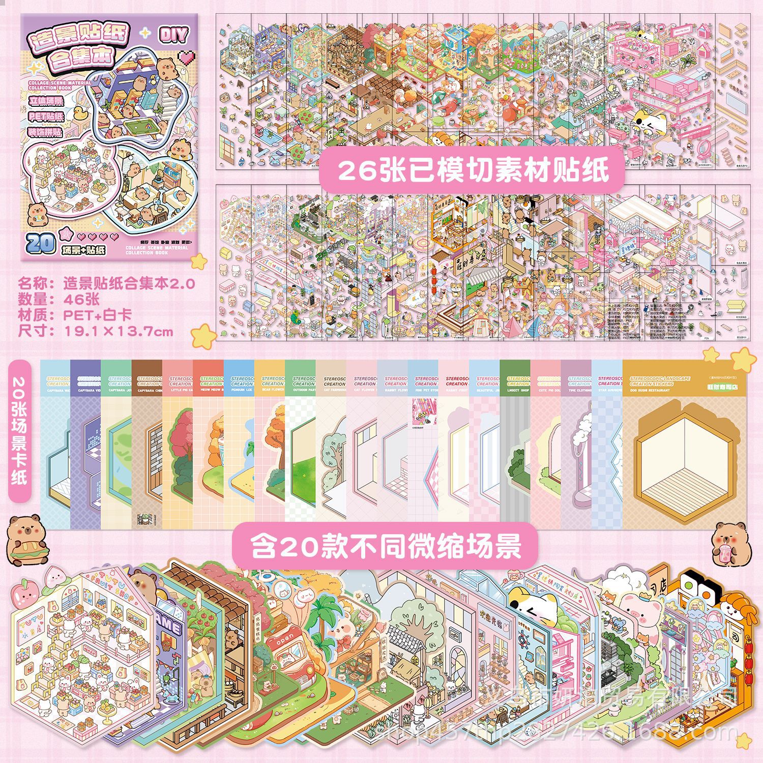 미니어처 조경 스티커 캐빈 교육 어린이 핸드북 3차원 DIY 장난감 컬렉션 계정 3D 장면 스티커스토어 가기