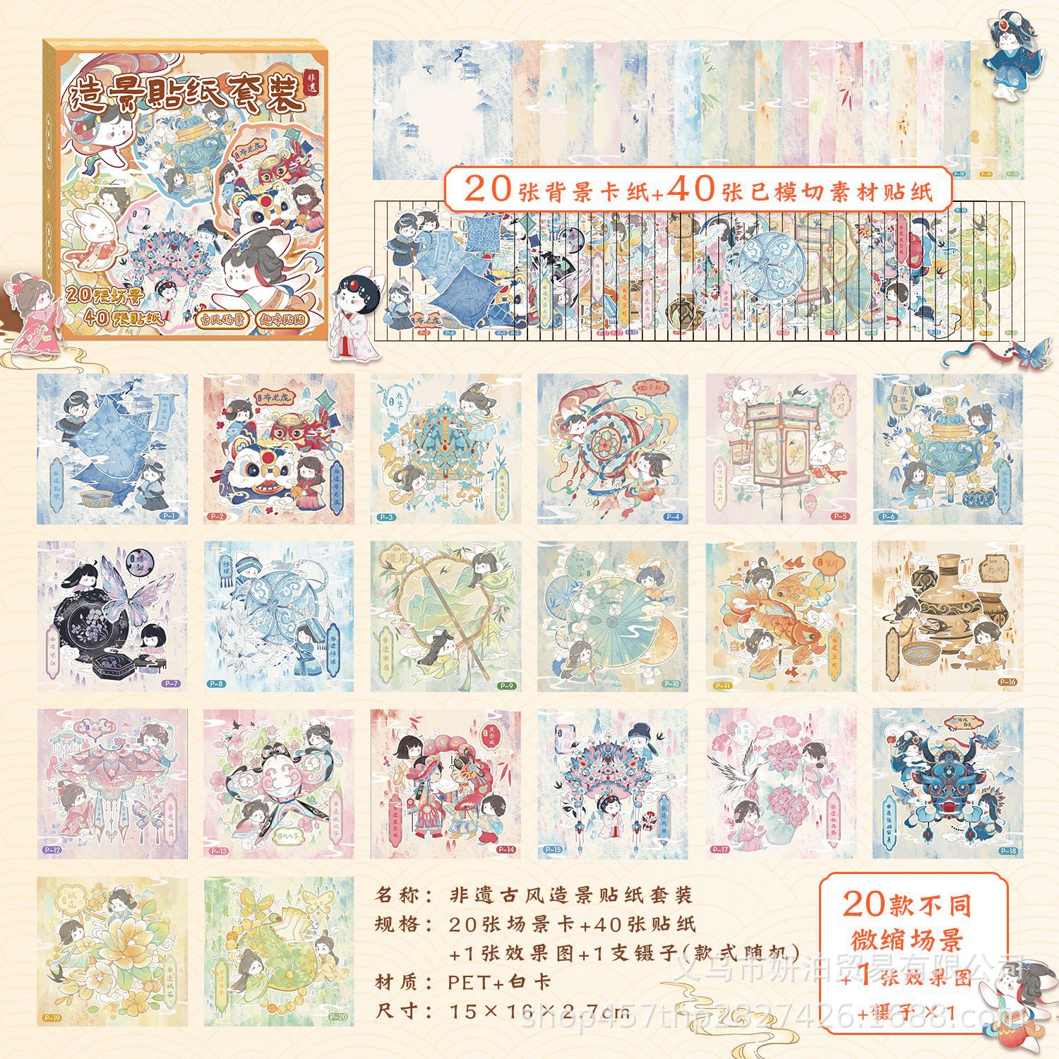• 무형문화재 고대풍 조경 스티커 세트 [조경 스티커 박스형(고풍)] 무작위 색상의 핀셋 포함
