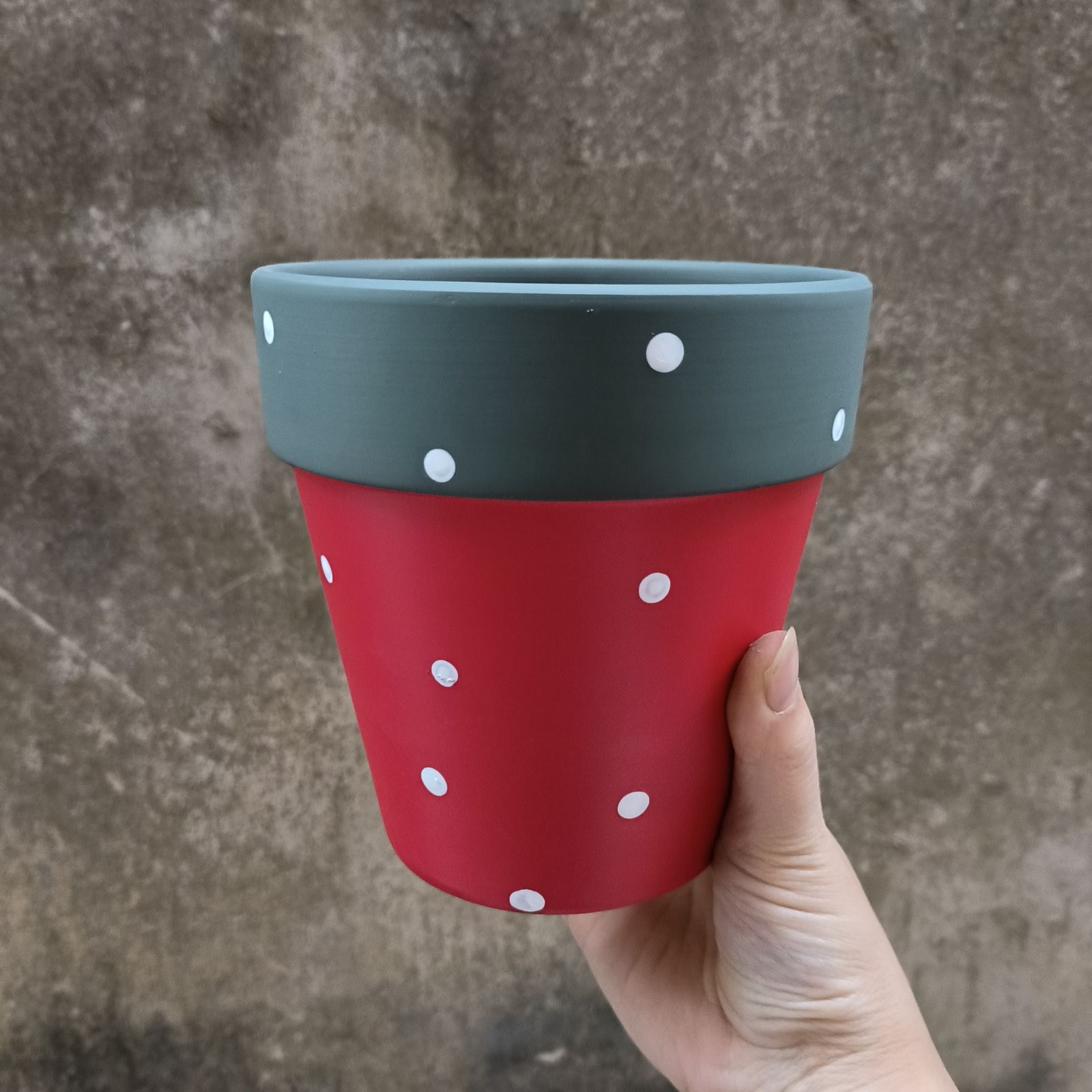 화분 손으로 그린 물방울 무늬 붉은 도자기 녹색 식물 다육 귀여운 통기성 재미있는 실내 녹색 식물 화분 나비 난초 제조업체스토어 가기