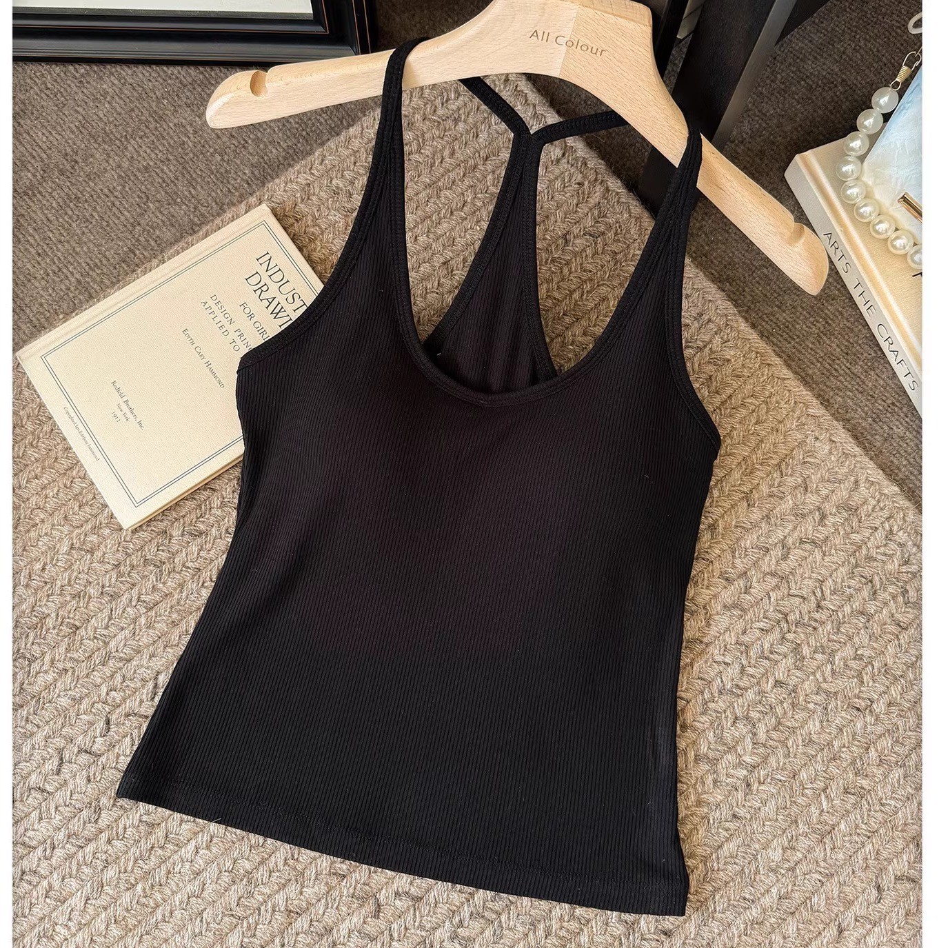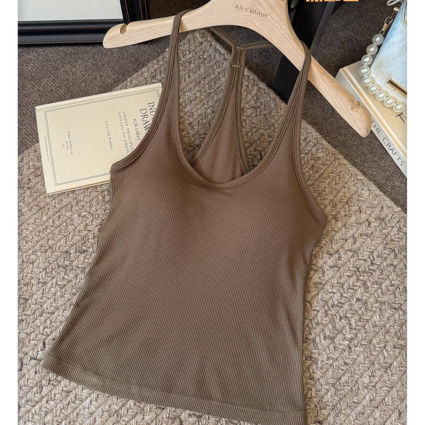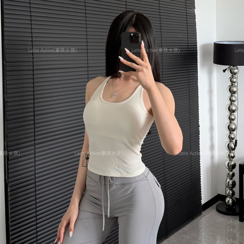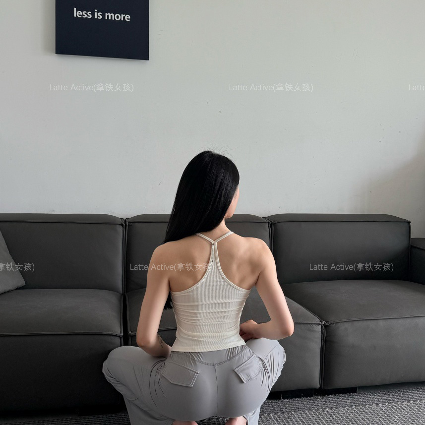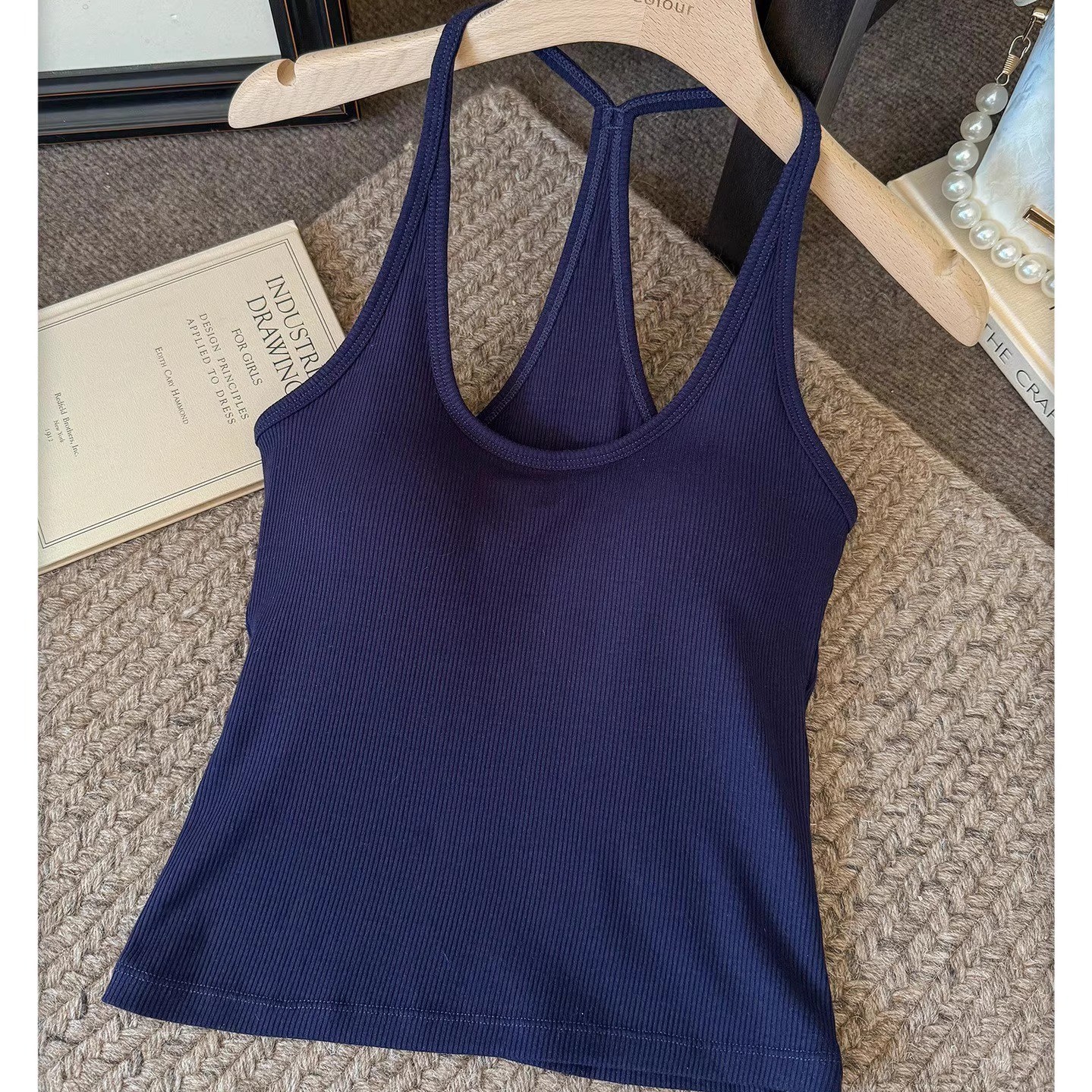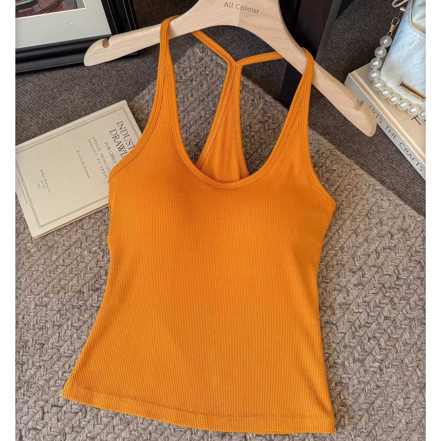 라떼걸 아메리칸 핫걸 가슴 패드가 있는 U넥 캐미솔 여성 여름 짧은 스포츠 슬리밍 I자형 이너웨어