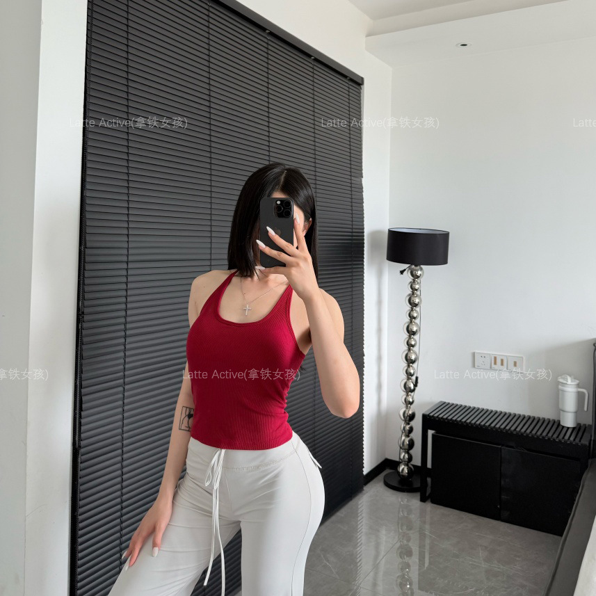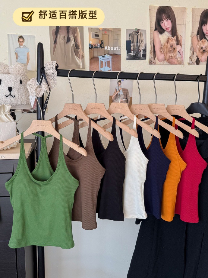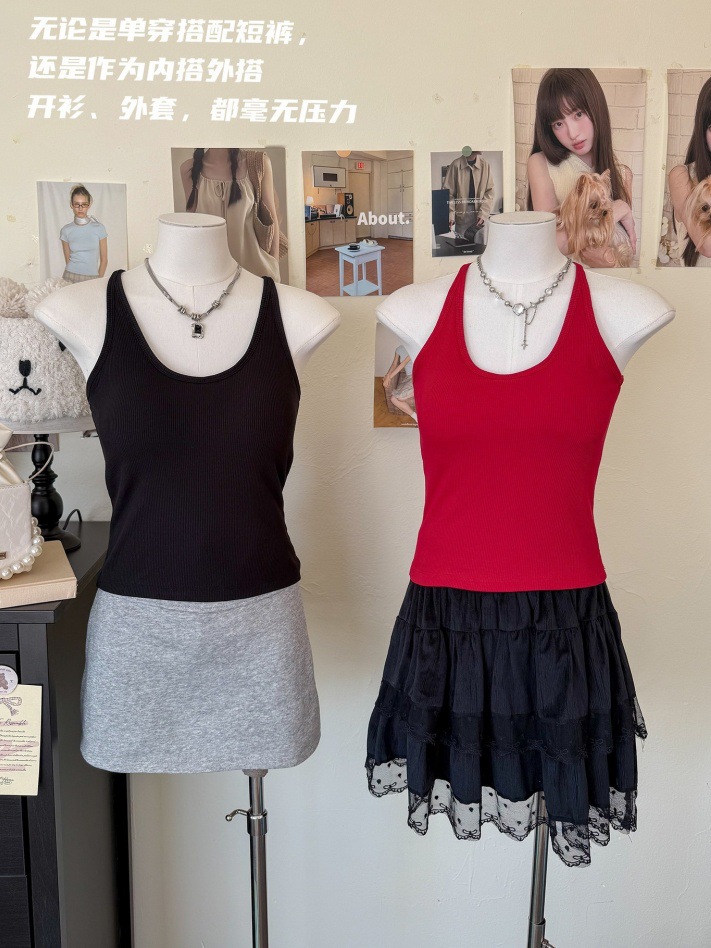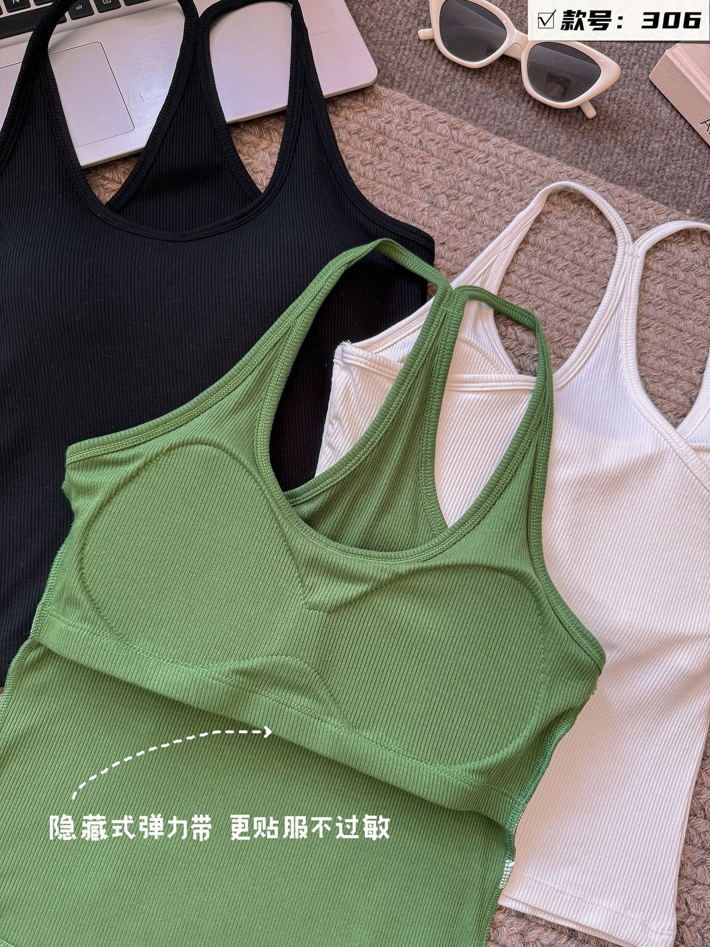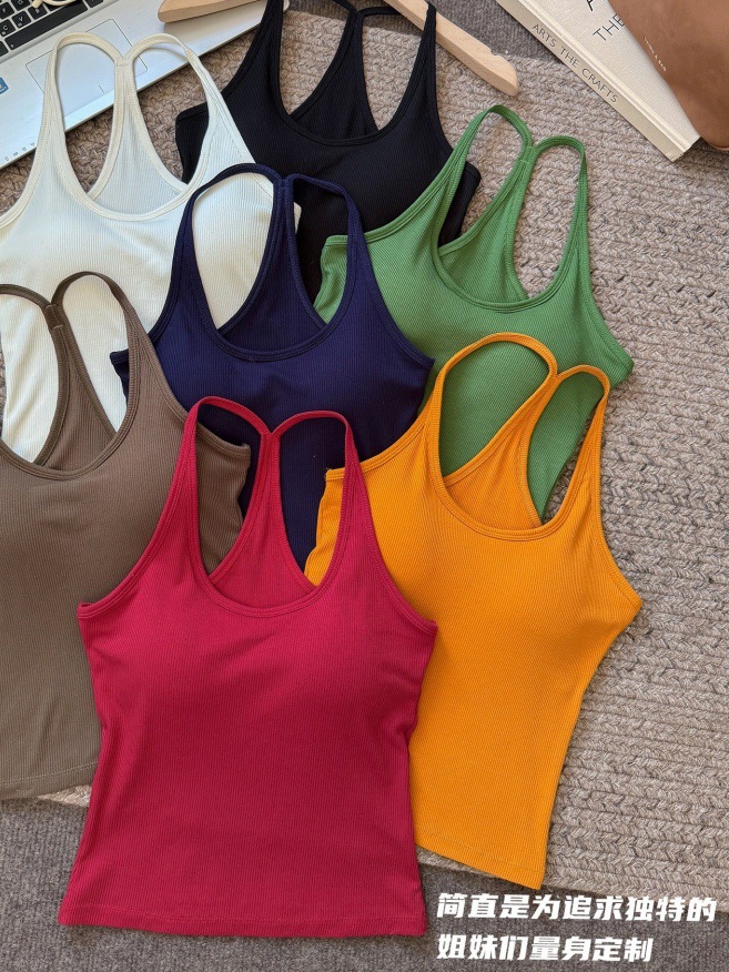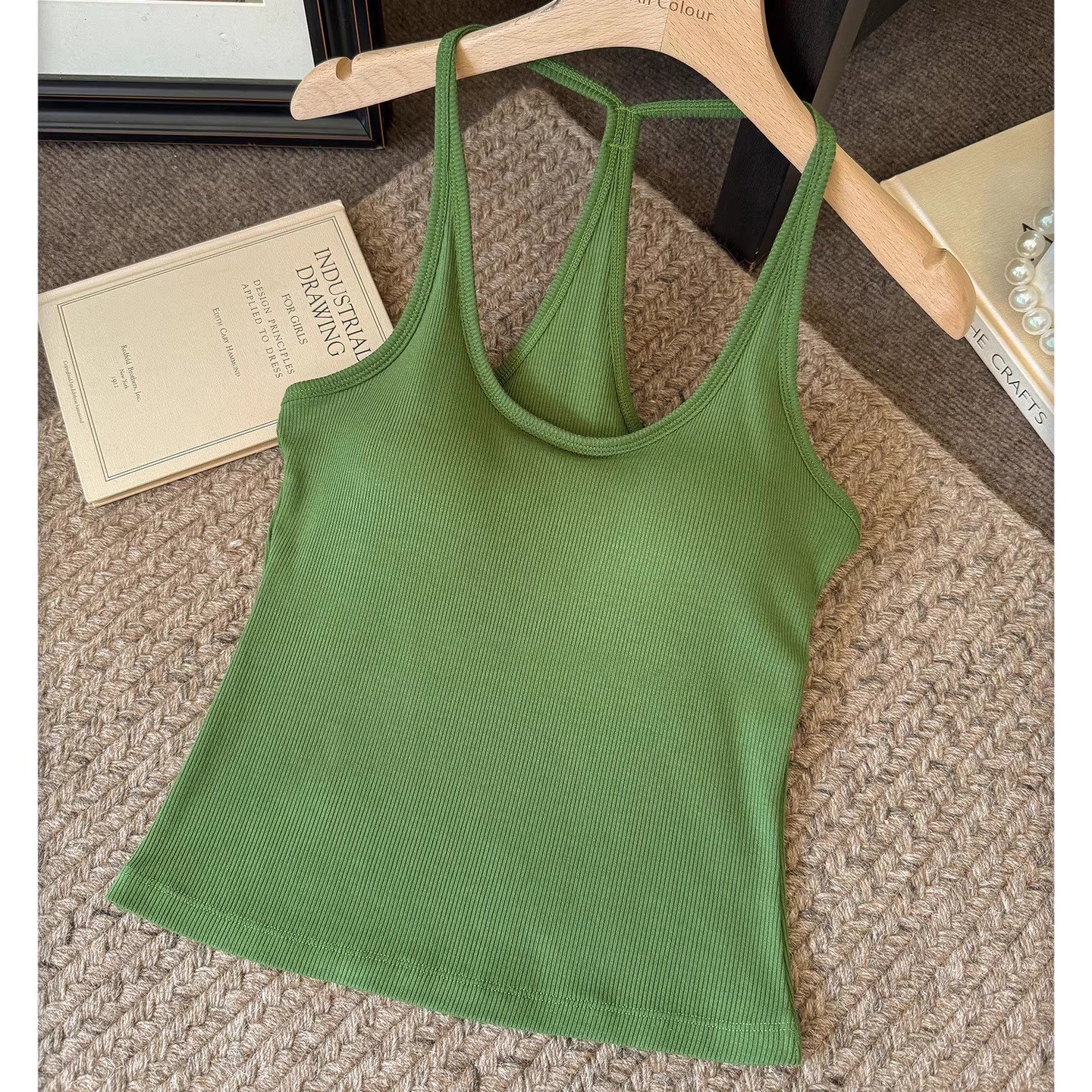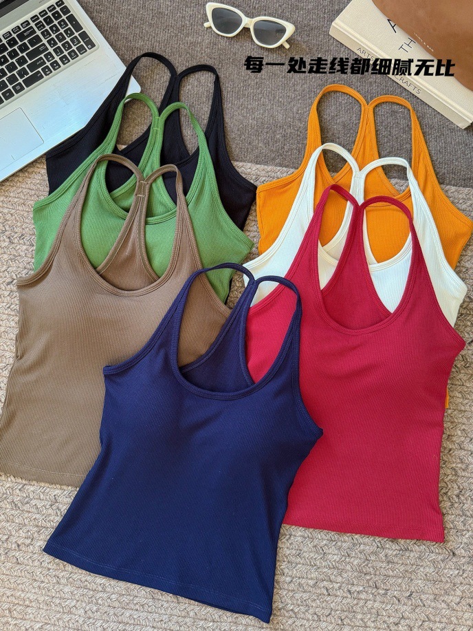 라떼걸 아메리칸 핫걸 가슴 패드가 있는 U넥 캐미솔 여성 여름 짧은 스포츠 슬리밍 I자형 이너웨어