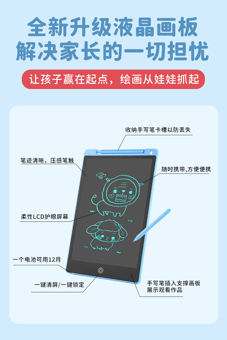 어린이 LCD 필기 대형 드로잉 보드 지울 수있는 가정용 유아 쓰기 보드 한 살짜리 아기 낙서 자기 그림 장난감