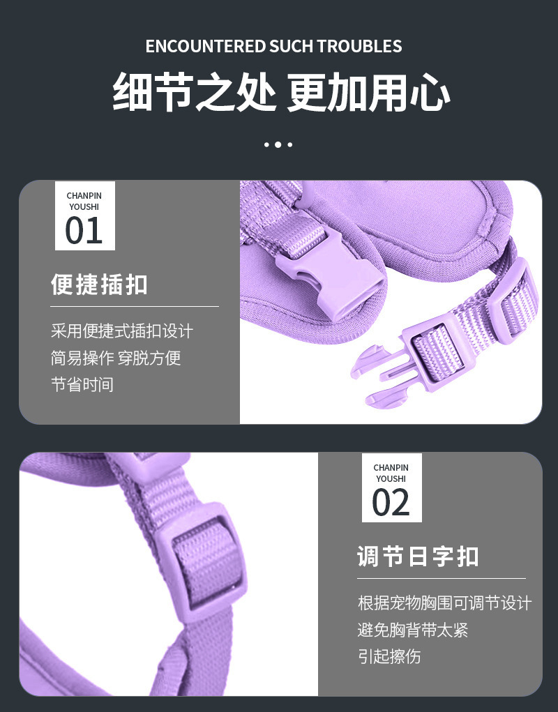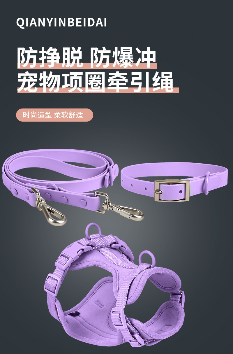신제품 애완동물 용품 4종 세트, 물림 방지 방수 강아지 하네스, 소형견용 PVC 산책줄스토어 가기