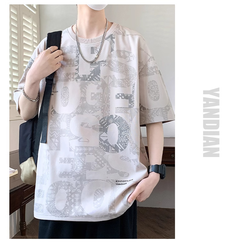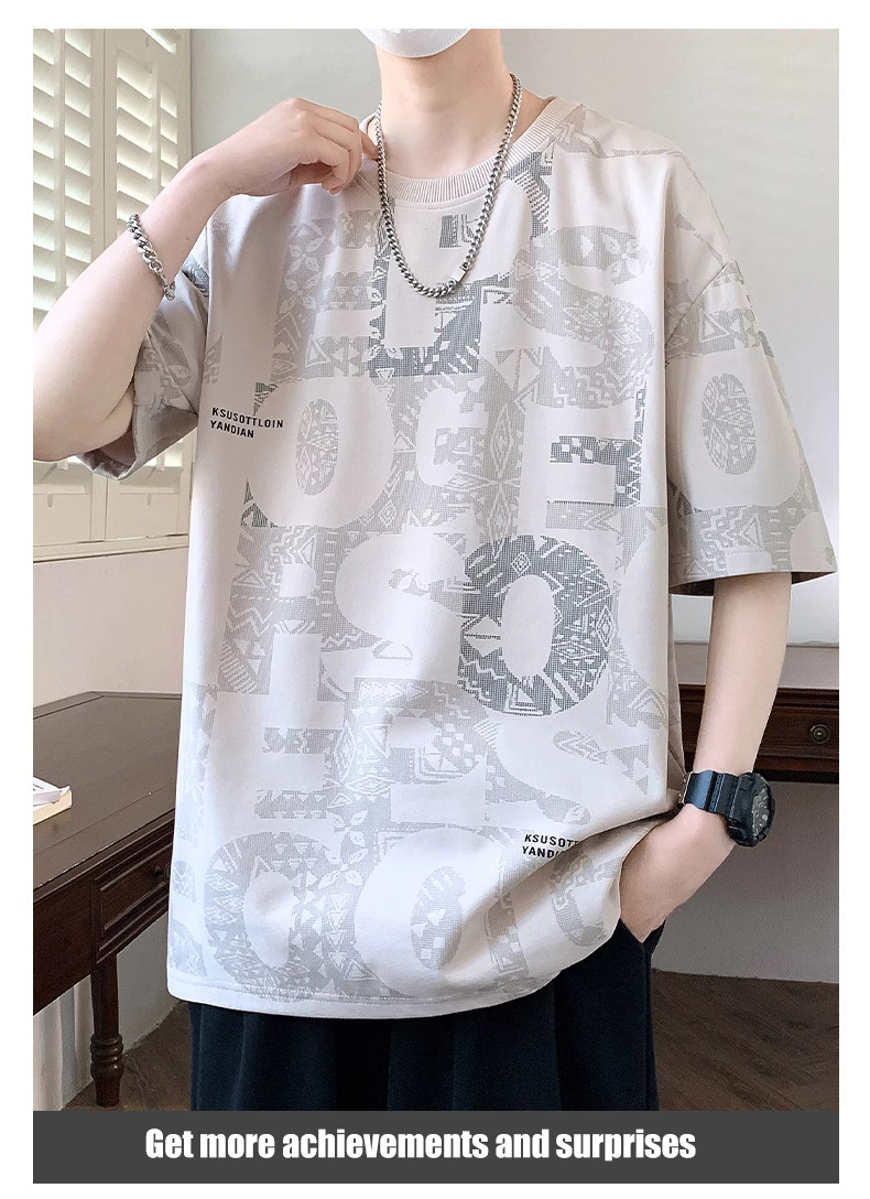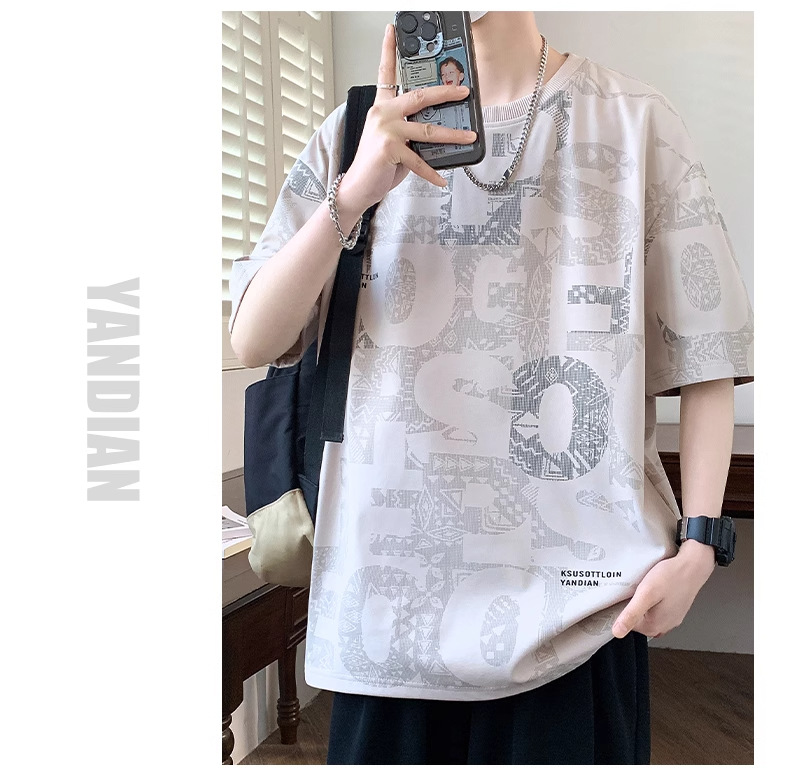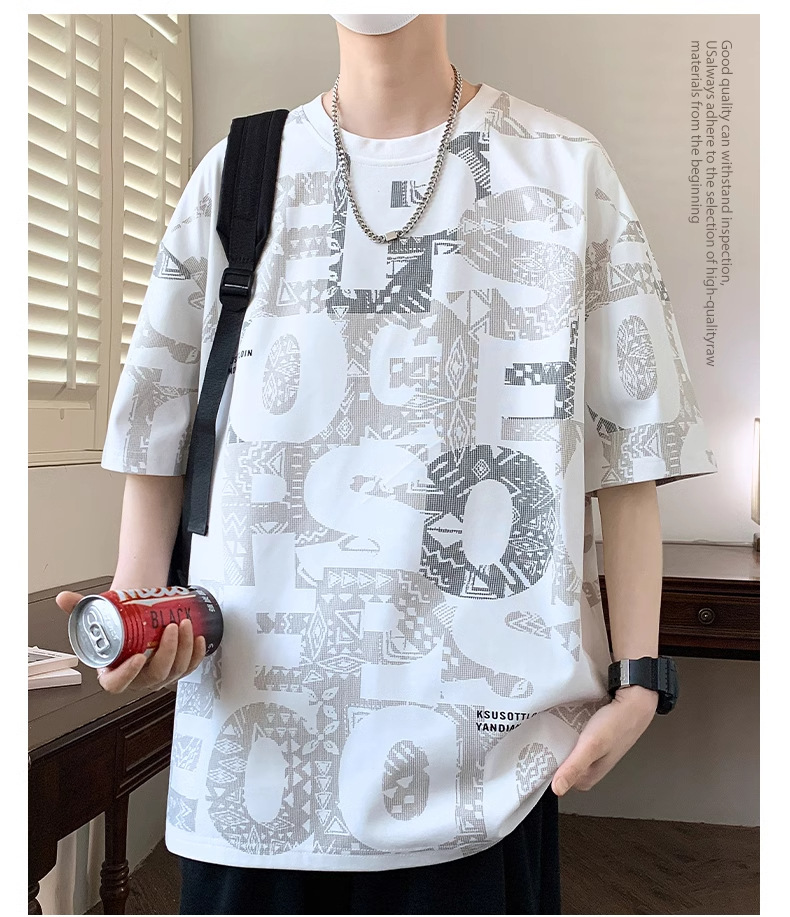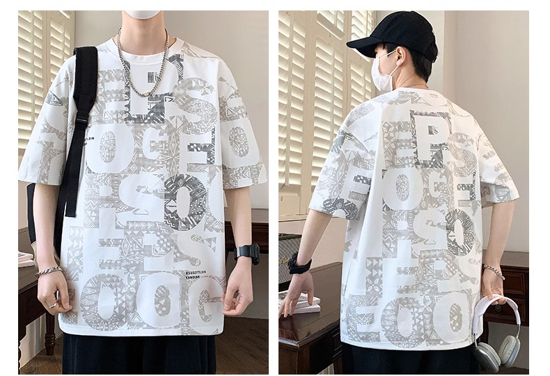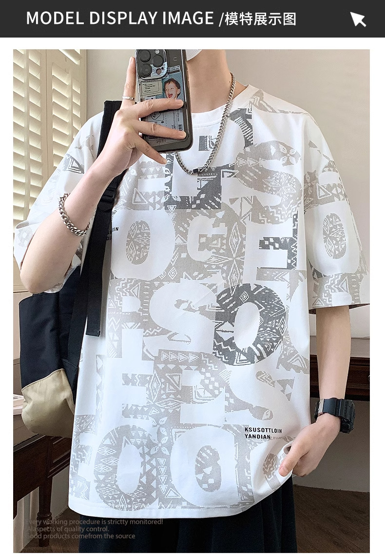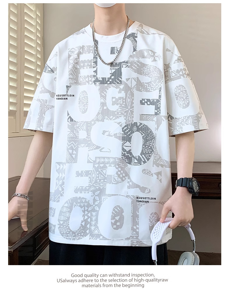 홍콩 스타일 대형 반팔 티셔츠 남성 여름 유행 브랜드 풀 프린트 반팔 루즈 플러스 뚱뚱한 남성 캐주얼 남성 의류스토어 가기