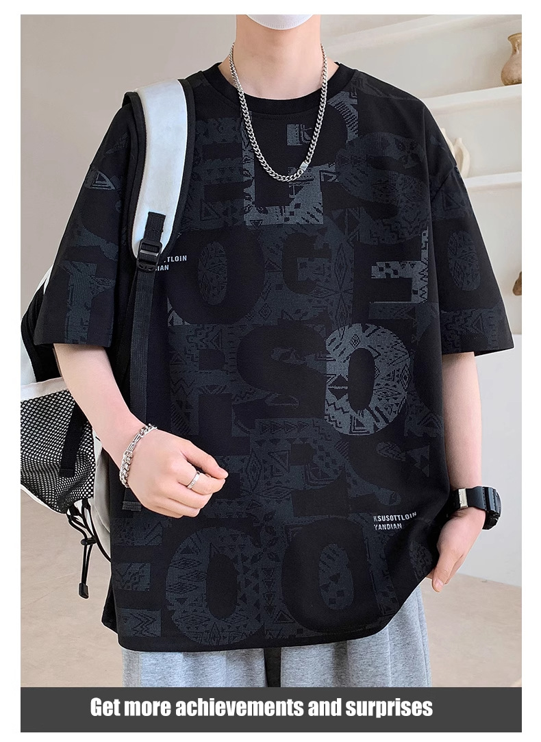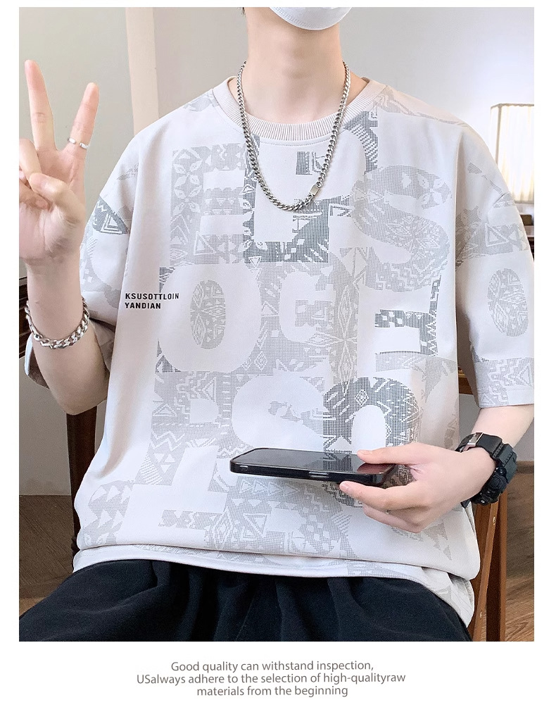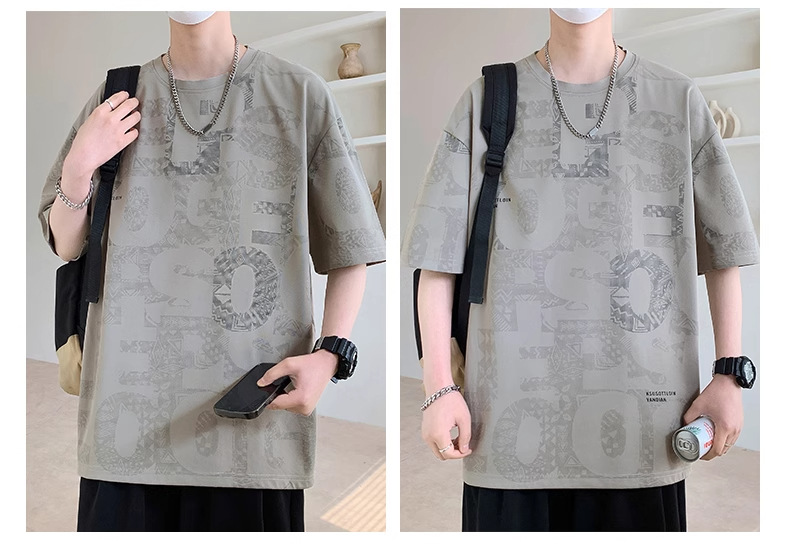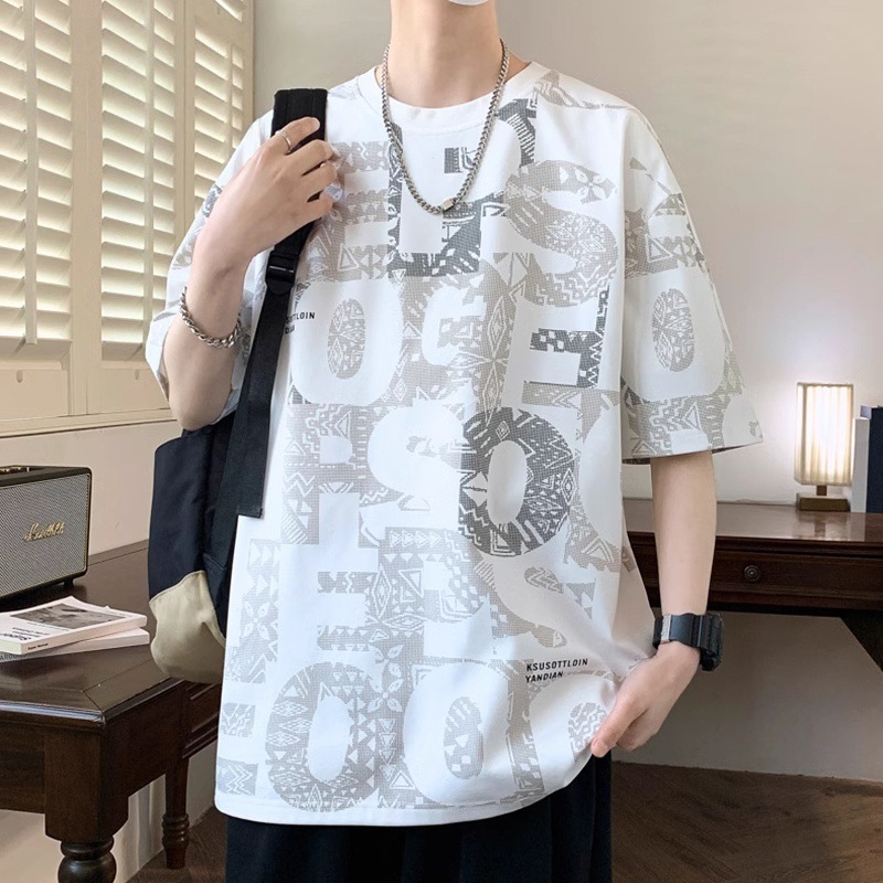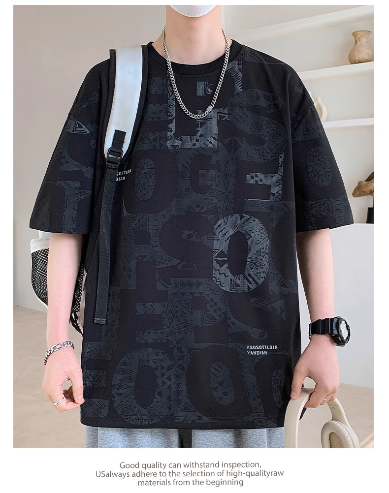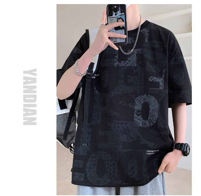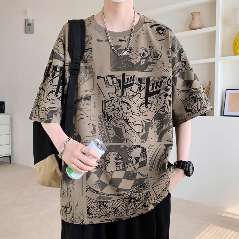 홍콩 스타일 대형 반팔 티셔츠 남성 여름 유행 브랜드 풀 프린트 반팔 루즈 플러스 뚱뚱한 남성 캐주얼 남성 의류스토어 가기