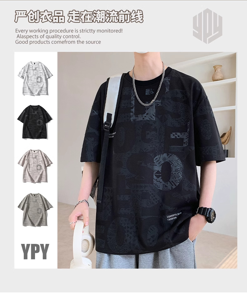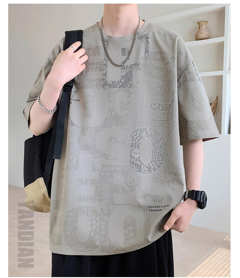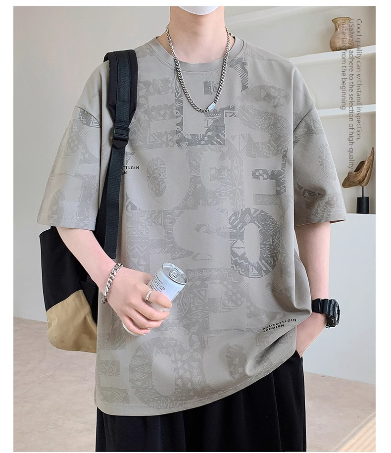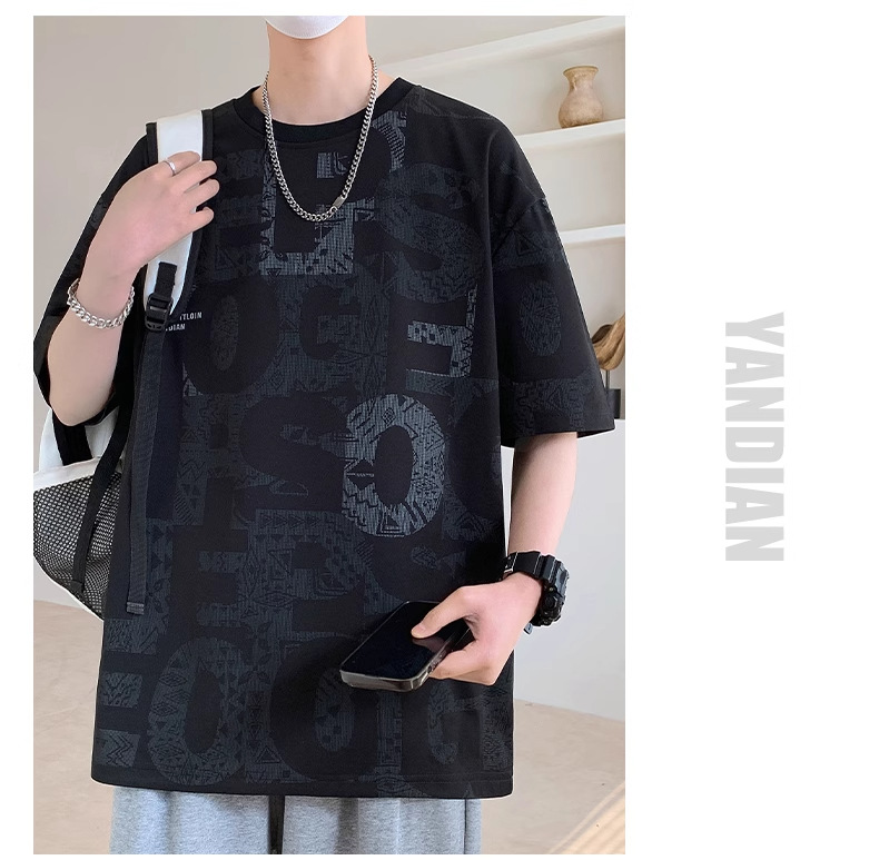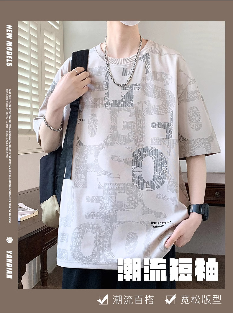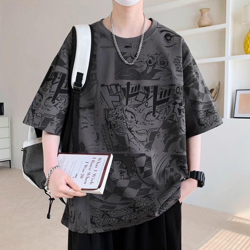 홍콩 스타일 대형 반팔 티셔츠 남성 여름 유행 브랜드 풀 프린트 반팔 루즈 플러스 뚱뚱한 남성 캐주얼 남성 의류스토어 가기