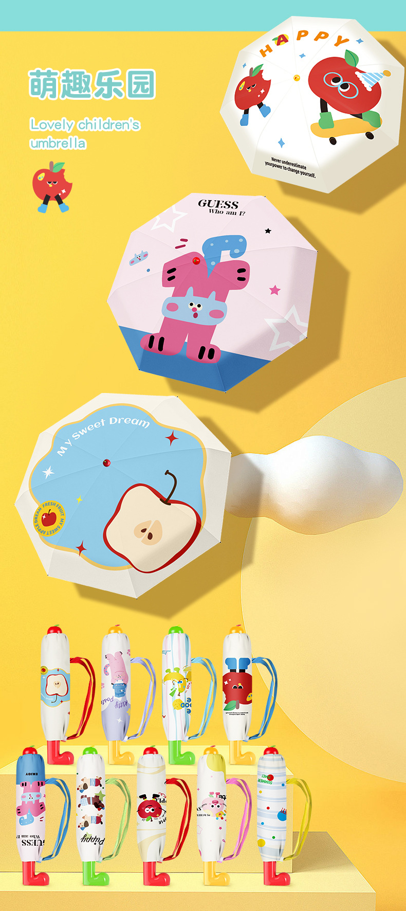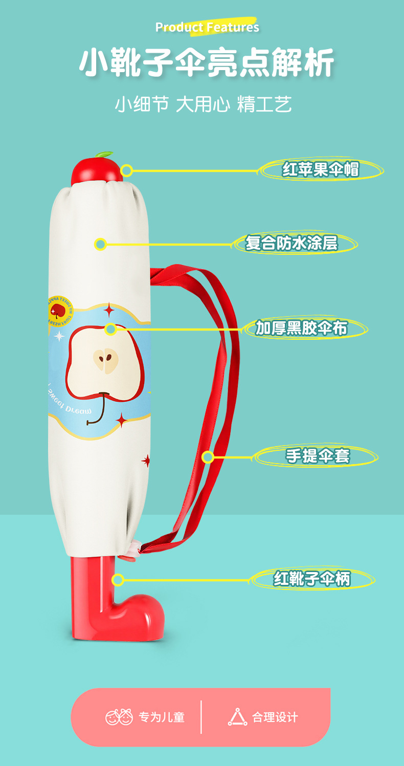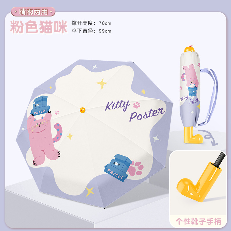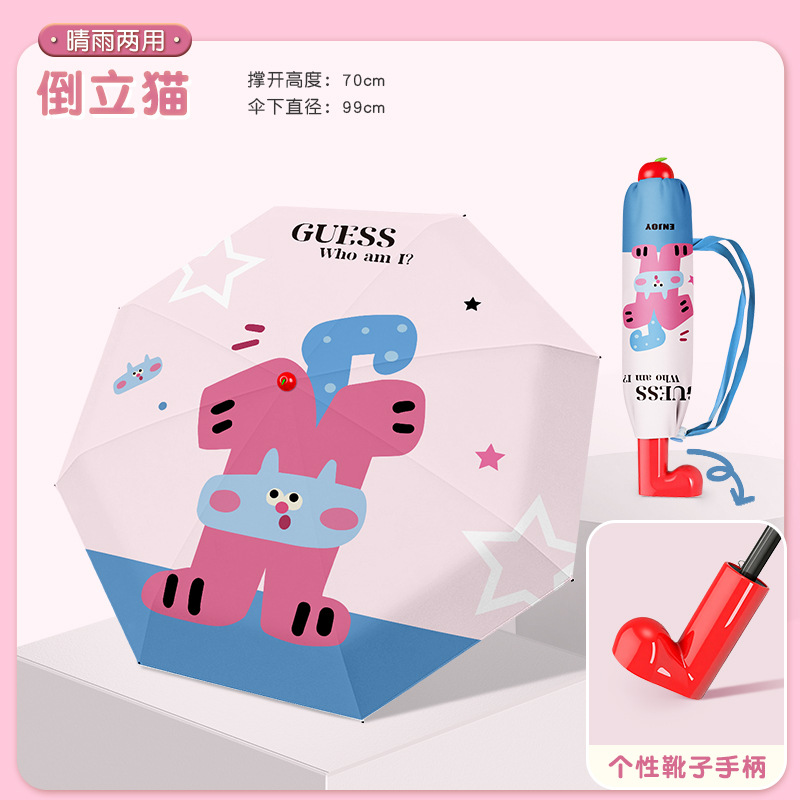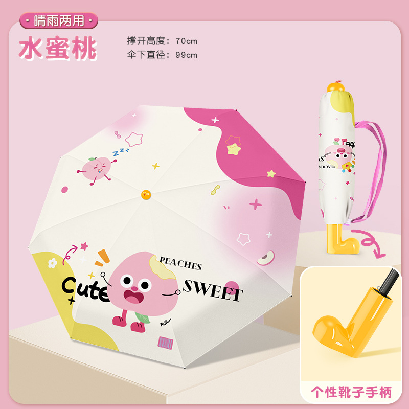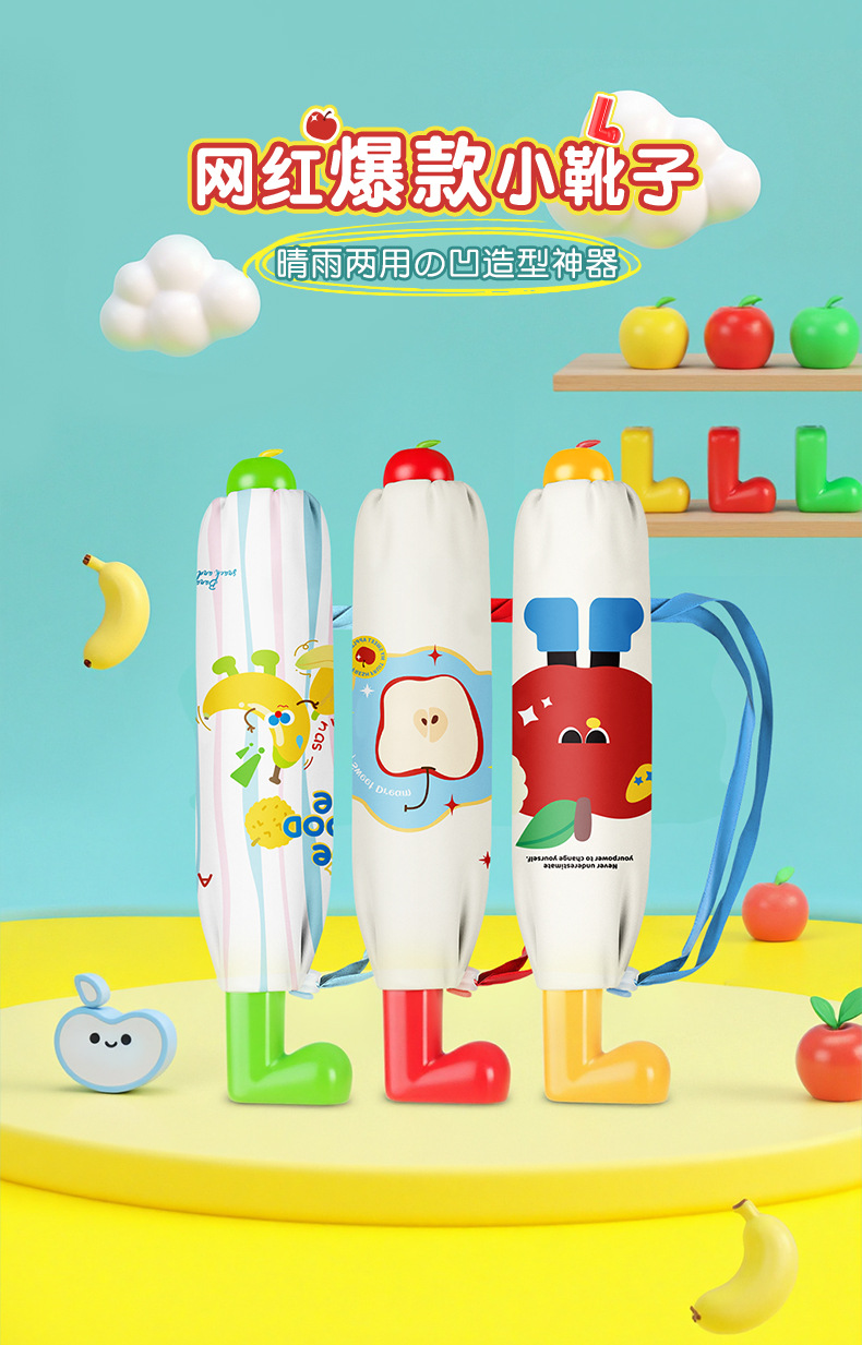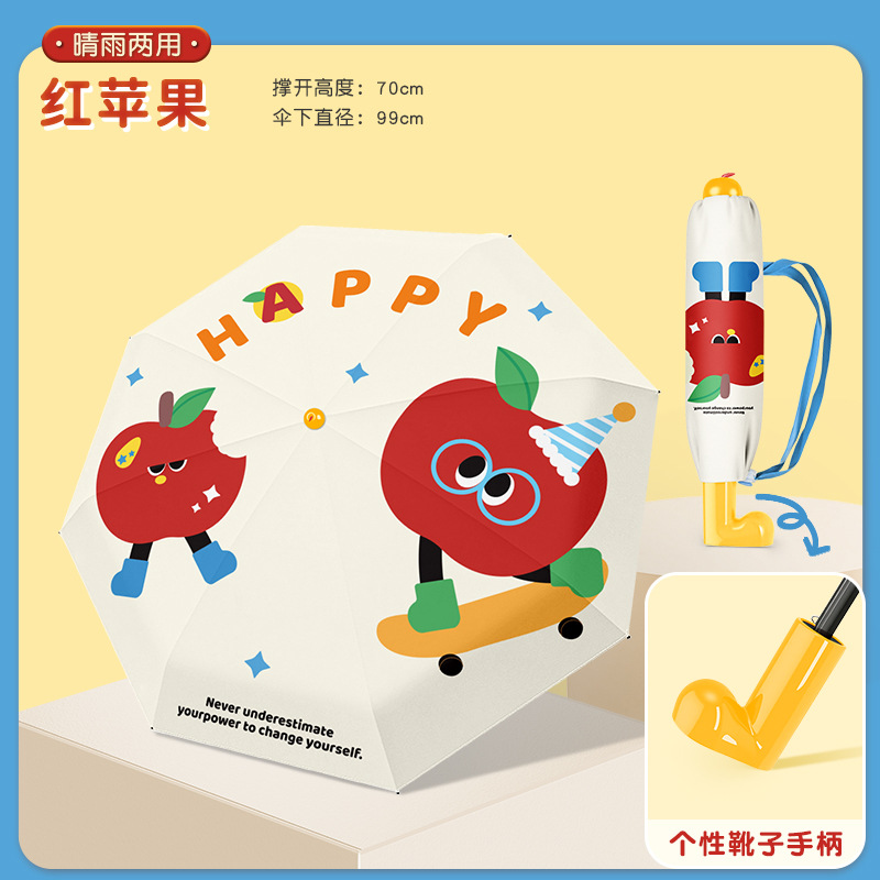 빨간 코 파라솔, 작은 빨간 부츠, 귀여운 손잡이 접이식 우산, 자외선 차단, 햇빛과 비 모두 사용 가능, 재미있는