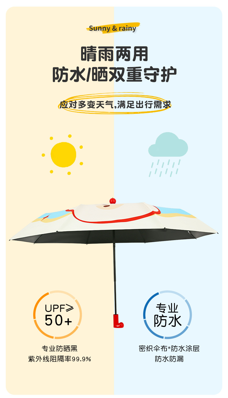 빨간 코 파라솔, 작은 빨간 부츠, 귀여운 손잡이 접이식 우산, 자외선 차단, 햇빛과 비 모두 사용 가능, 재미있는스토어 가기