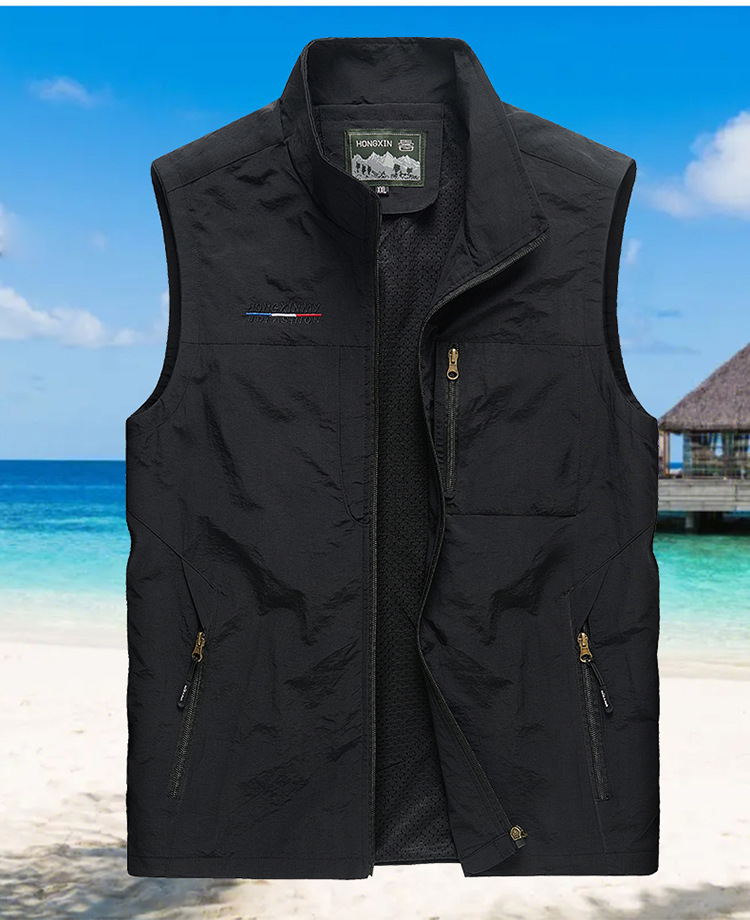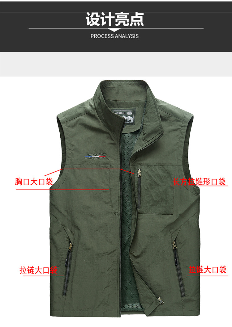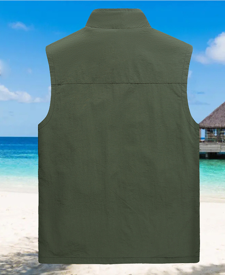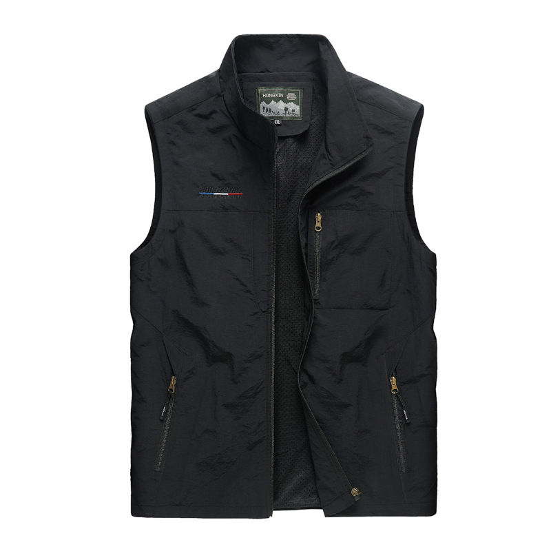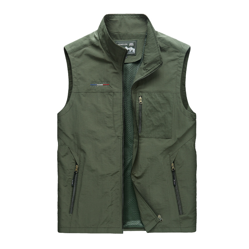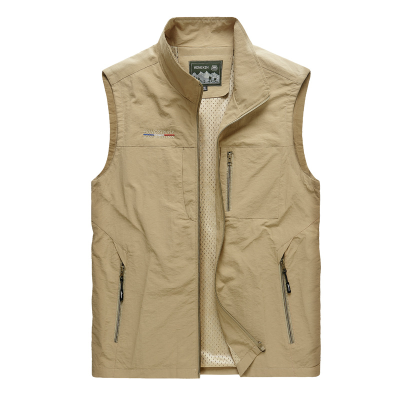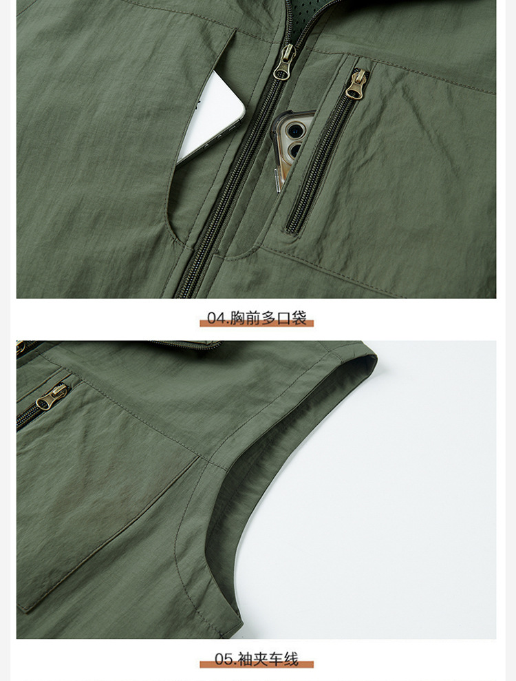 남성 야외 남성 멀티 포켓 작업 조끼 등산 사진 낚시 조끼 캐주얼 스탠드 칼라 조끼 남성 자켓
