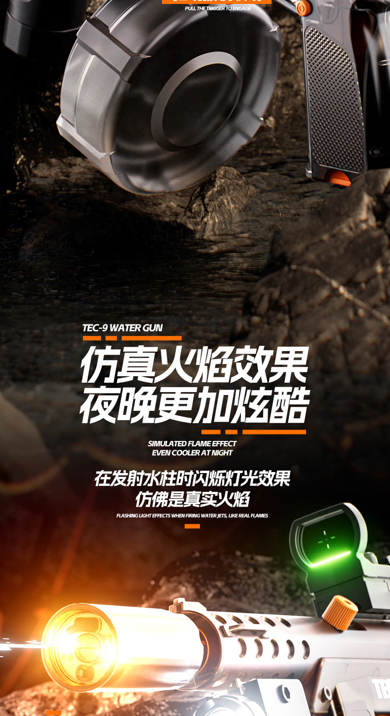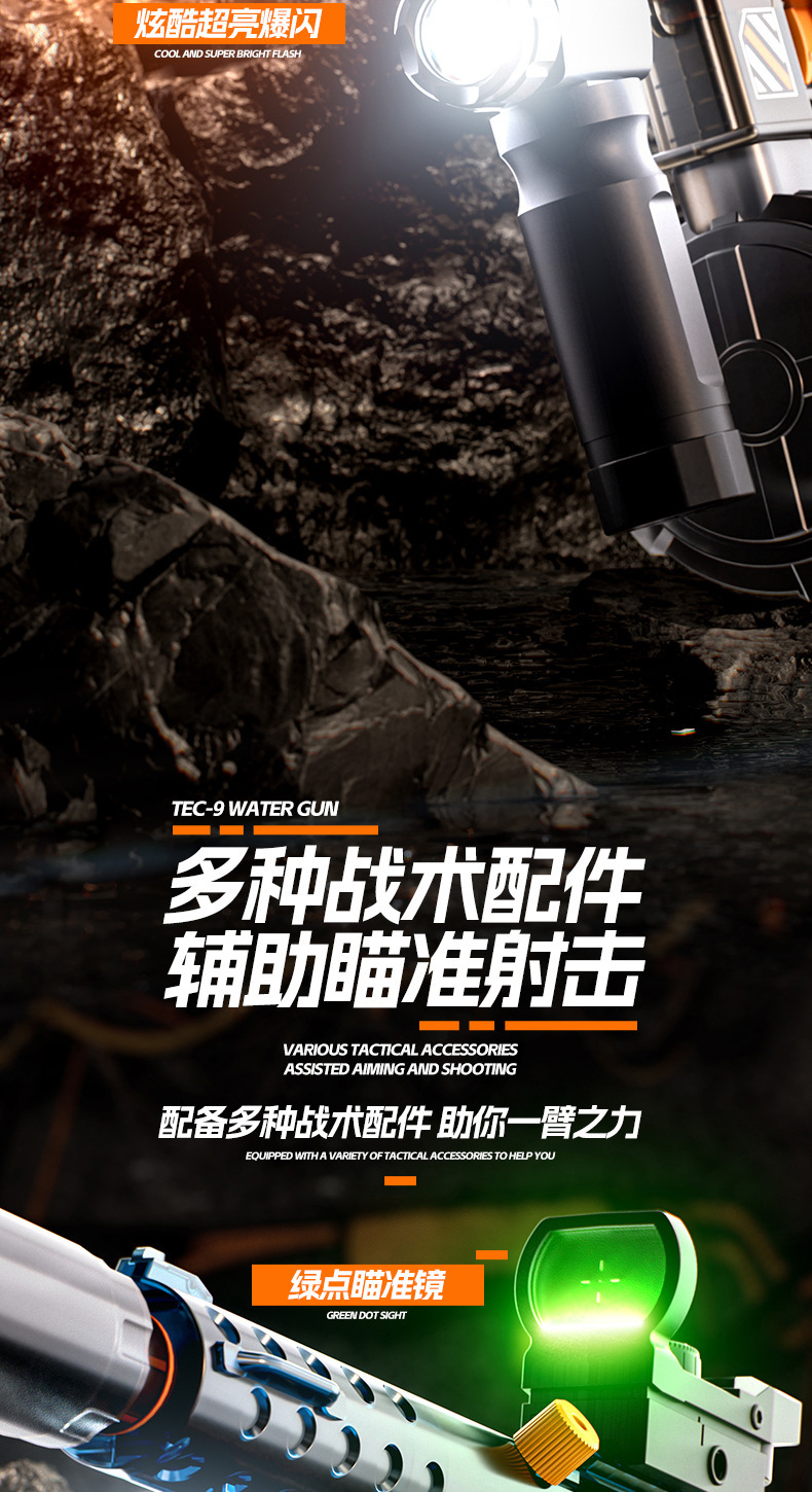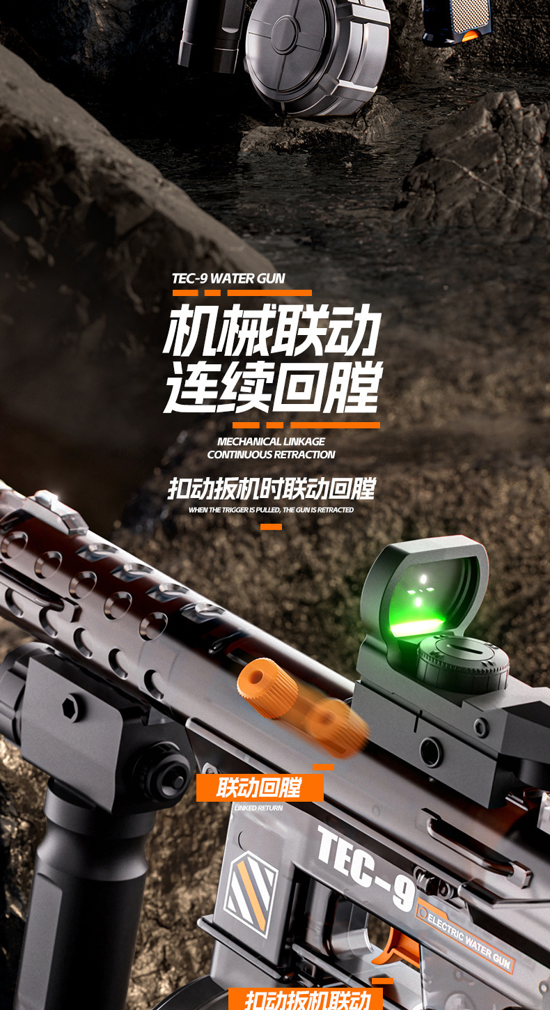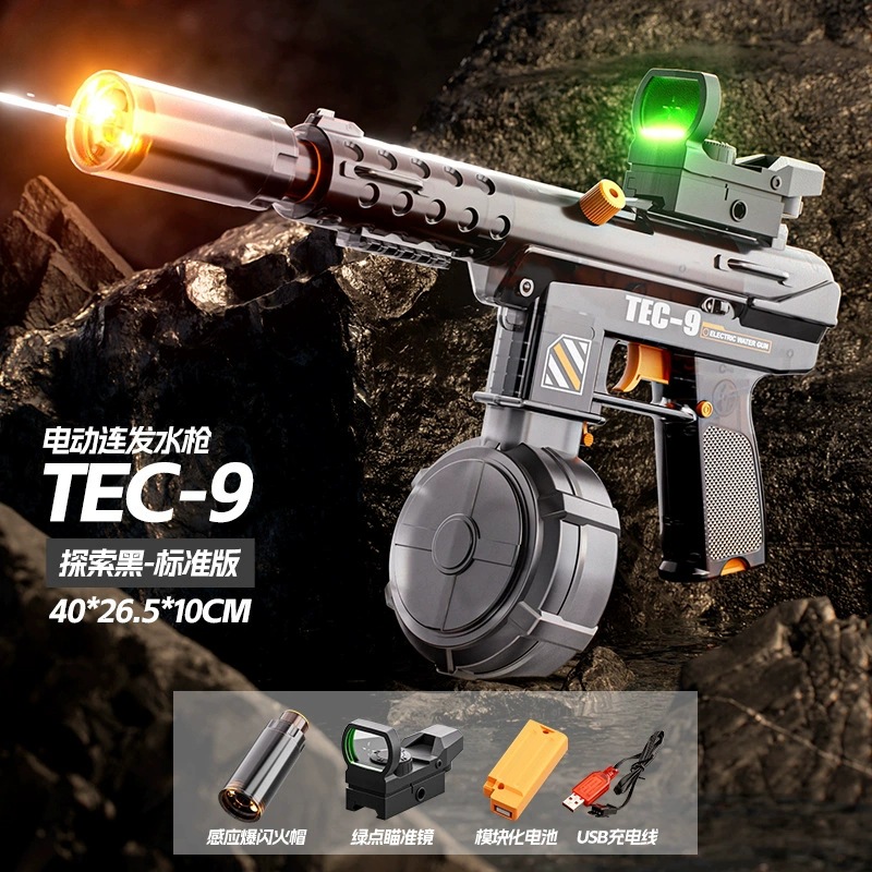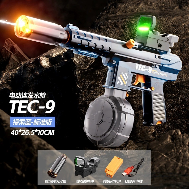 국경 간 고속 전기 연속 발사 TEC9 연결 리필 어린이 물총 장난감 대용량 유도 플래시 스프레이 물총스토어 가기