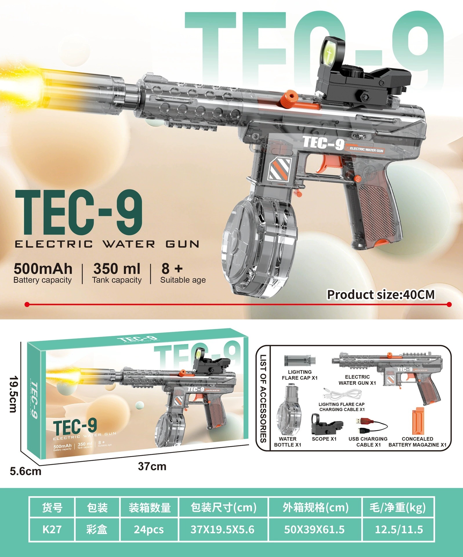 국경 간 고속 전기 연속 발사 TEC9 연결 리필 어린이 물총 장난감 대용량 유도 플래시 스프레이 물총