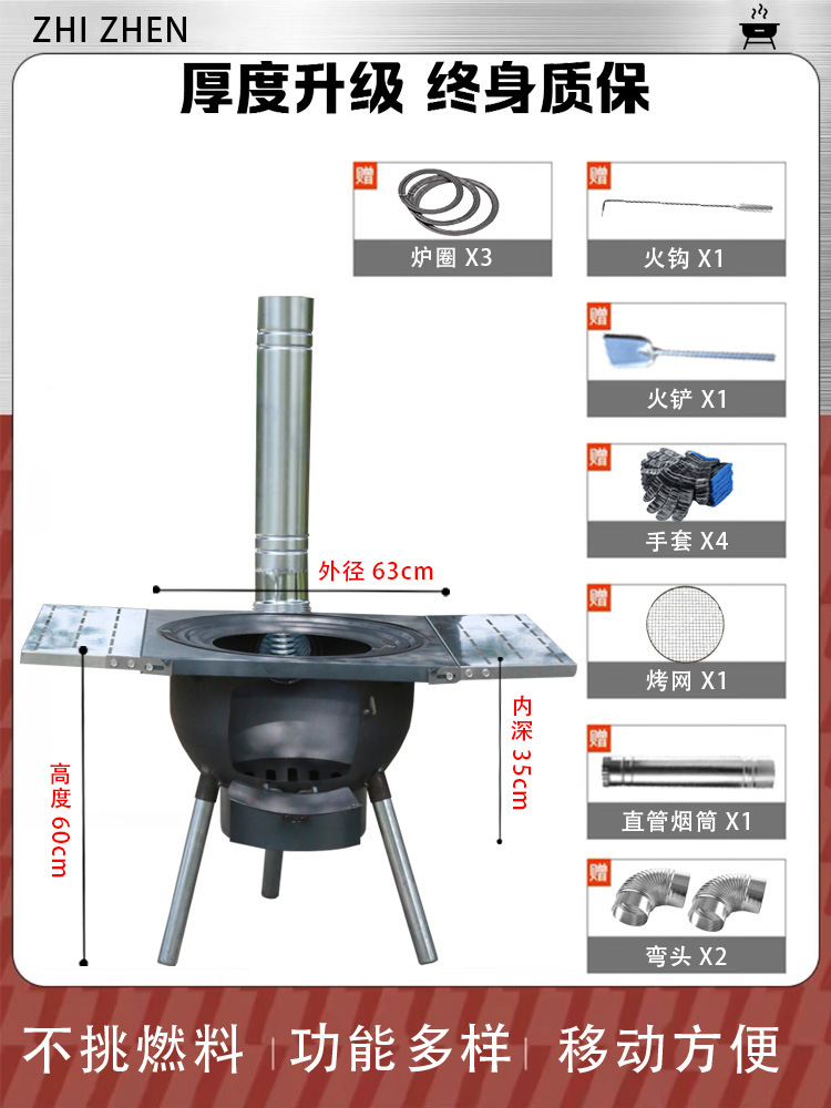 • [접이식 플레이트 포함] 63CM 특대 일체형 스토브, 스토브 링 3개 + 스토브 선물 패키지