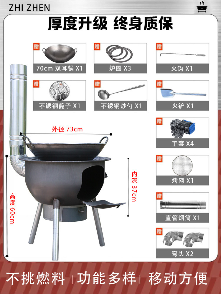 • [접이식 플레이트 포함] 73CM 특대 일체형 스토브, 스토브 링 3개 + 스토브 선물 패키지
