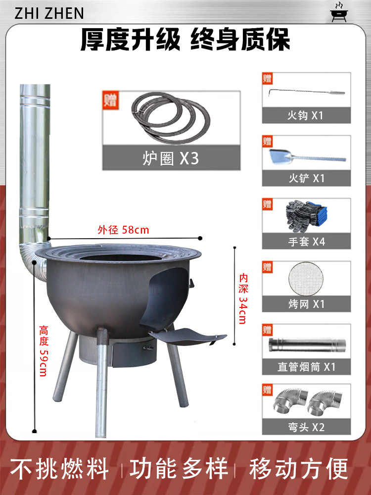 • [전강 스탬핑] 68CM 특대 일체형 난로 3개 화로 링 + 스토브 선물 패키지