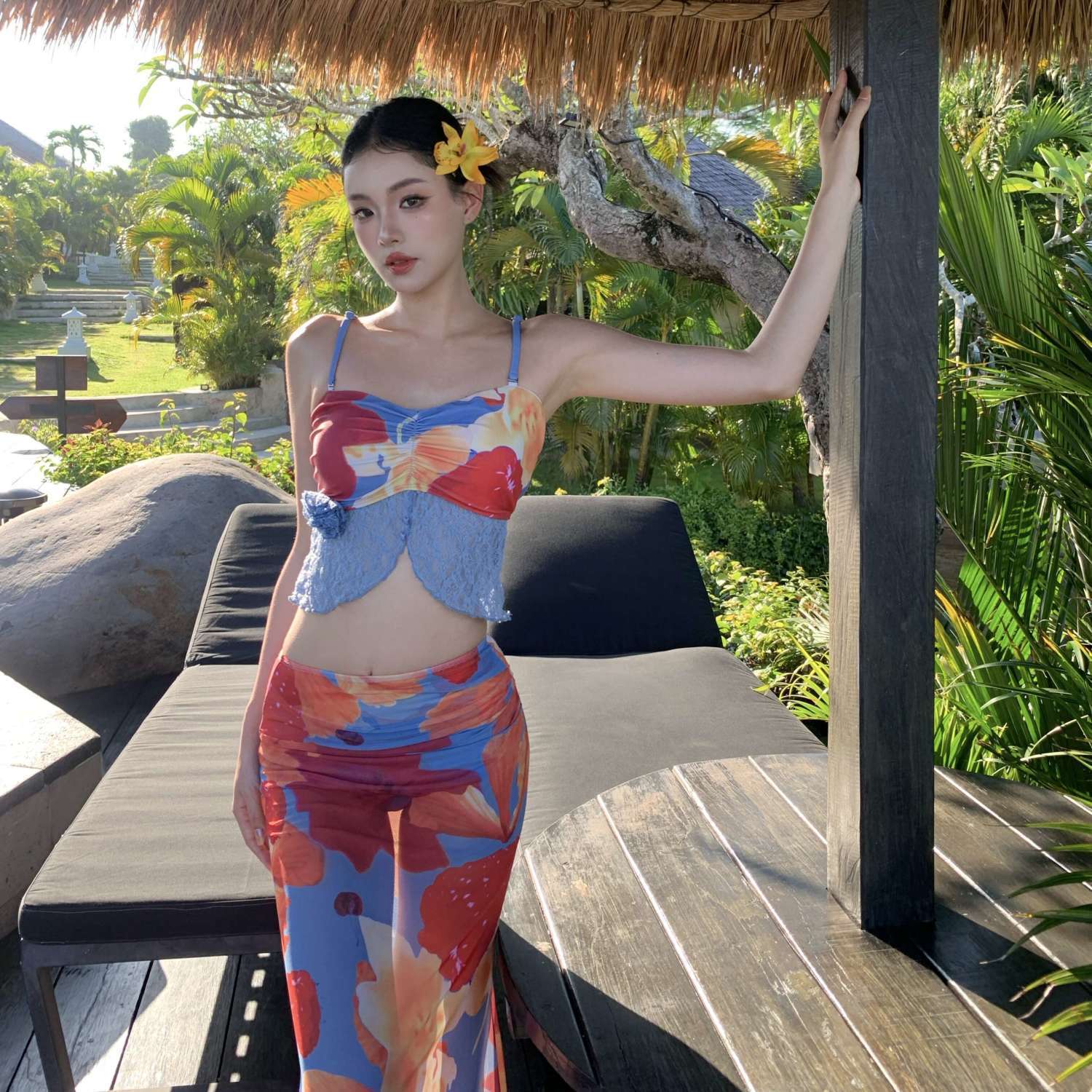 신상 섬 휴가 스플릿 스커트 3피스 사진 촬영 수영복, 살 커버, 슬리밍, 작은 가슴 푸쉬업 튜브탑 비키니스토어 가기