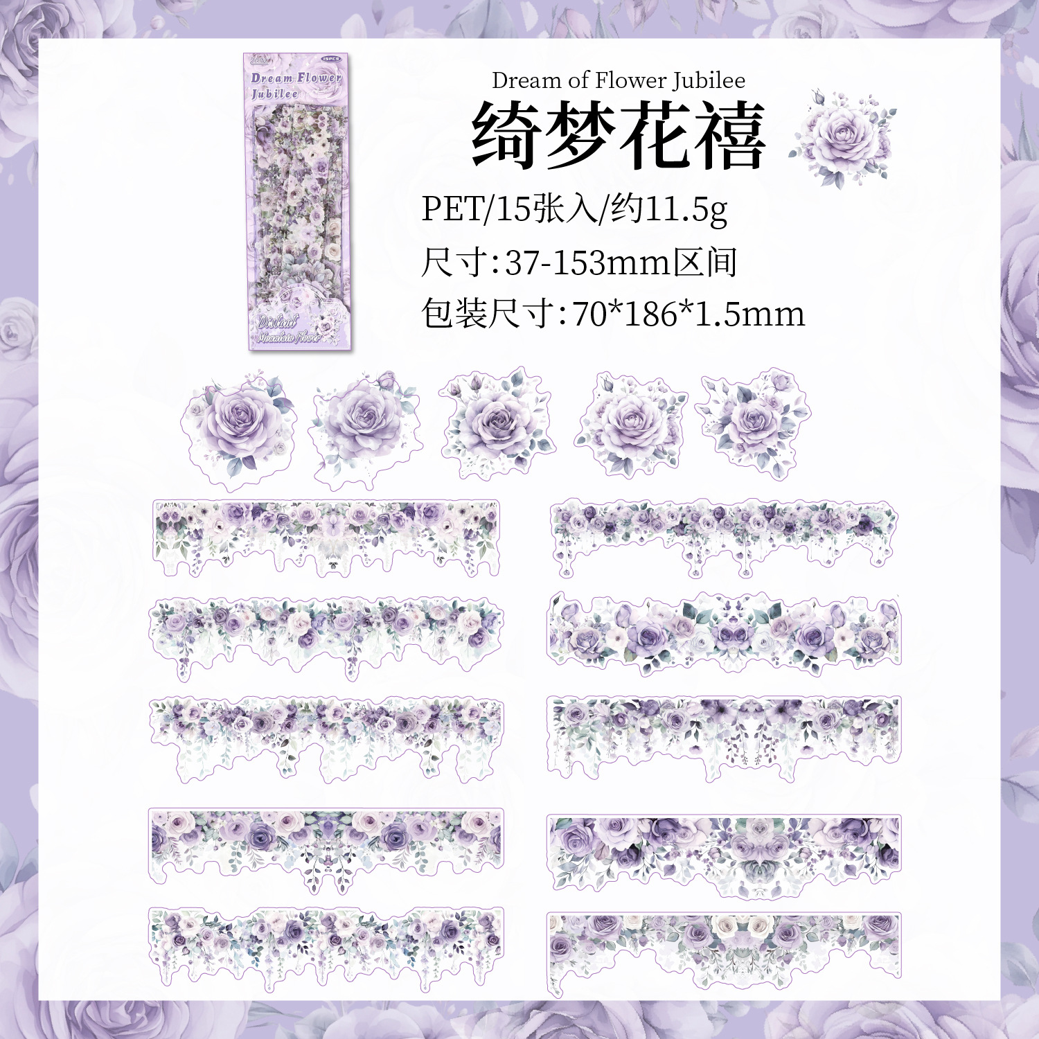 Yuanshan Huadai 식물 스트립 스티커 팩 꽃 콜라주 핸드북 재료 애완 동물 스티커 도매의 국경 간 전문 공급스토어 가기