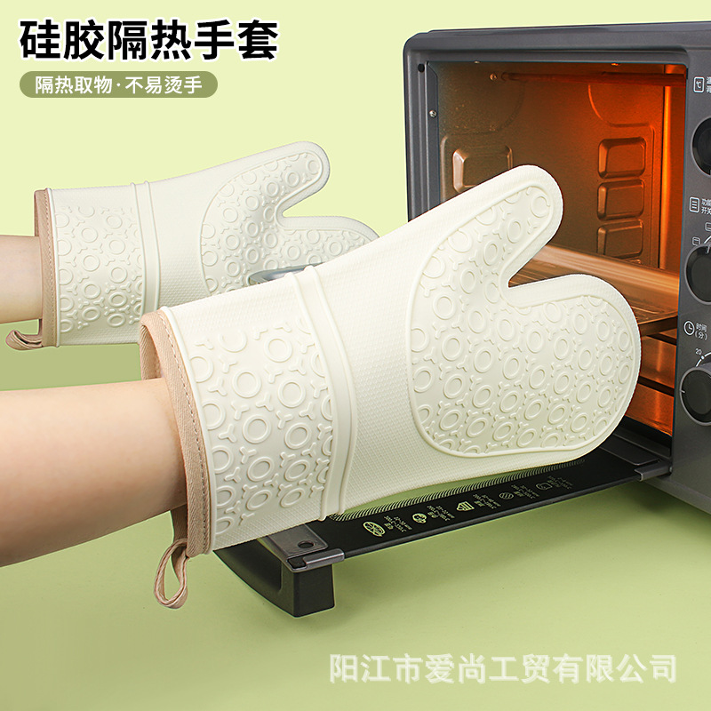 화상 방지 장갑, 단열 및 두꺼운 실리콘 주방 오븐 특수 미끄럼 방지 및 내열성 전자 레인지 베이킹 장갑