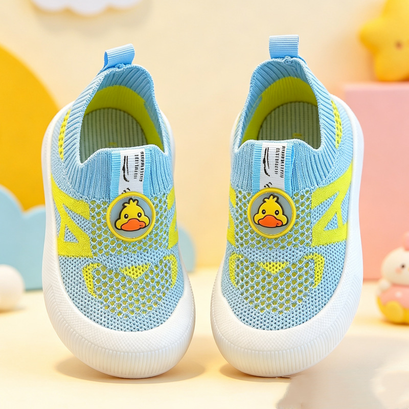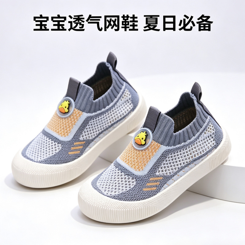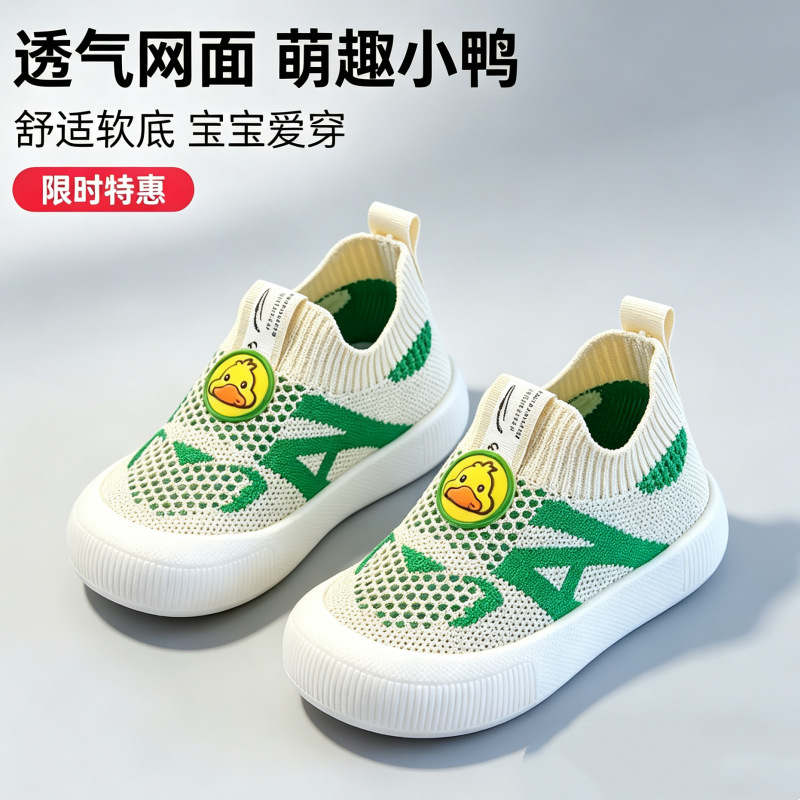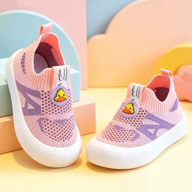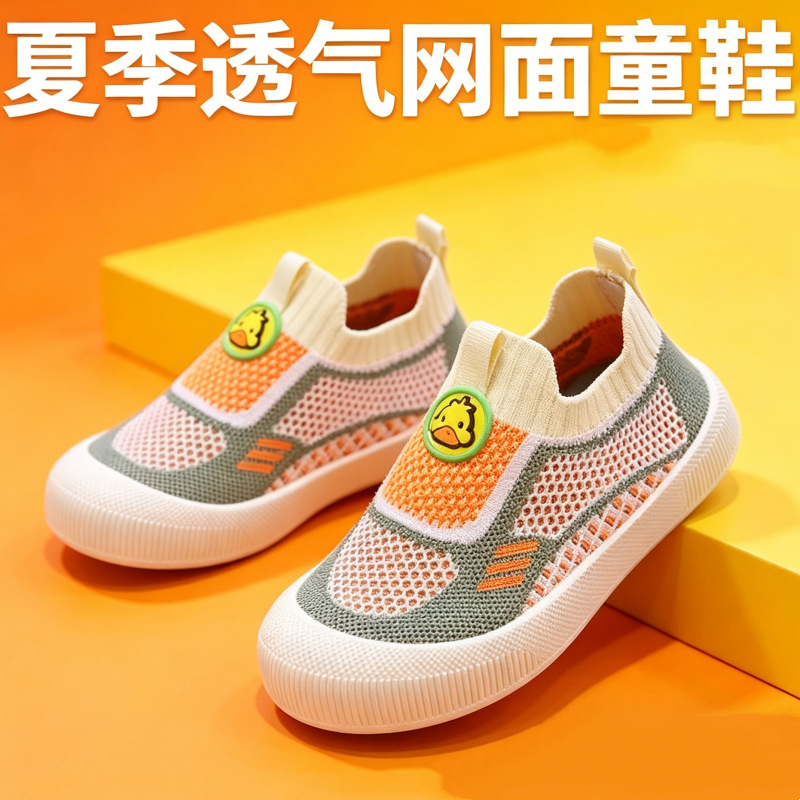 2025 봄 어린이 신발 레인보우 오리 어린이 신발 초경량 부드러운 밑창 미끄럼 방지 통기성 슬립 온 여름 플라이 짠 신발