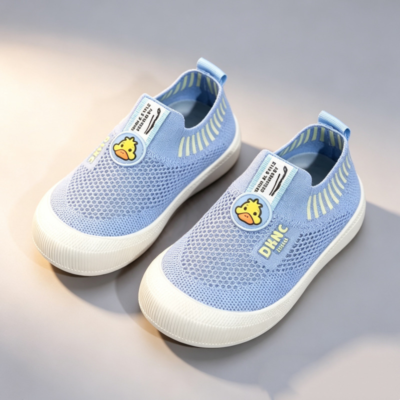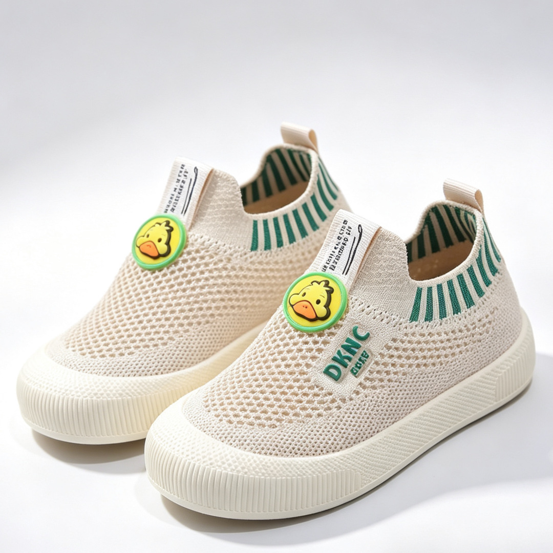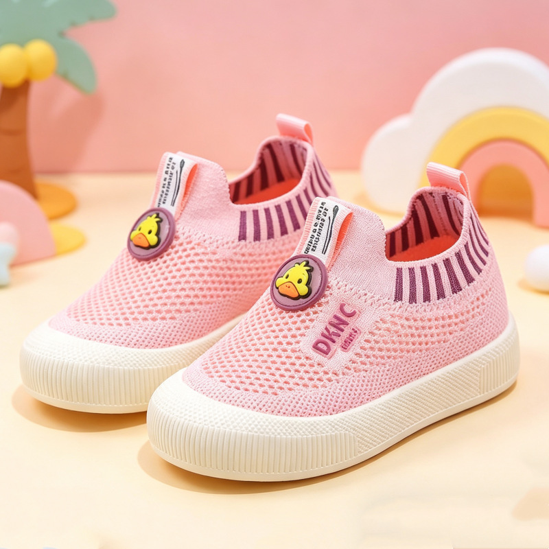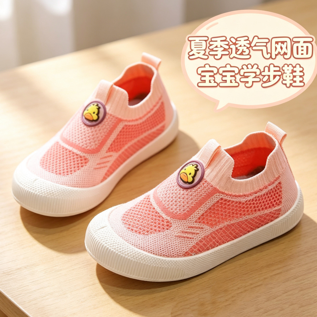 2025 봄 어린이 신발 레인보우 오리 어린이 신발 초경량 부드러운 밑창 미끄럼 방지 통기성 슬립 온 여름 플라이 짠 신발